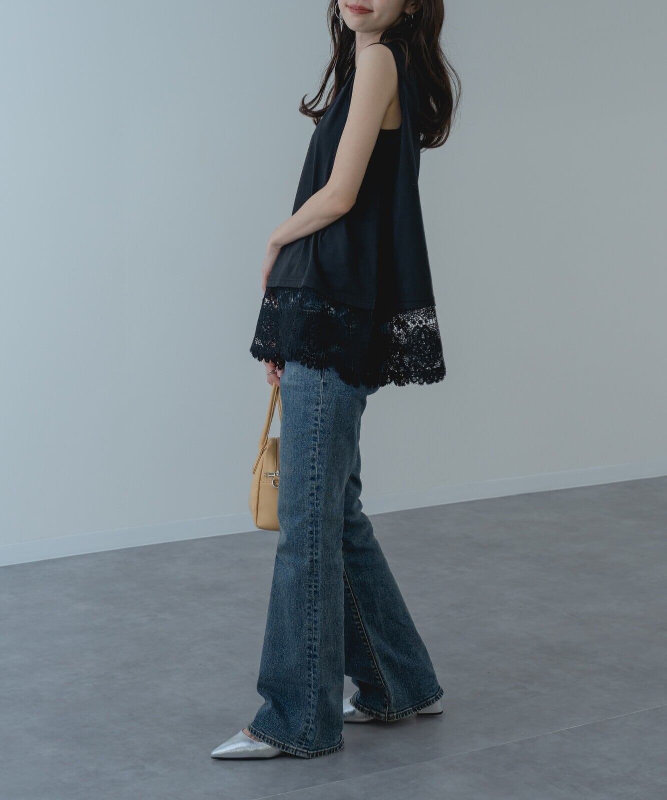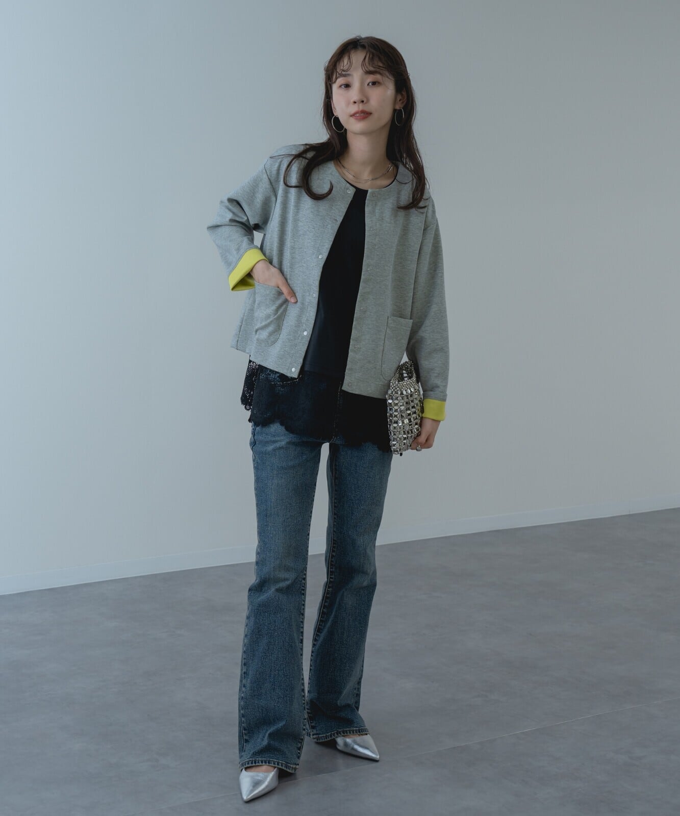 丈感は長すぎず短すぎない絶妙丈で短丈のトップスとの相性が抜群です◎