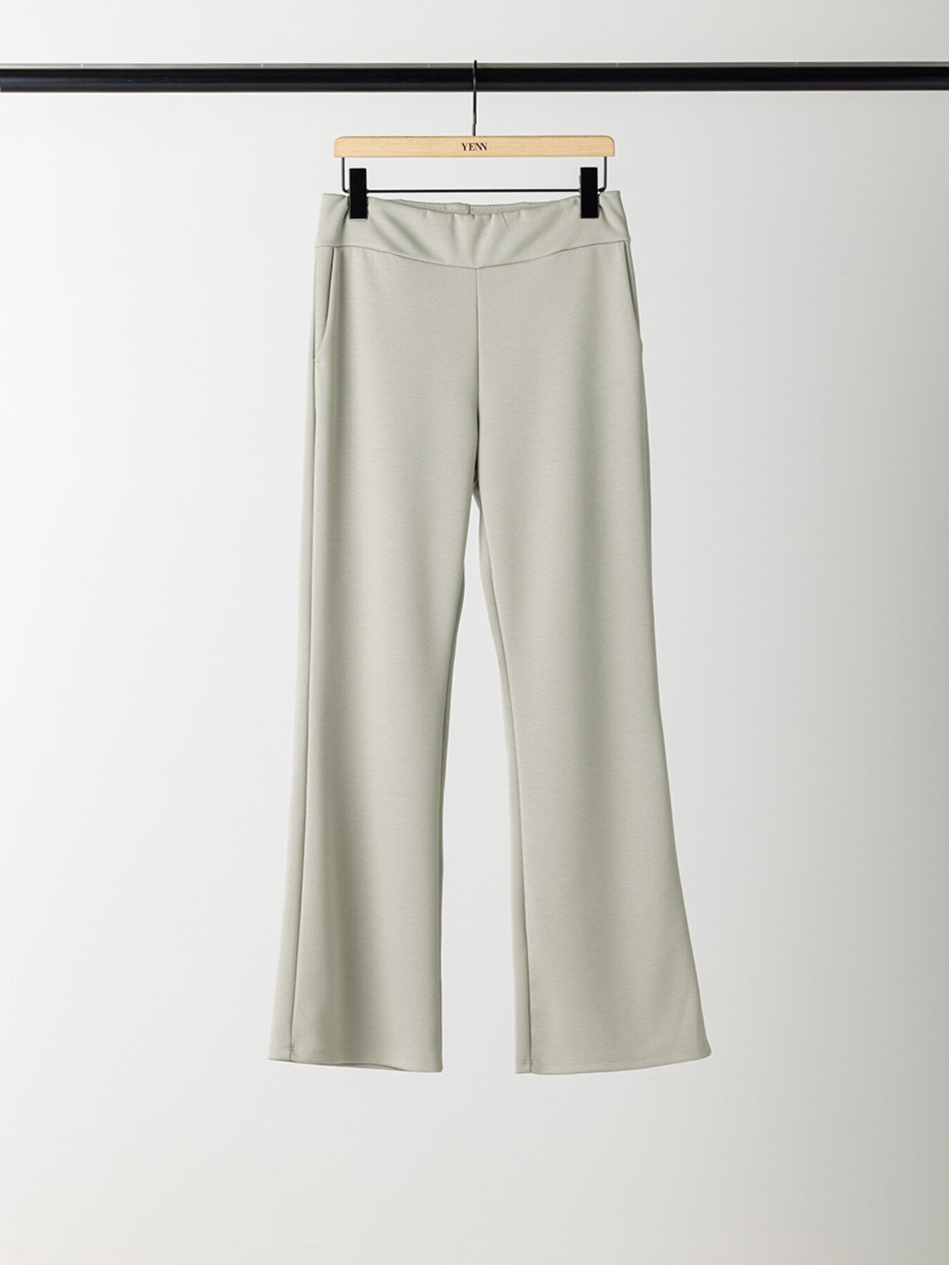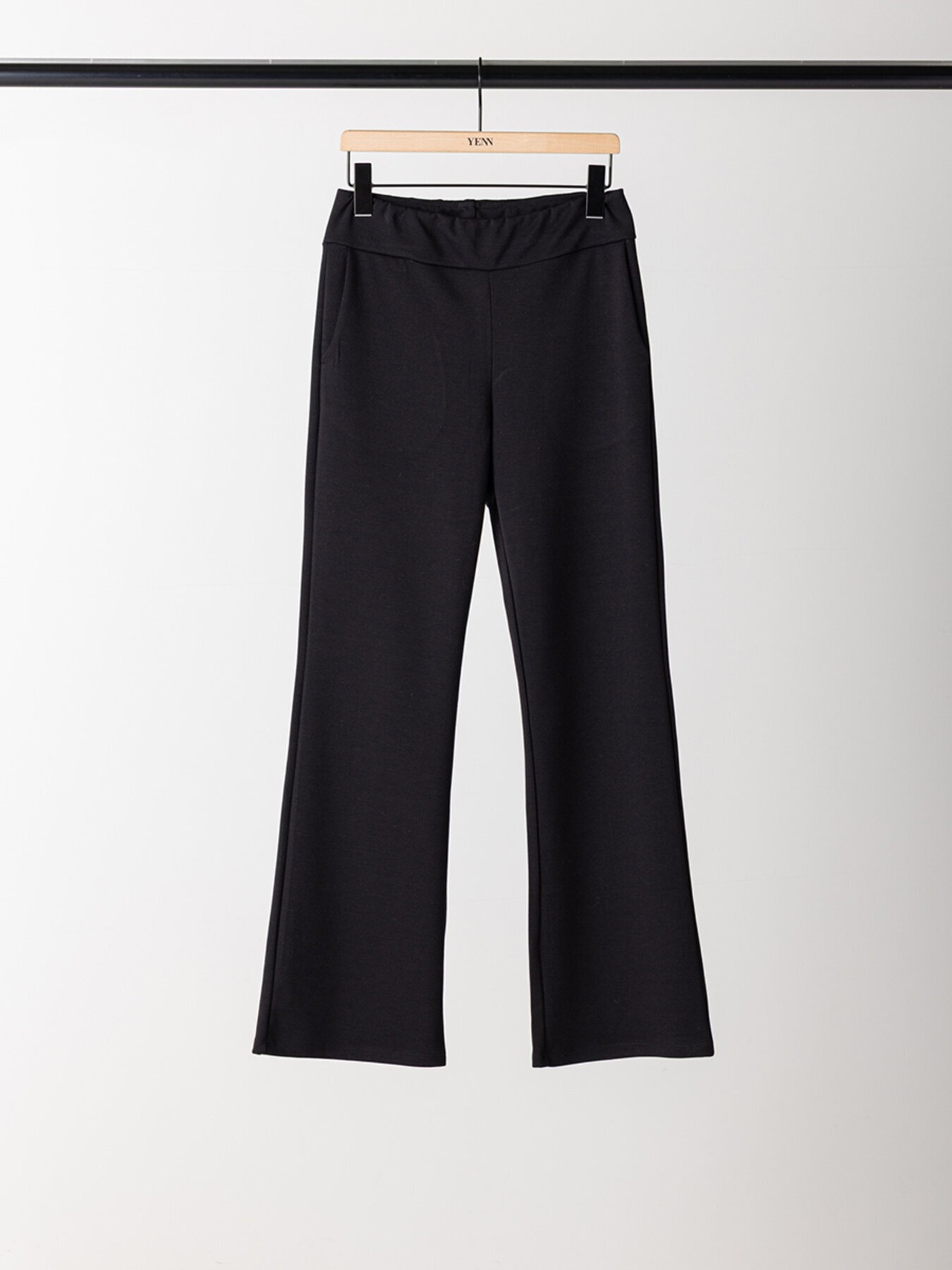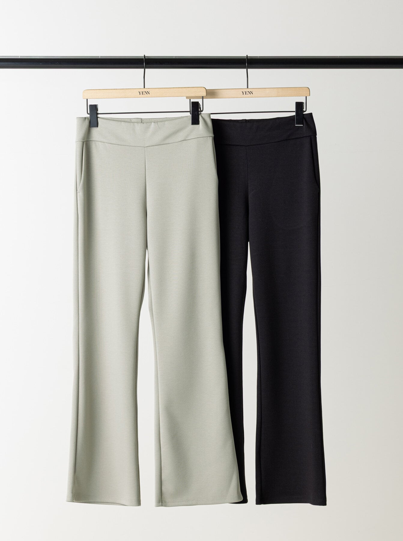 定番のレギンスと同素材の生地を使用した、フレアパンツです。