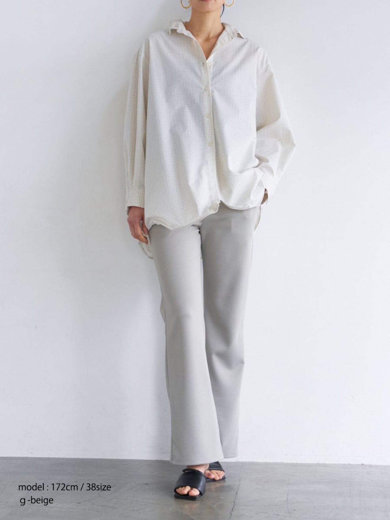 足回りのサイズに少しゆとりを出してきれいに落ちるセミフレアシルエットに仕上げました。