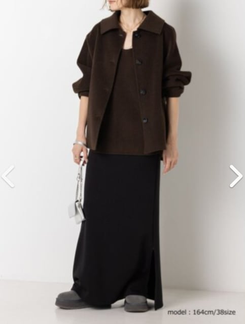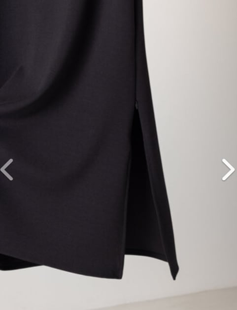 動くたびに揺れる裾は弾力のある生地と相性もよく、イージーながらも女性らしいきちんと感をプラスします。