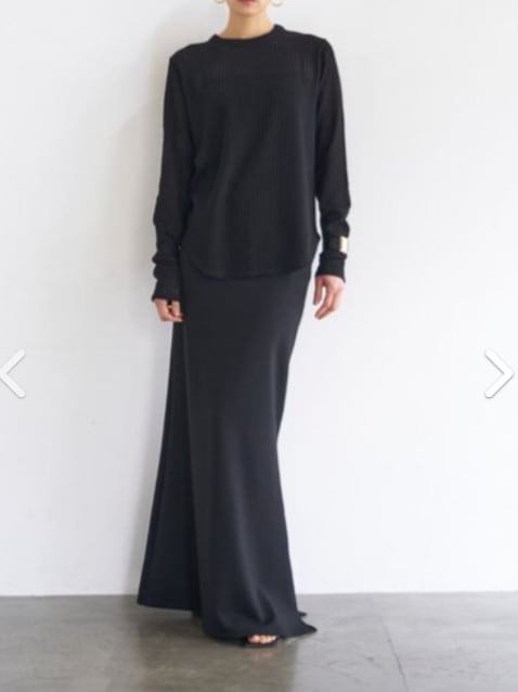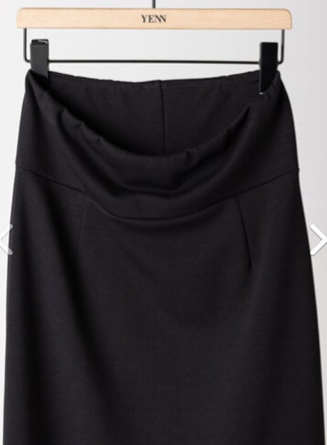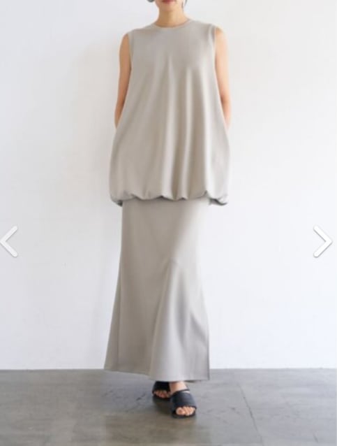 ストレスフリーなウエストの仕様はそのままに、膝辺りから広がるマーメイドラインのシルエットを採用。