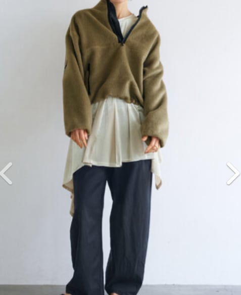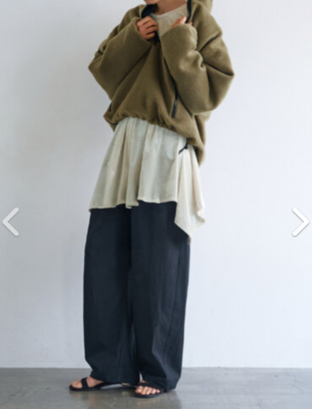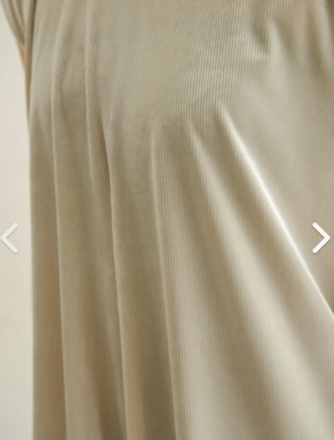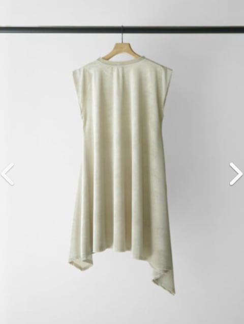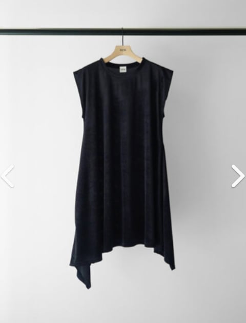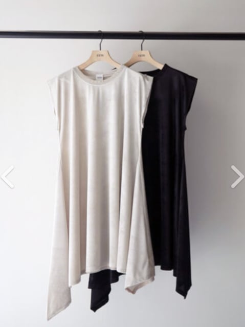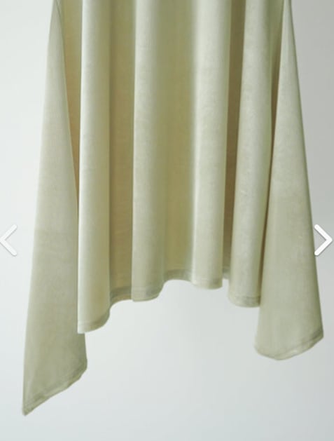 ベルベットの畝が生み出す立体感と、やわらかな起毛の光沢が印象的。落ち着いた表情の中に奥行きを感じさせる、秋らしい素材感が魅力です。両サイドにマチ切替を入れ、裾はイレギュラーヘム仕様に。動きに合わせて揺れるラインが自然なニュアンスをつくり、腰まわりやヒップラインをさりげなくカバーします。袖口はふんわりと折り返したデザインを採用。肩先をやわらかく覆うフレンチスリーブで、カジュアルすぎず上品なバランスに仕上げました。アウターやベスト、トップスの下に重ねると、イレヘムの裾がレイヤードのアクセントに。トレンドのレイヤードスタイルを、秋らしい素材感でアップデートしてくれる、深みのある表情で魅せる、大人のためのレイヤードチュニック。