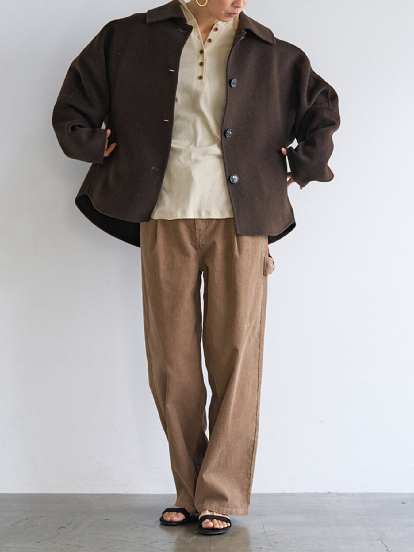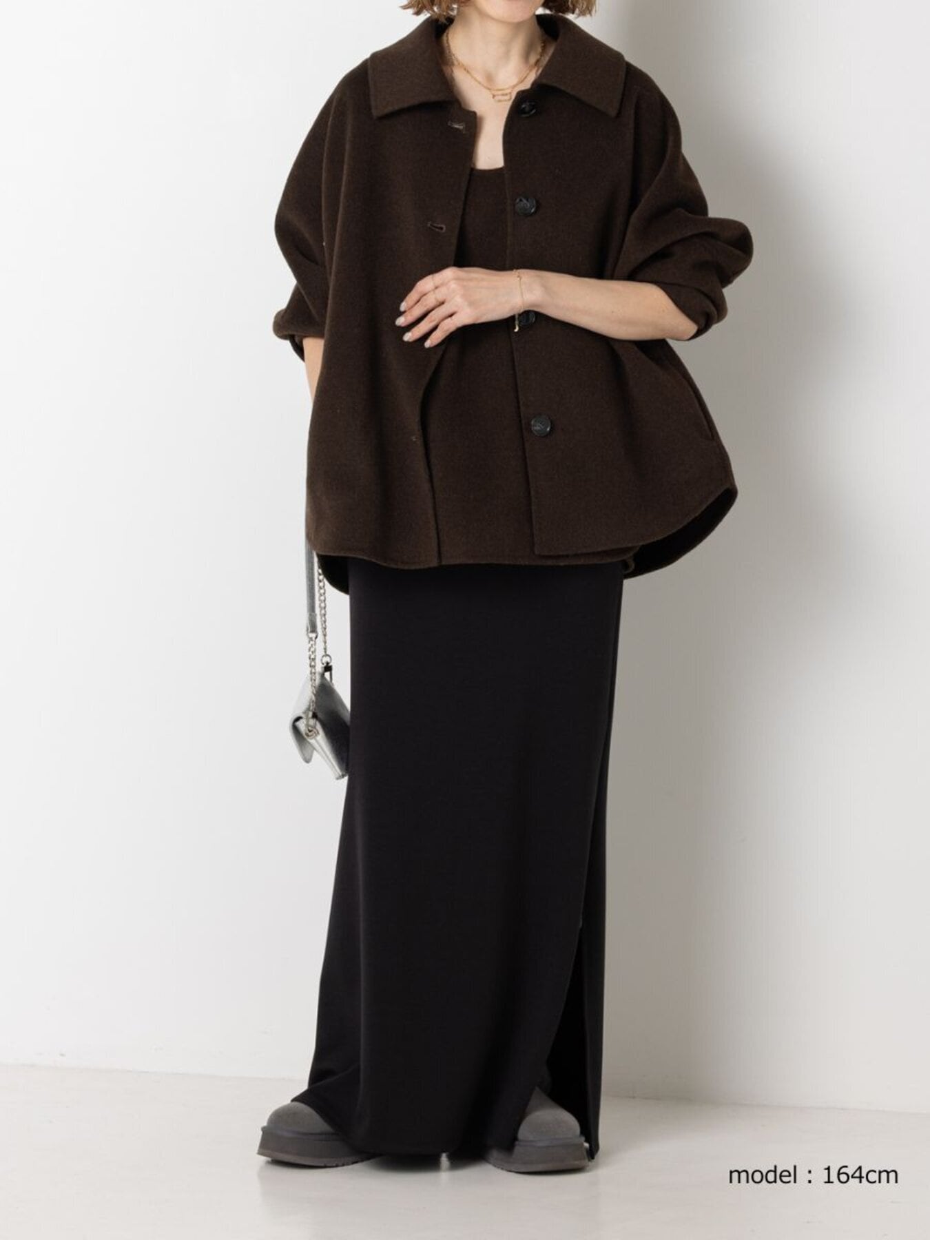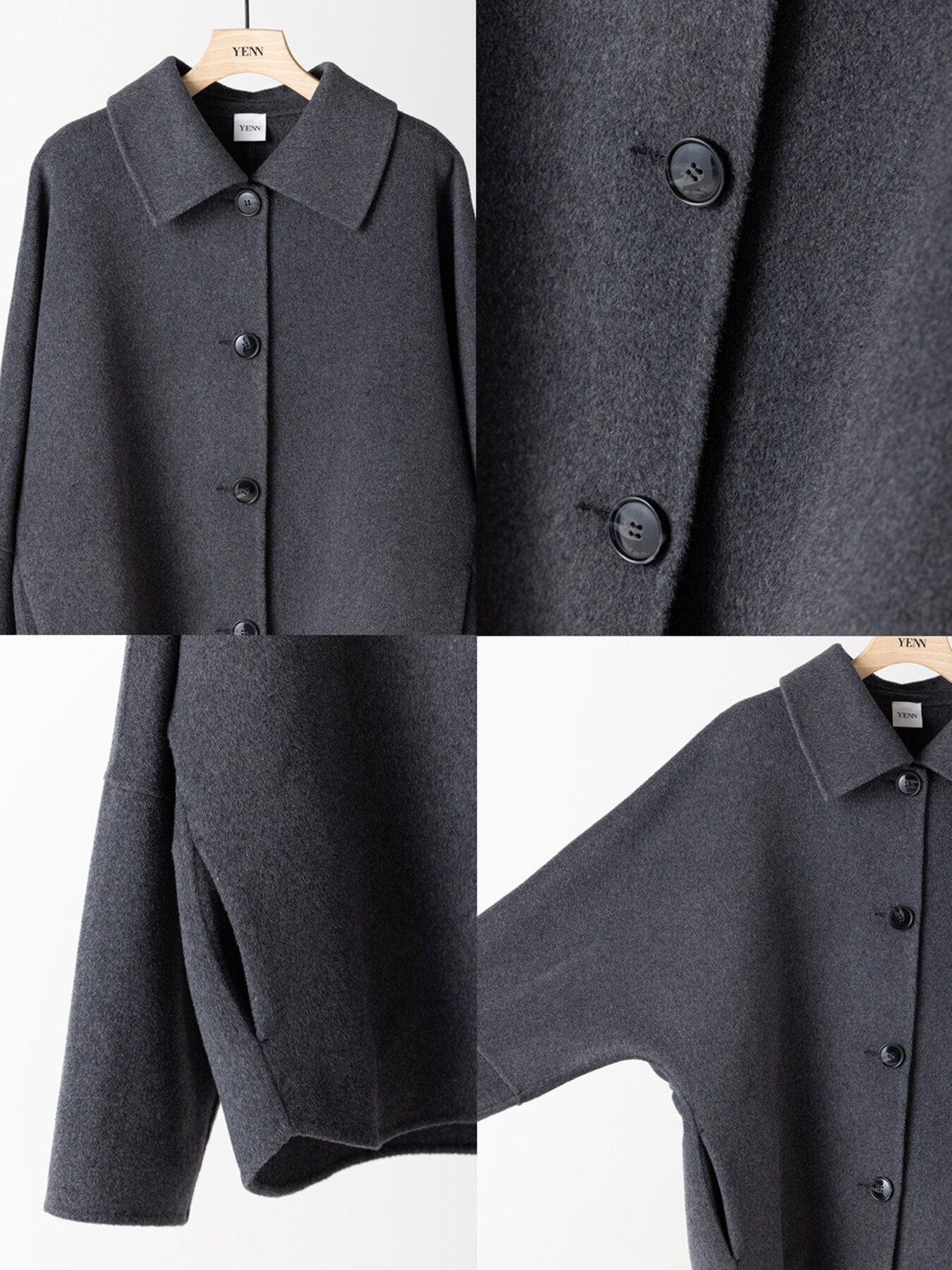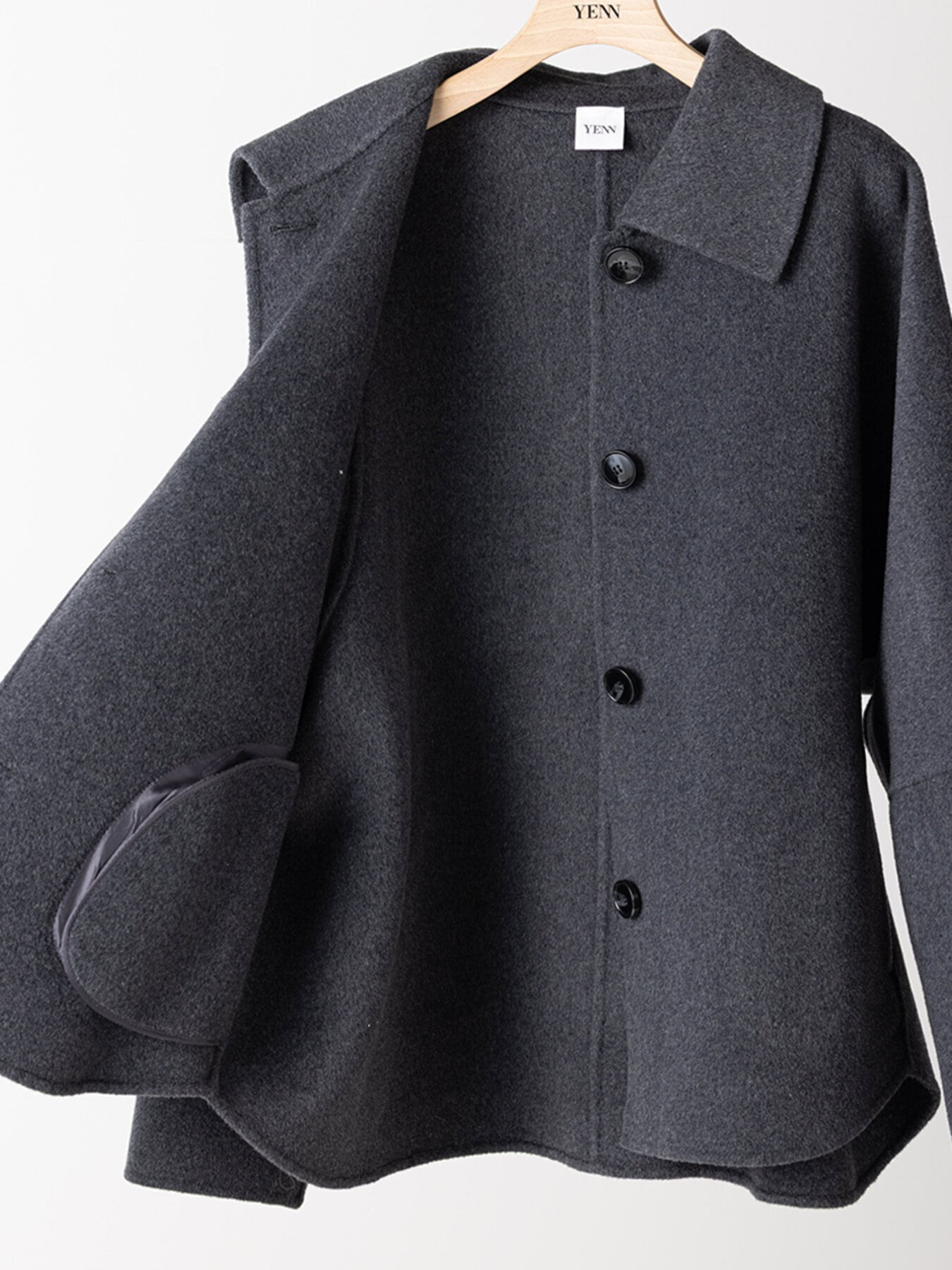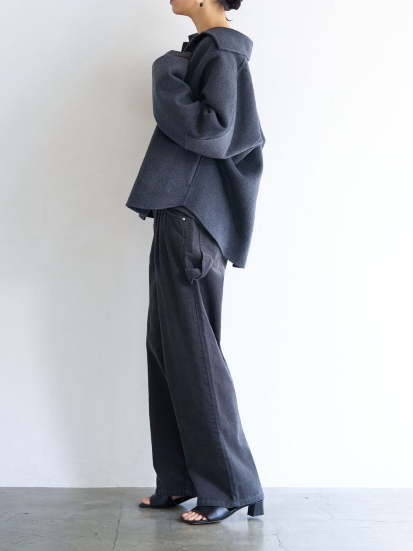 コンパクトな丈感と程よくゆとりのあるボックスシルエットで、装飾を極力省いたミニマルな設計に。素材の上質感が際立つようデザインされています。