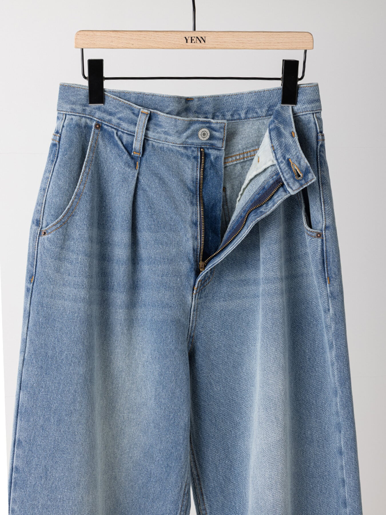 定番のタックワイドパンツと同じメンズライクな13.2オンスデニムを使用。