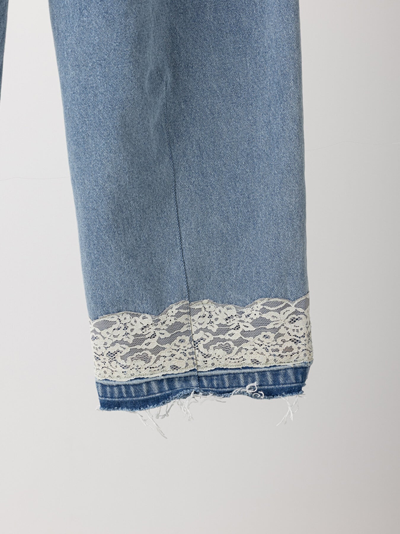 裾に繊細なレースを付けて加工したリメイク風のデニムパンツです。