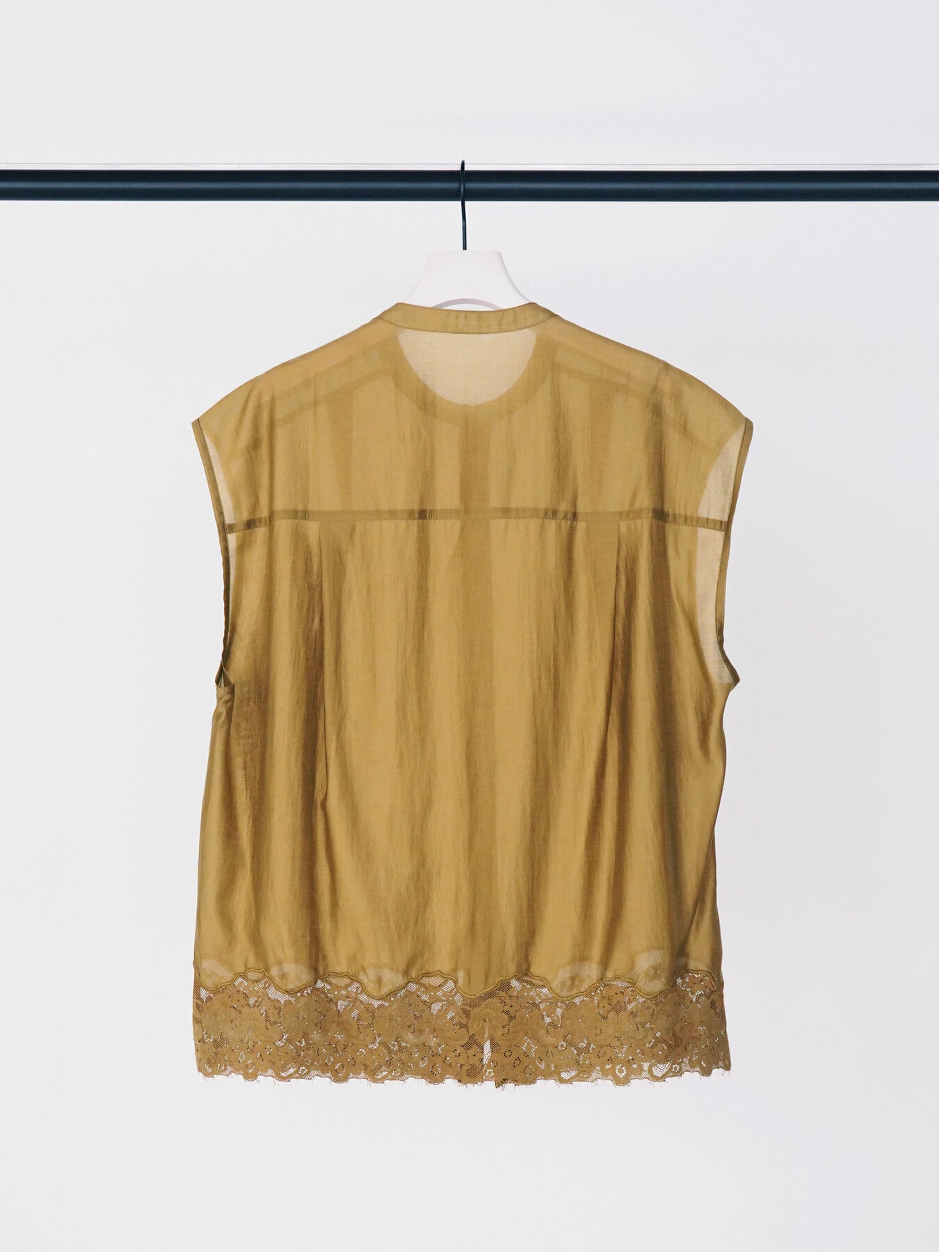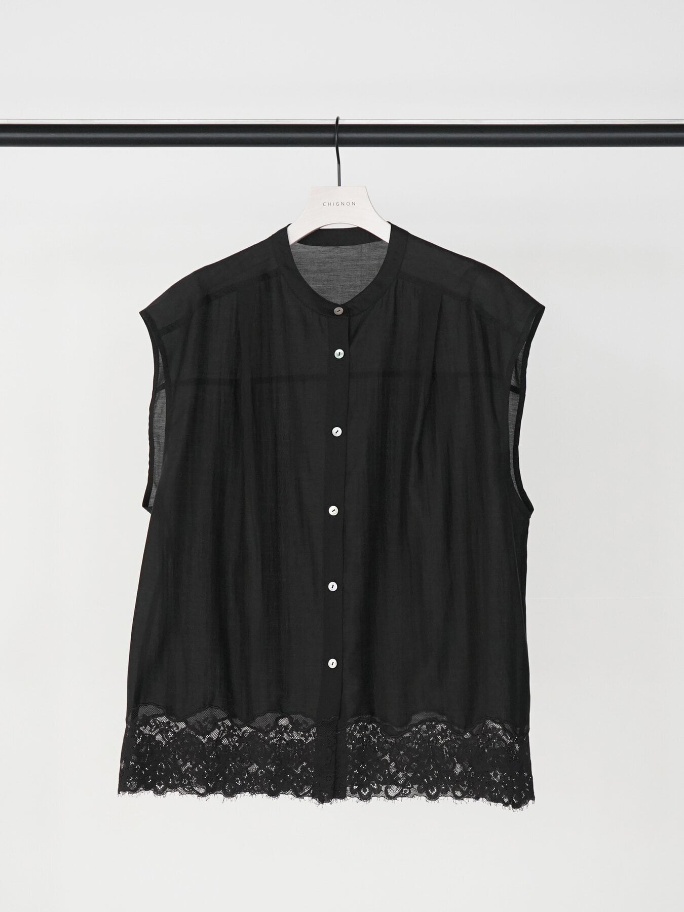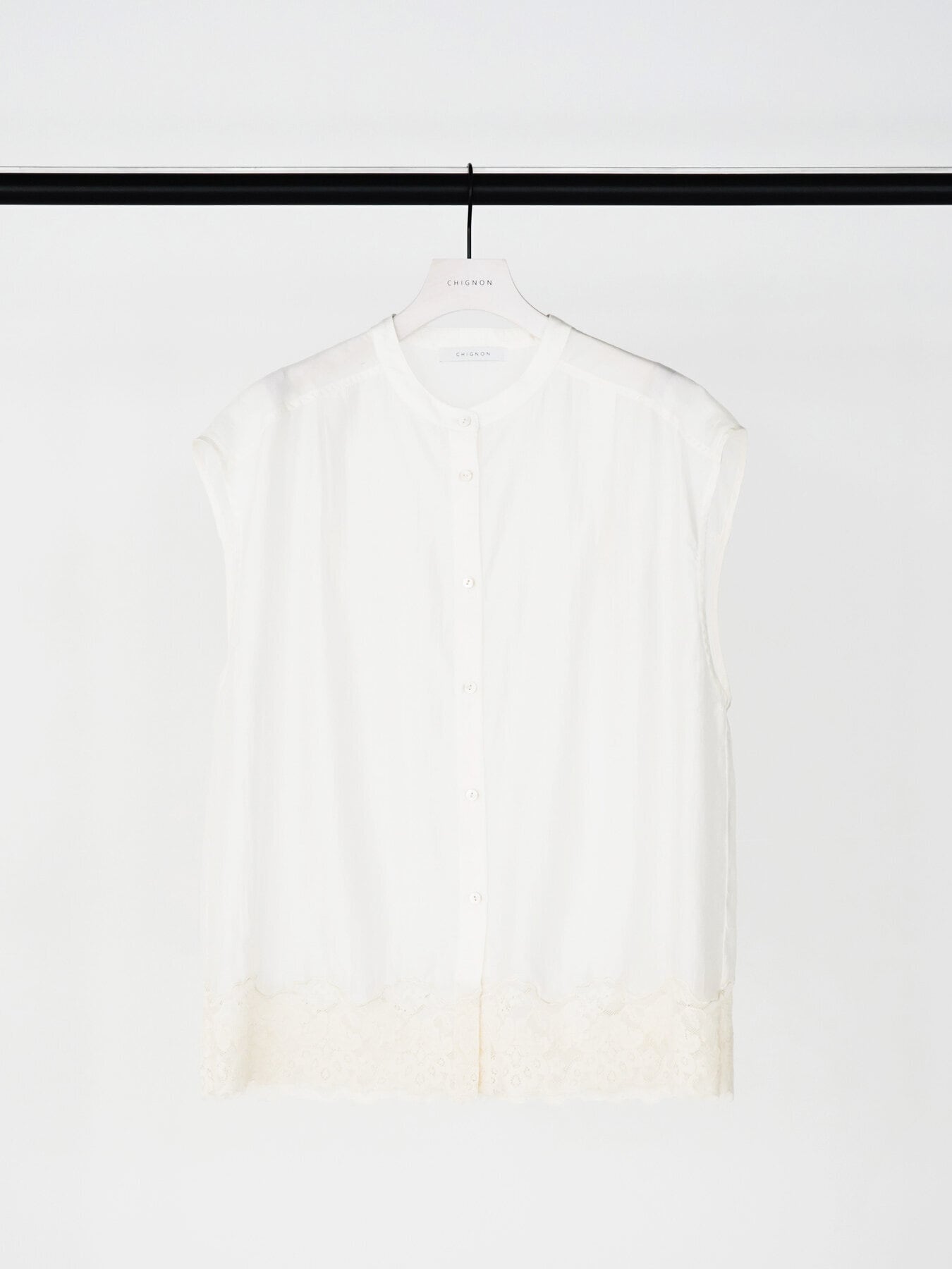 軽やかなシアー素材に繊細なレースを刺繍したデザインフレンチシャツ。