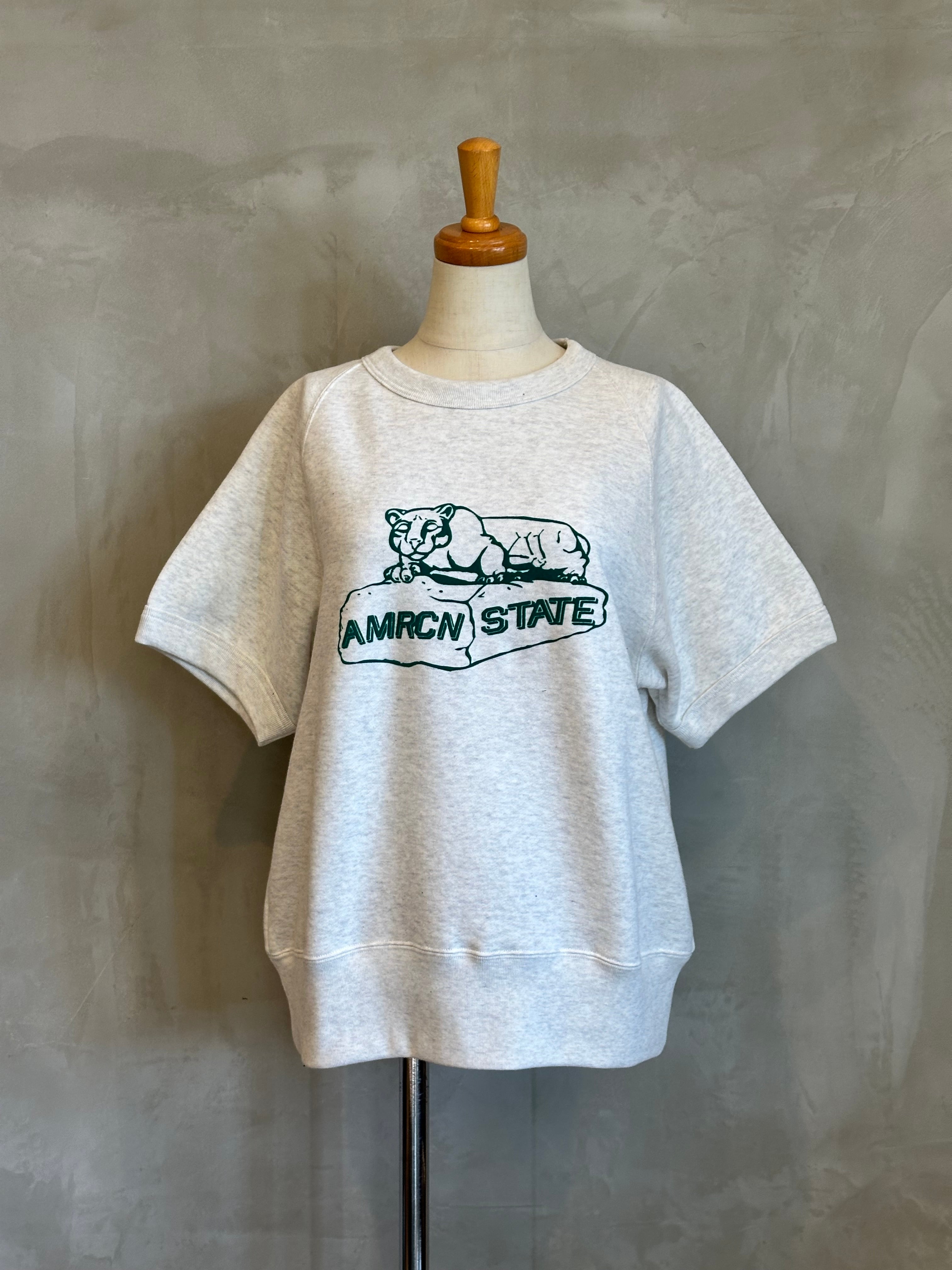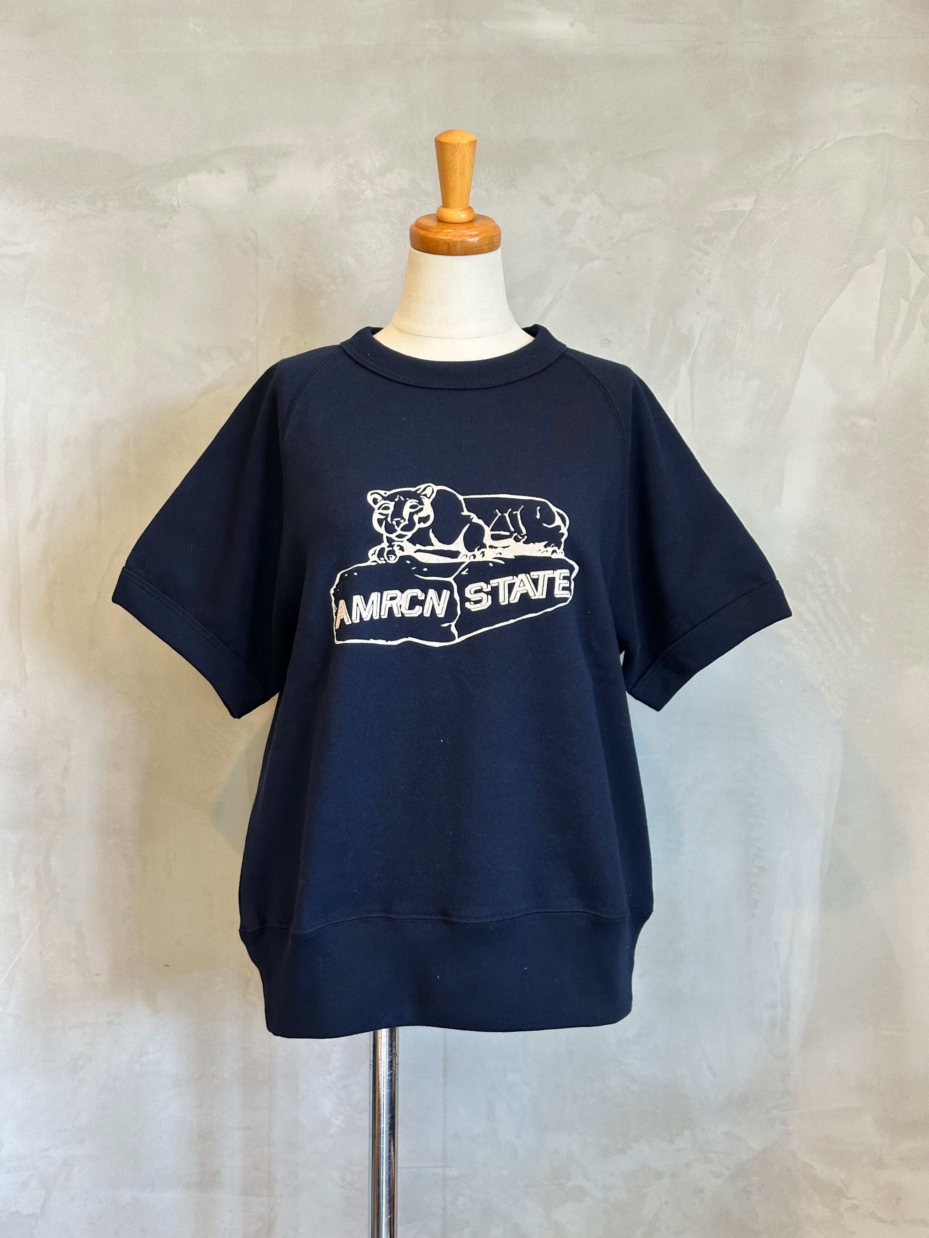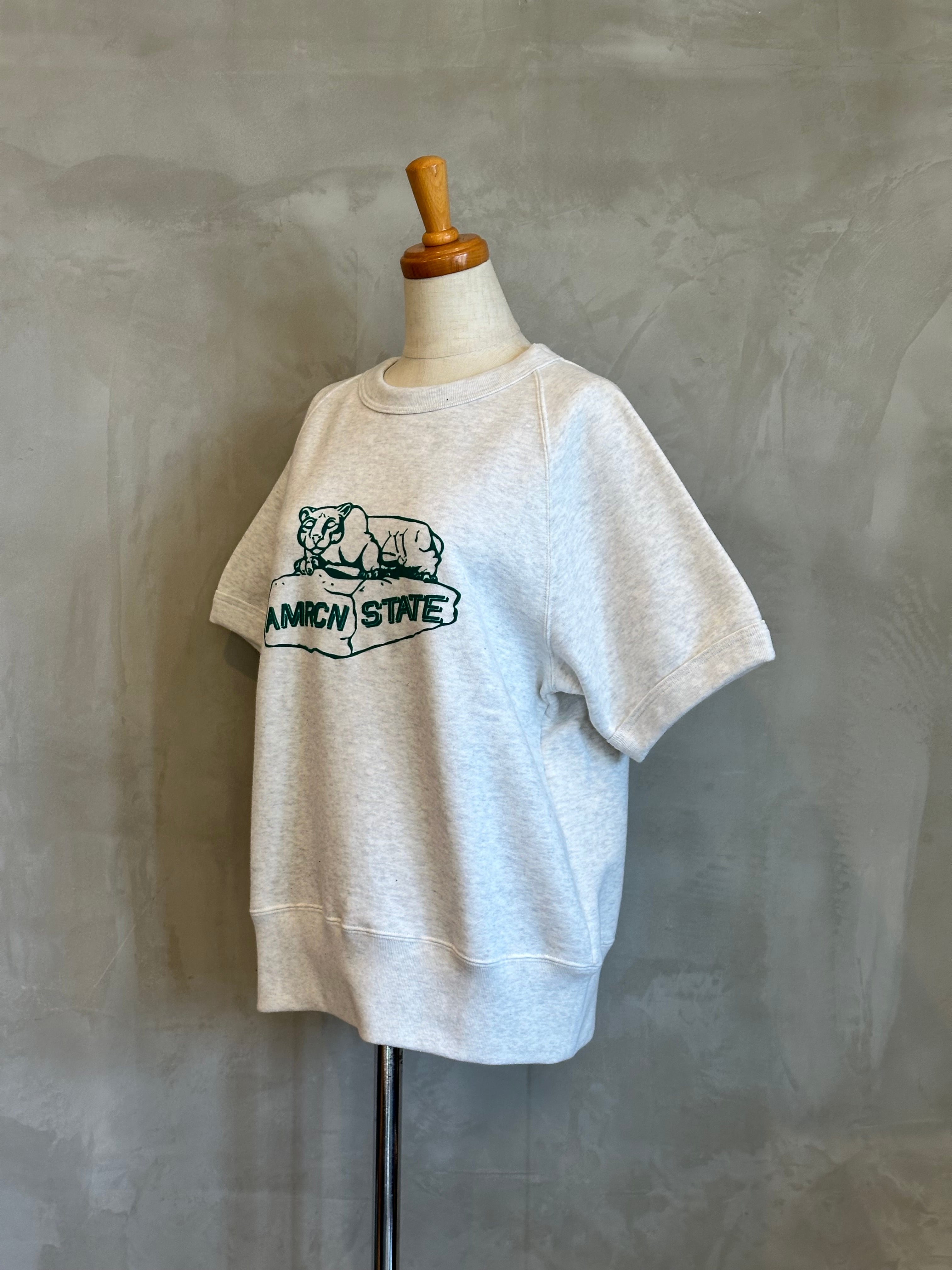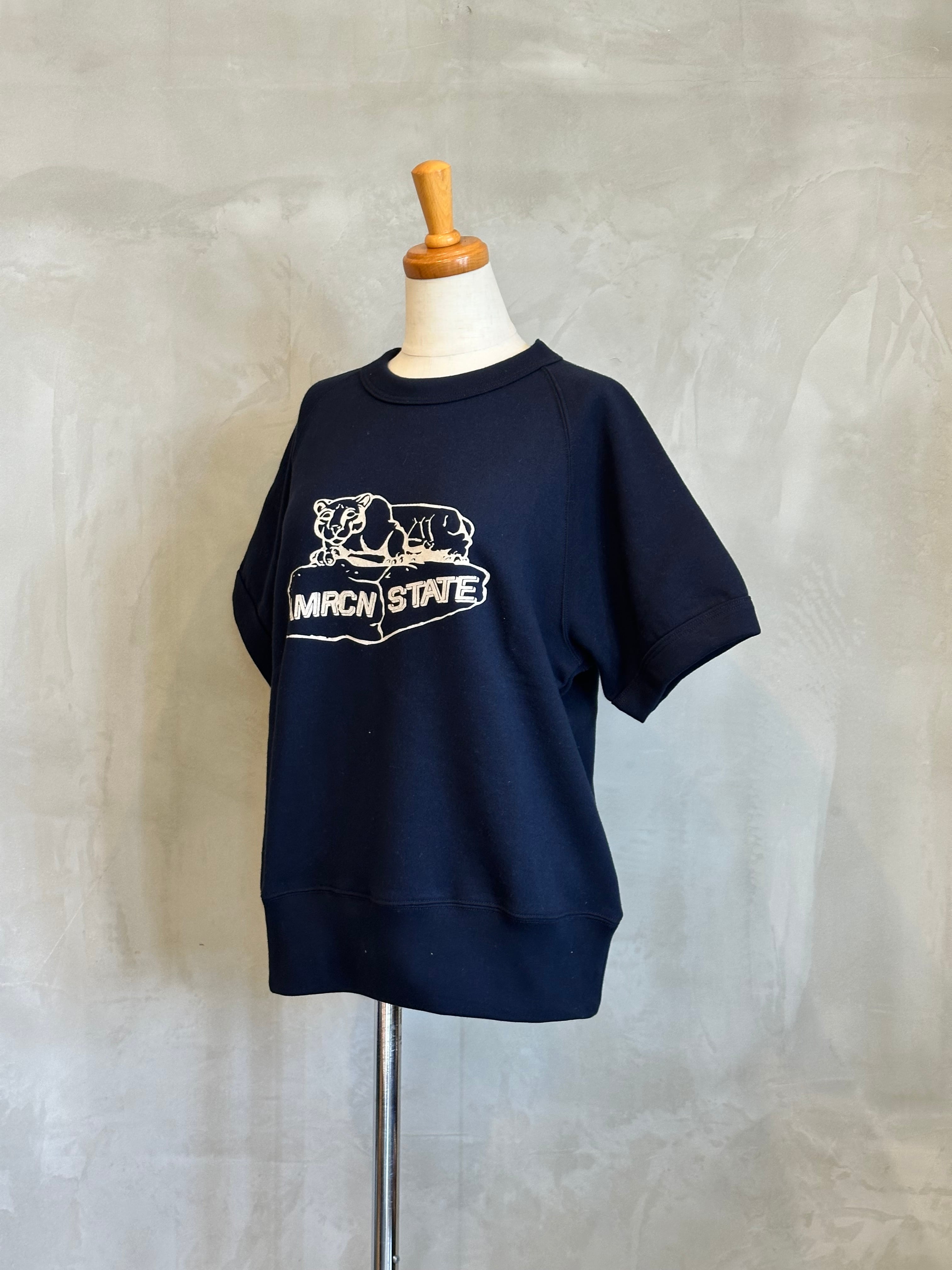 フロントに配したイーグルモチーフとロゴプリントが存在感を放つ、ショートスリーブのラグランスウェット。