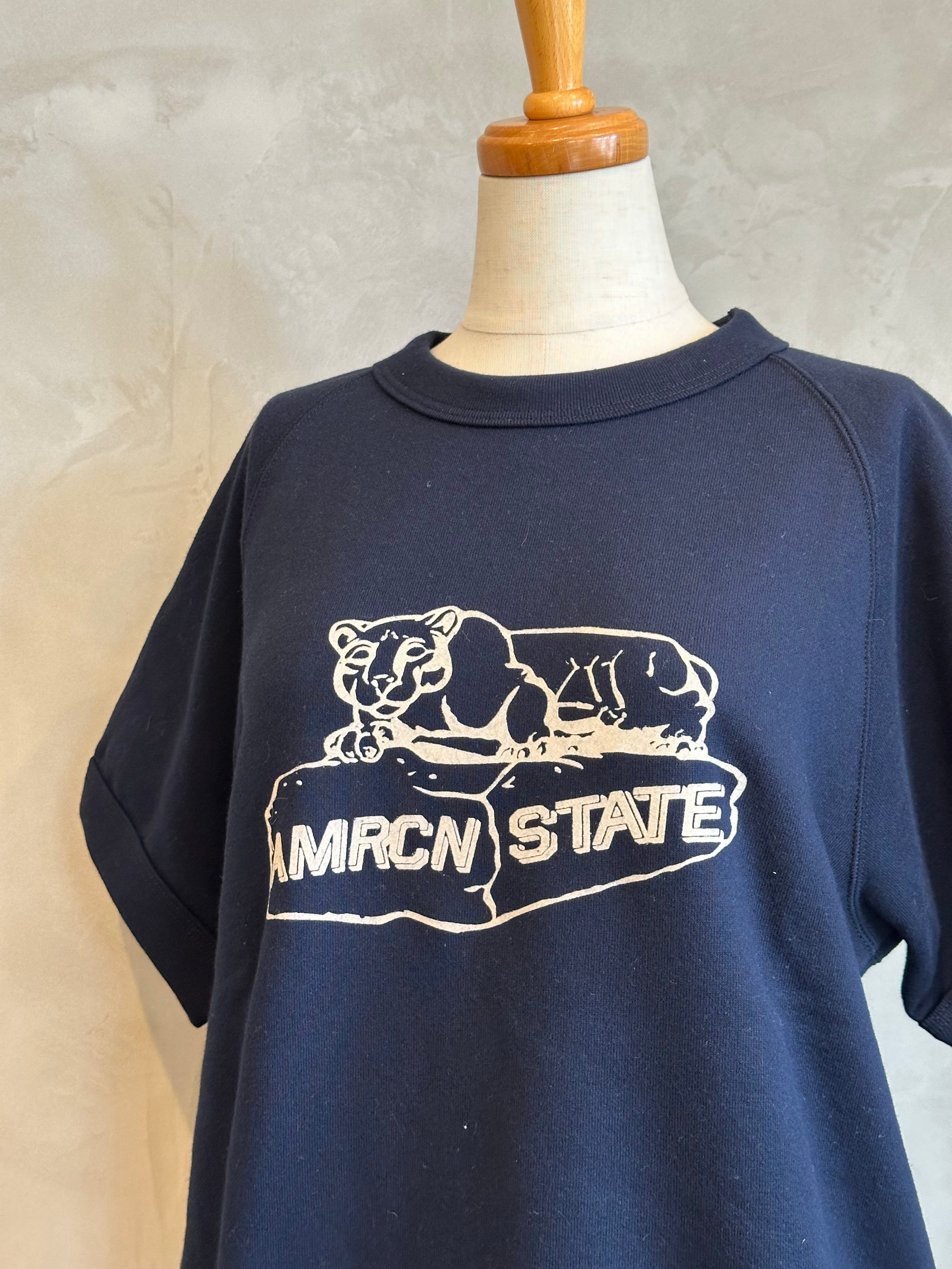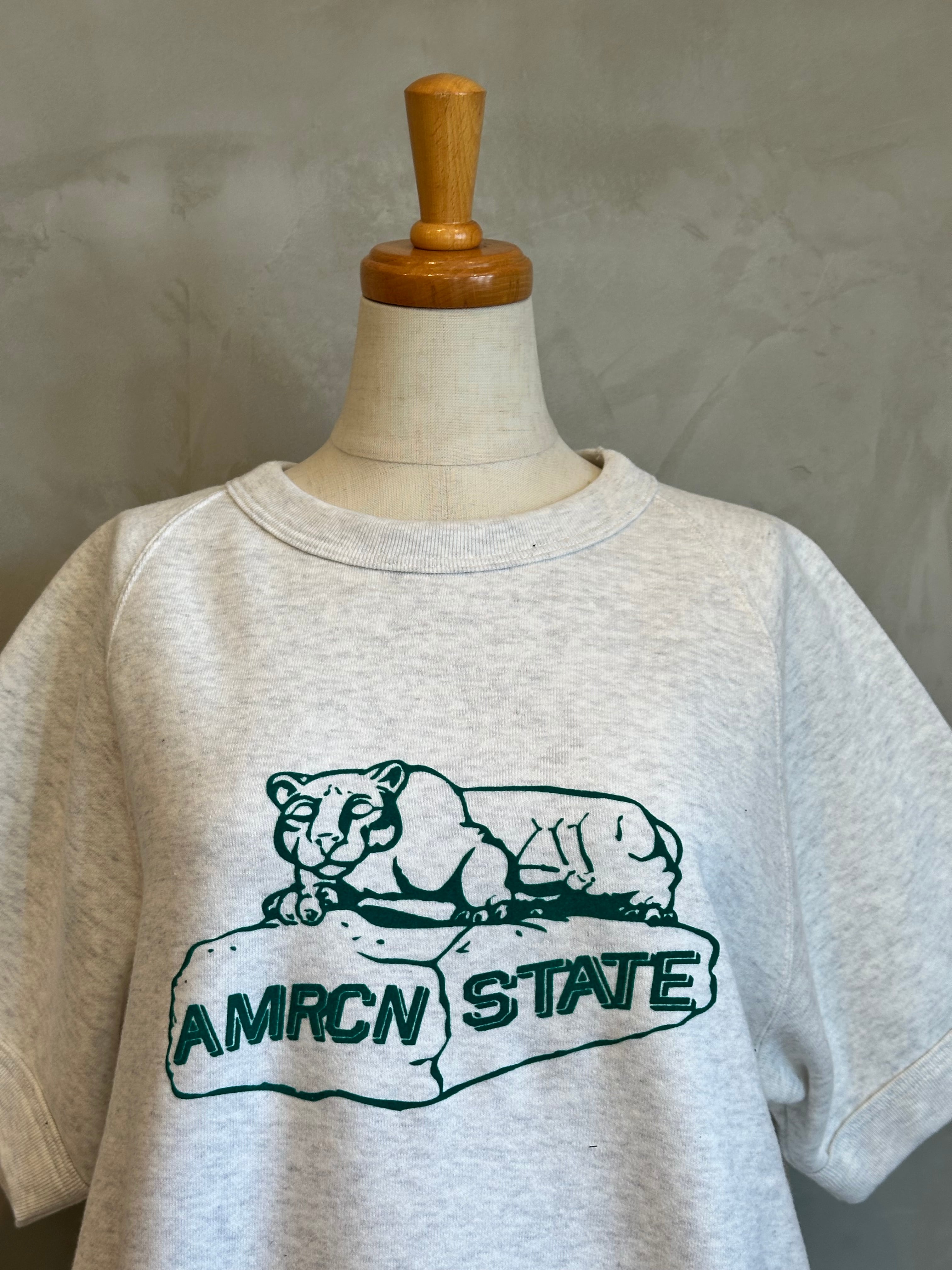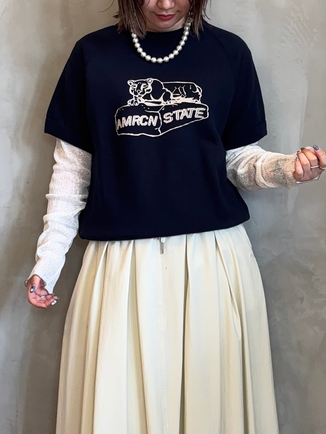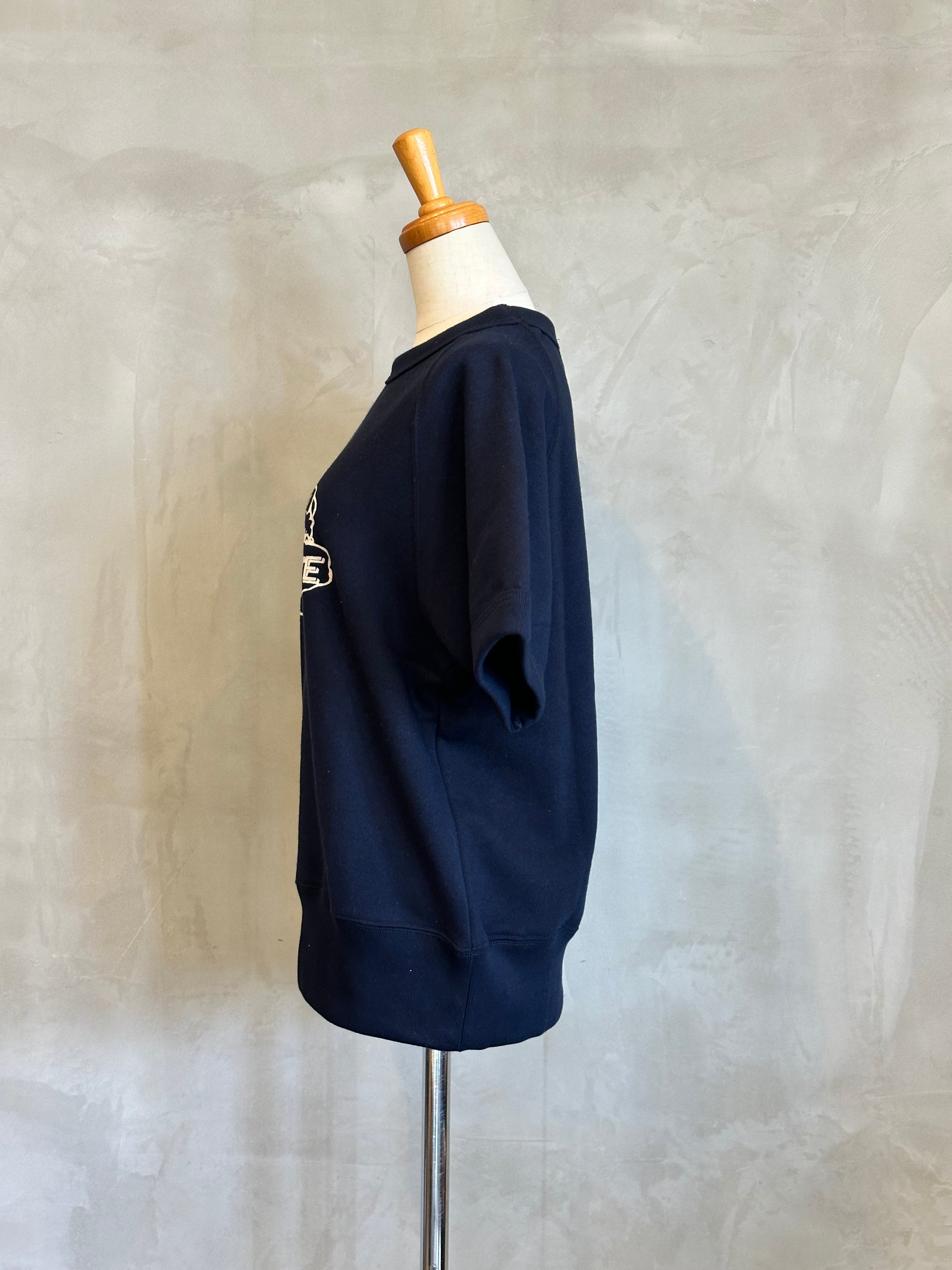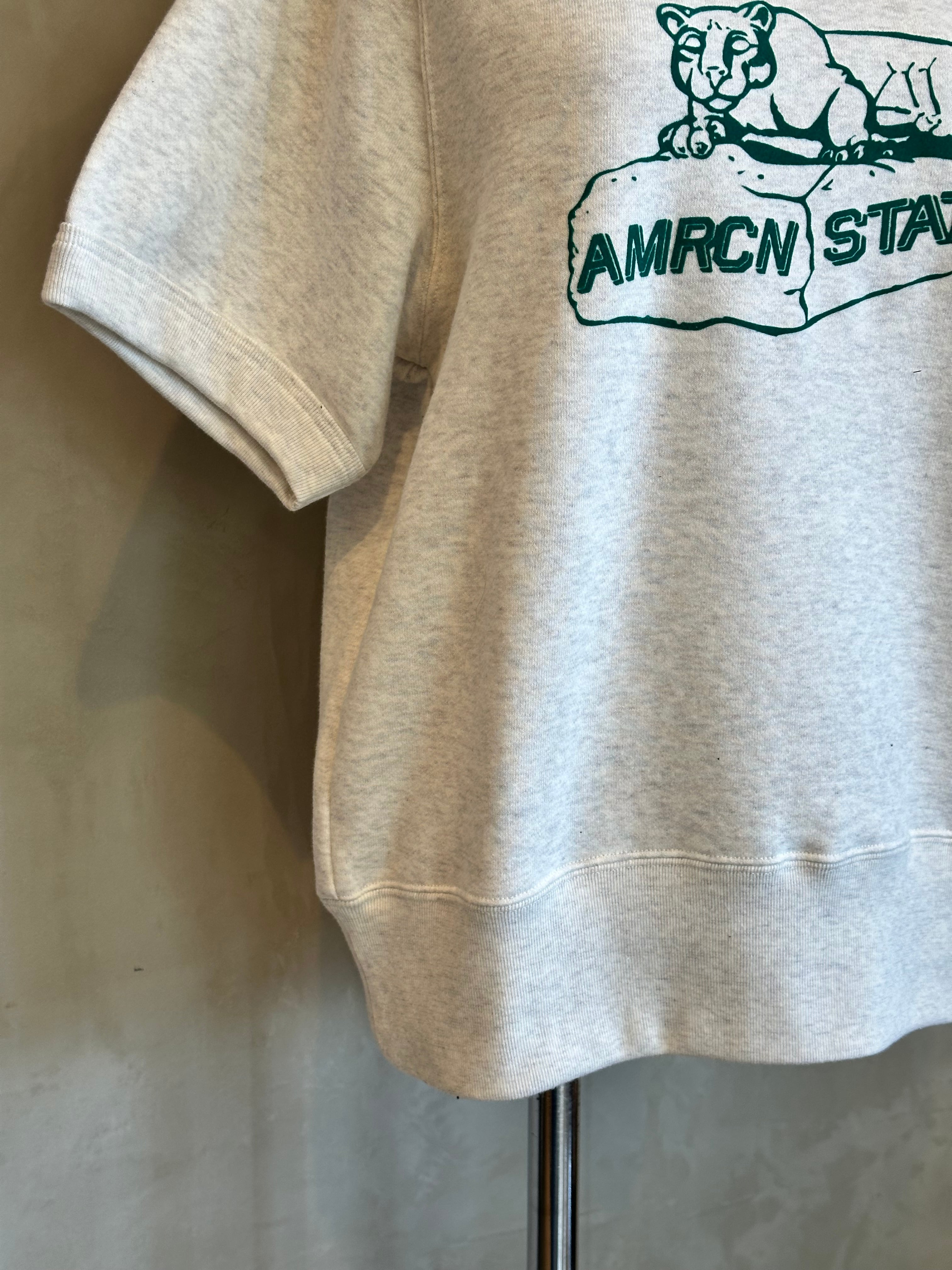 フロントに配したイーグルモチーフとロゴプリントが存在感を放つ、ショートスリーブのラグランスウェット。