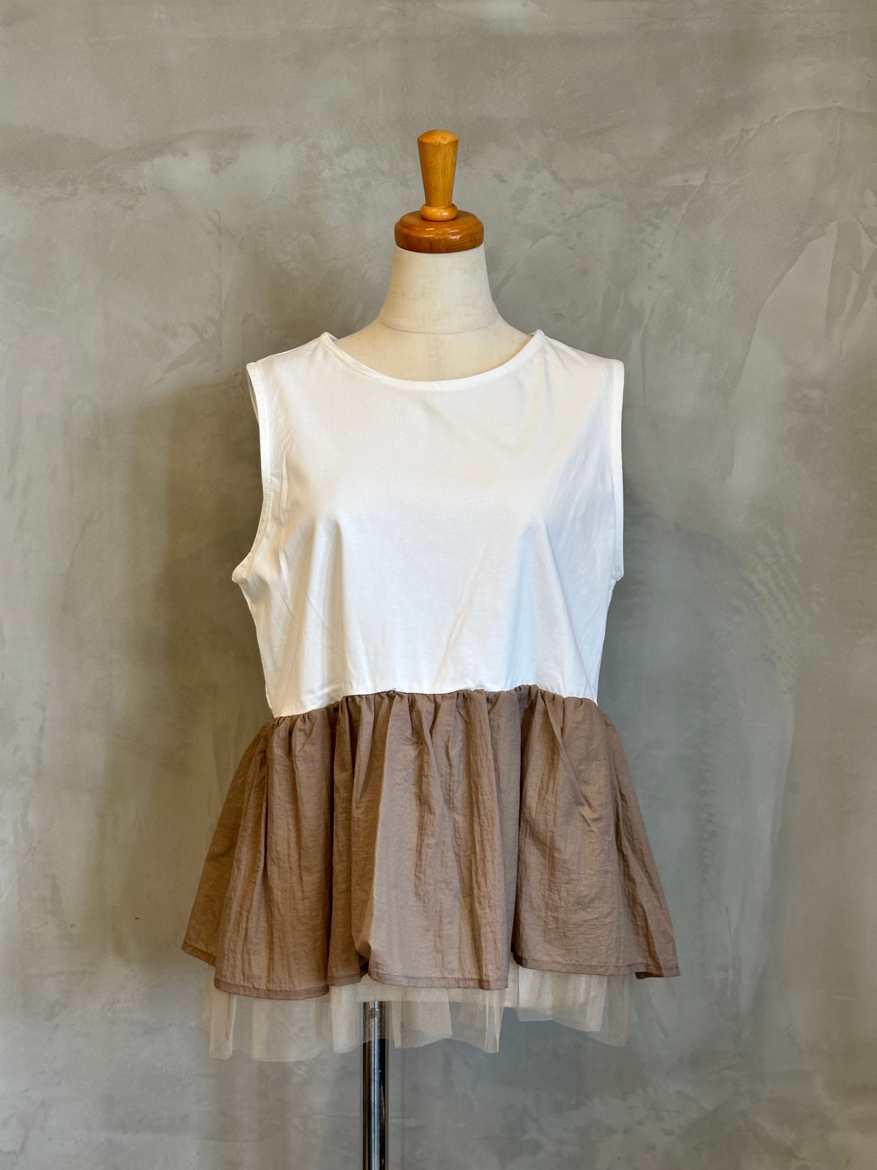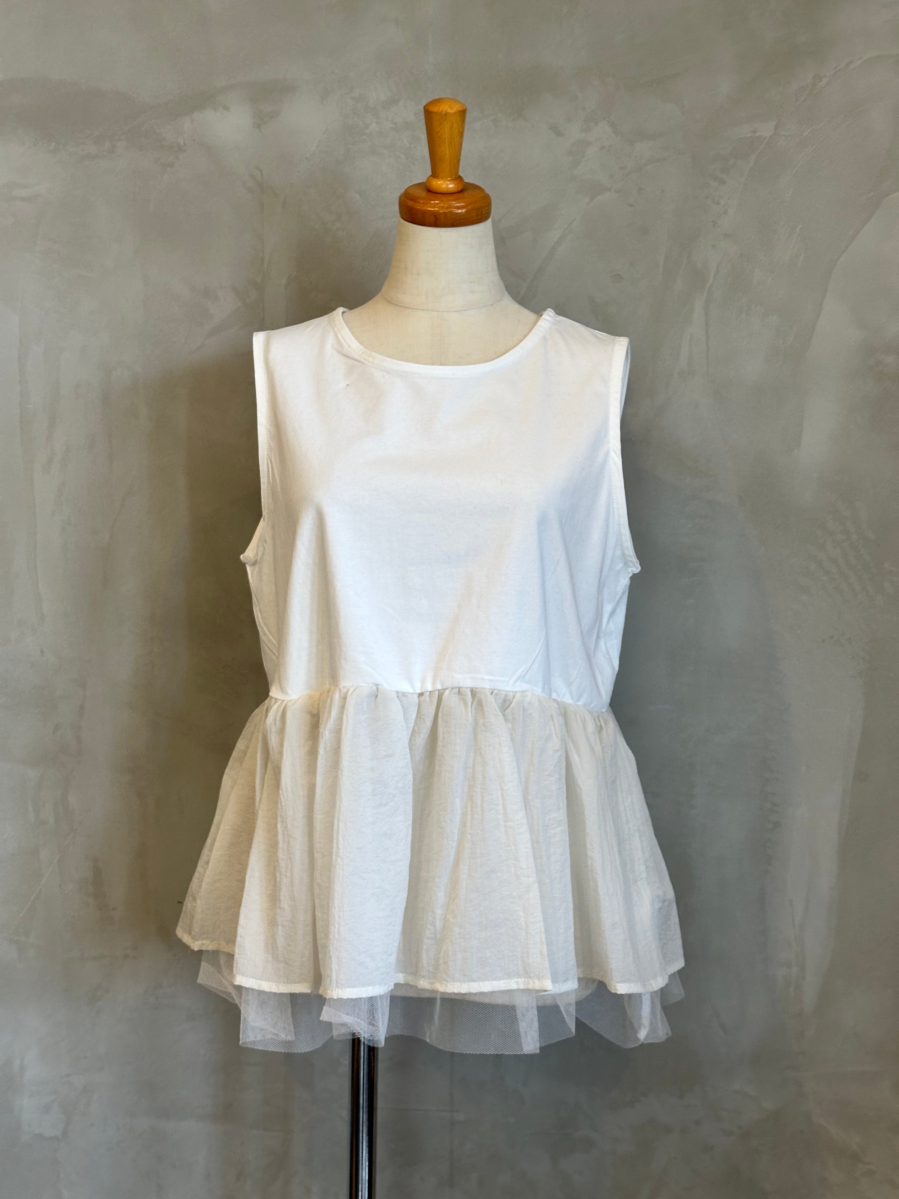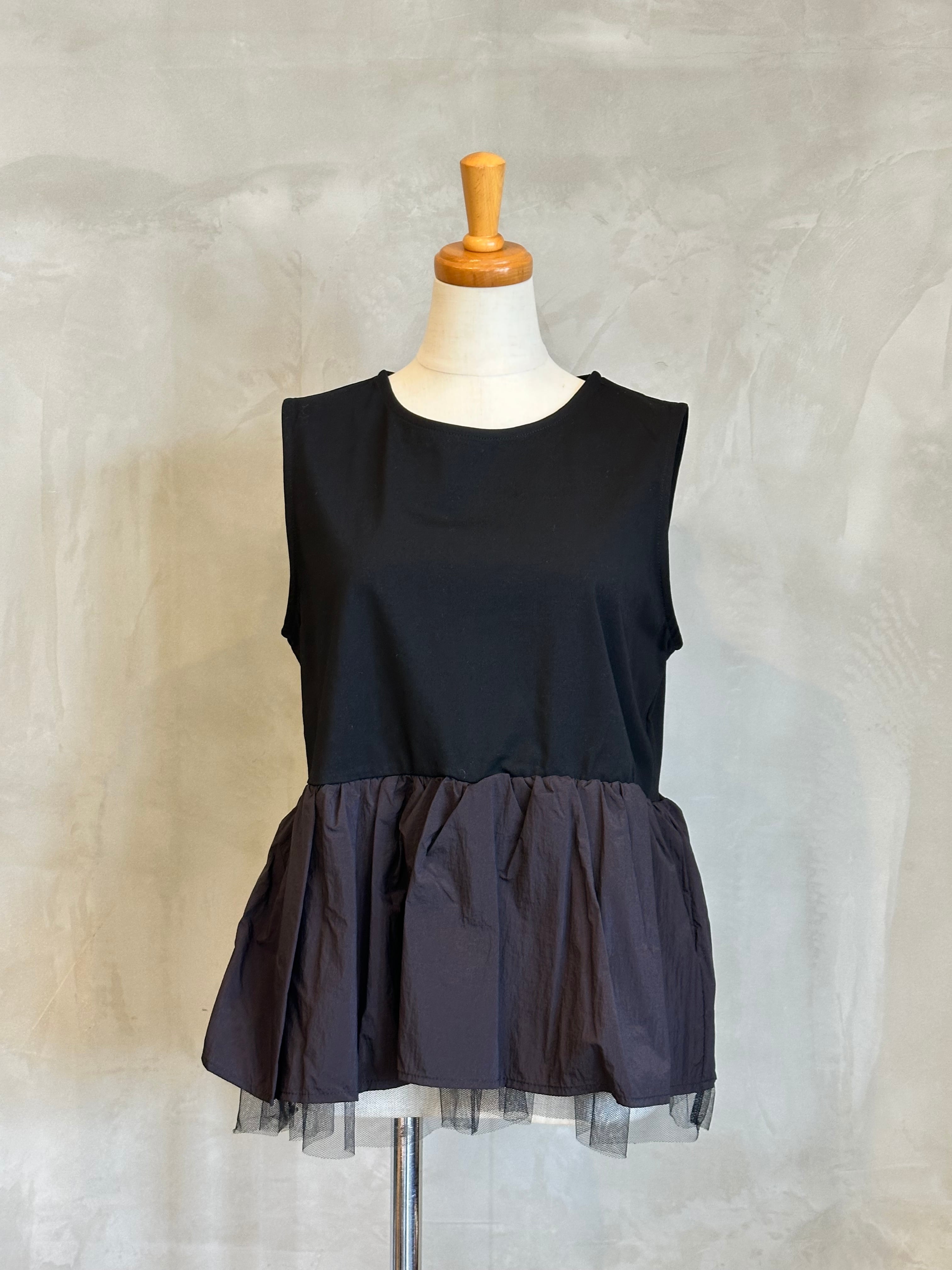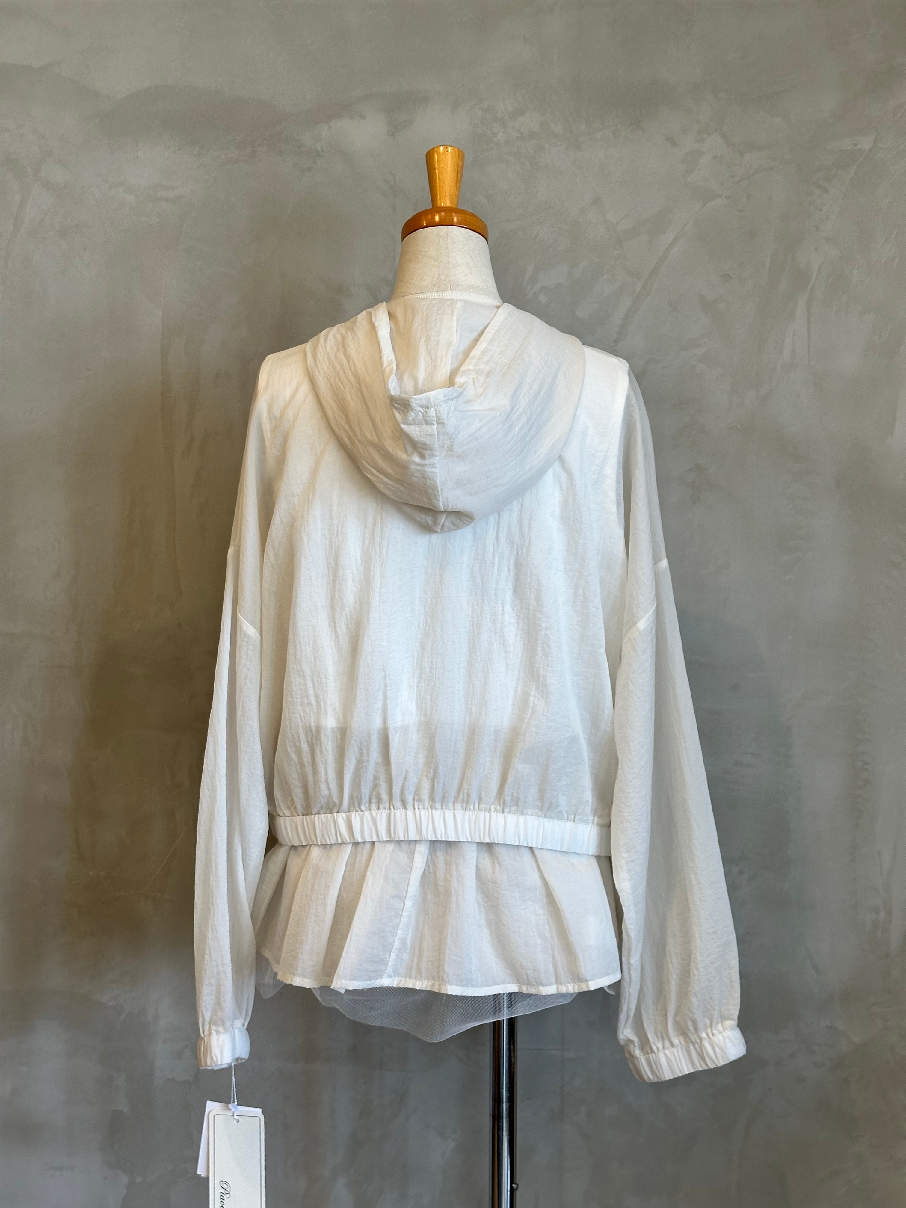 チュールの裾が華やかさを演出するインナーと、スタイリッシュなブルゾンのセットアイテム。
