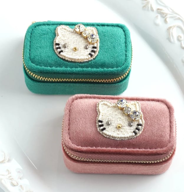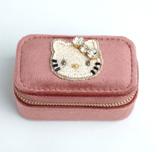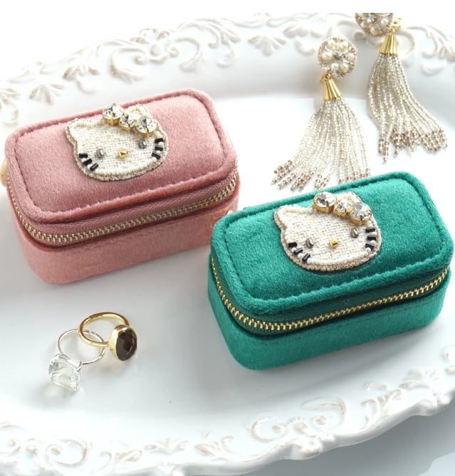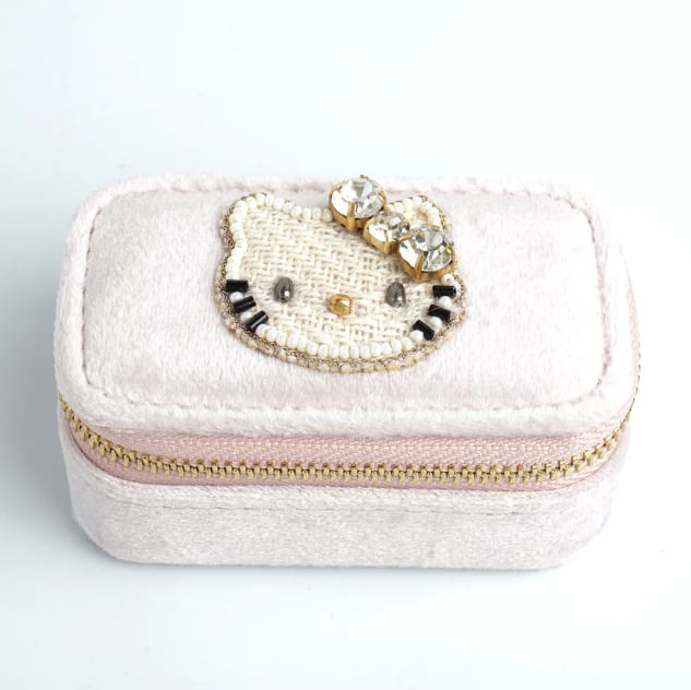 ビーズ刺繍でデザインされたハローキティのジュエリーBOX。