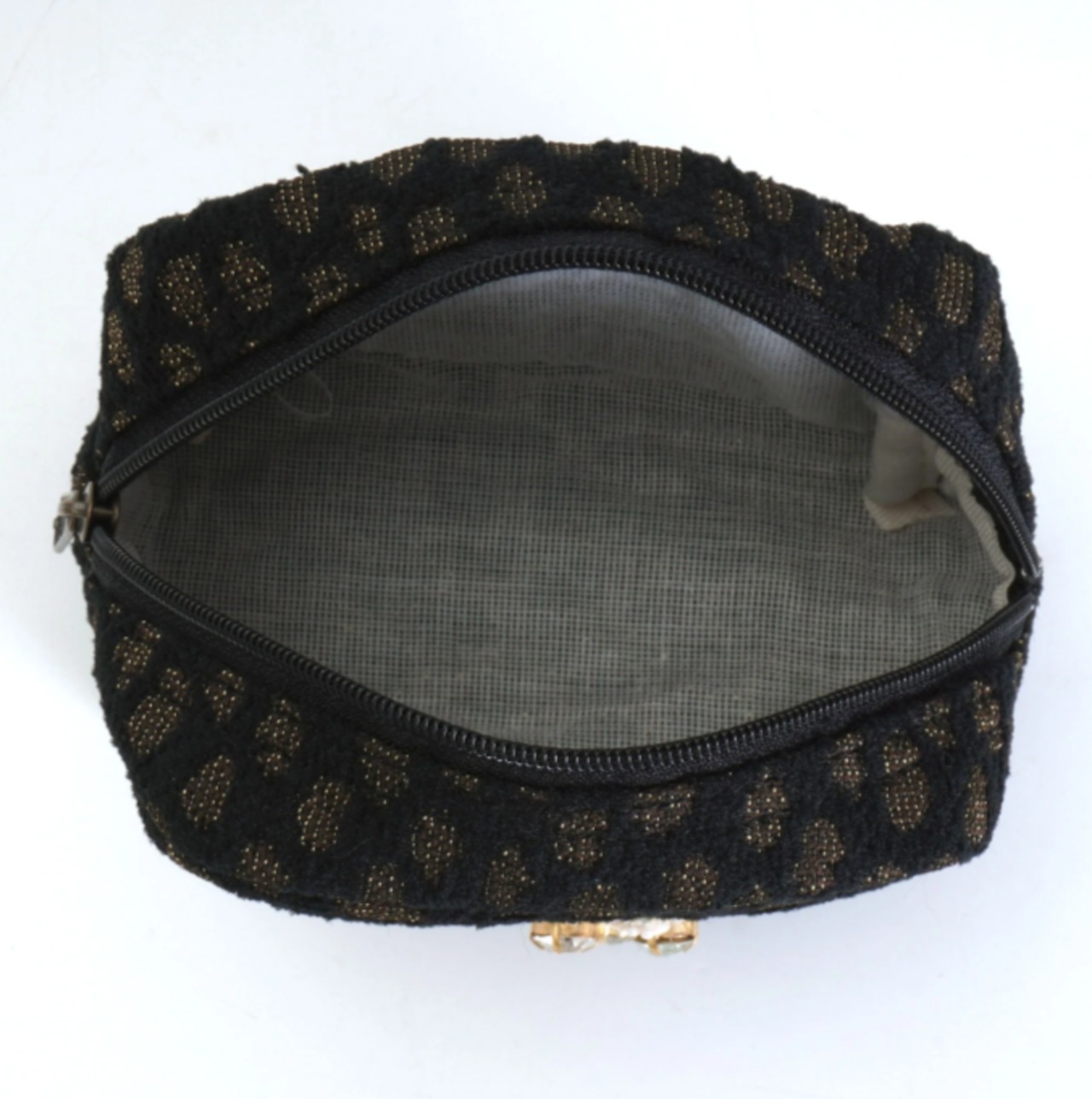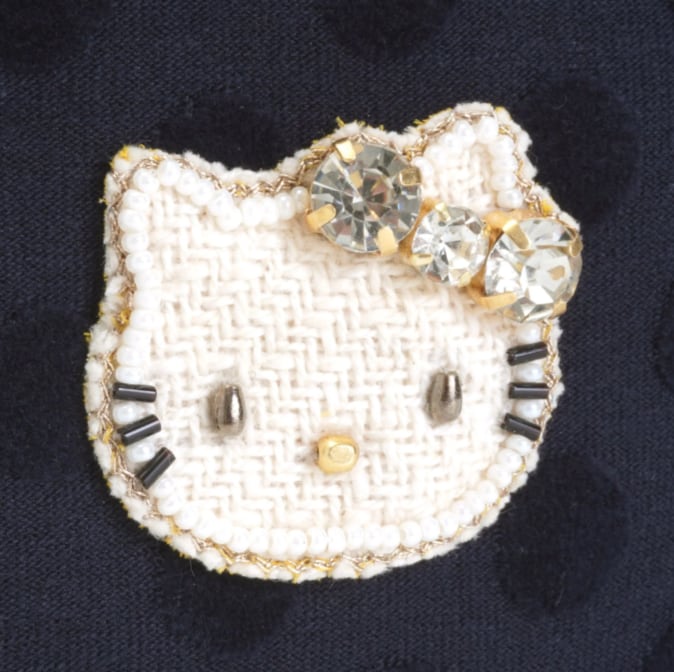 洗練されたテキスタイルの質感に、繊細なビーズ刺繍で表現されたハローキティがさりげなく輝く、大人のためのエレガントなデザイン。シンプルながらも素材やディテールにこだわり、ビジネスシーンやフォーマルな場面でも自然に馴染む一品です。