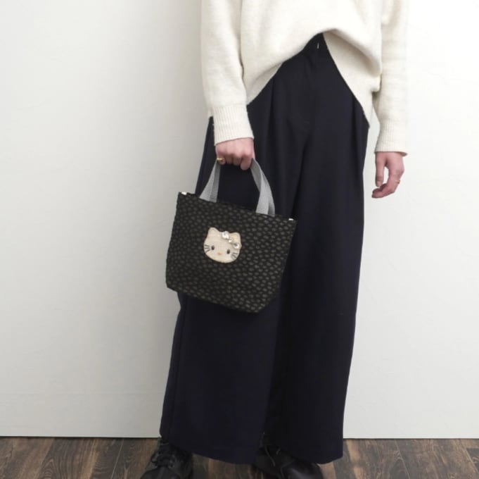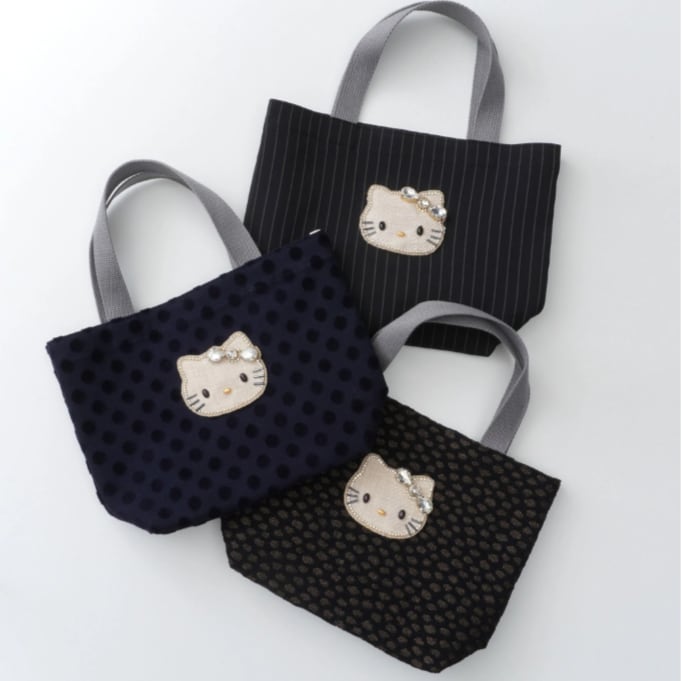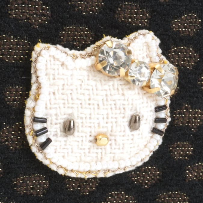洗練されたテキスタイルの質感に、ジュエルが輝くハローキティの刺繍をあしらった刺繍で表現されたハローキティが輝く、大人のためのエレガントなデザイン。シンプルながらも素材やディテールにこだわり、ビジネスシーンやフォーマルな場面でも自然に馴染む一品です。