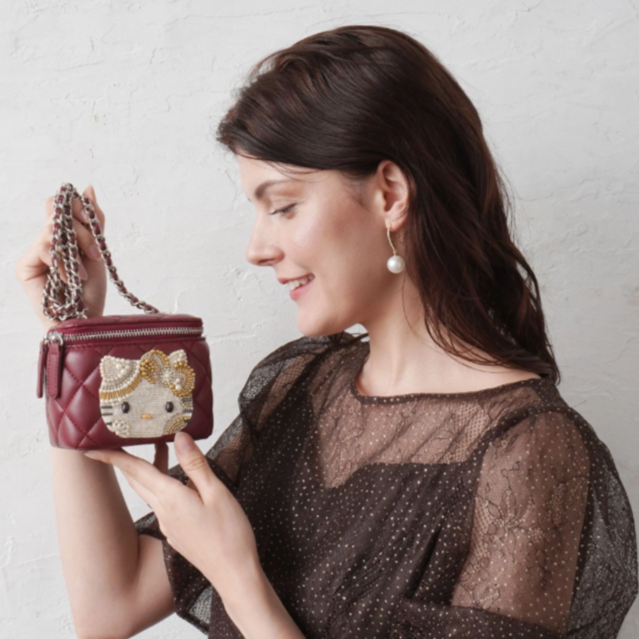 キルティングレザーに、繊細なビーズ刺繍で仕立てたハローキティが輝くミニバッグ。甘すぎず、華やかすぎず、大人の可愛さにちょうどいいバランス。クラシカルな佇まいに、遊び心をさりげなく添えたデザインは、大人の品格をまといながら、心にふわりと灯るときめきを運んでくれるはず。コーデに上品な抜け感と、心ときめくアクセントを。