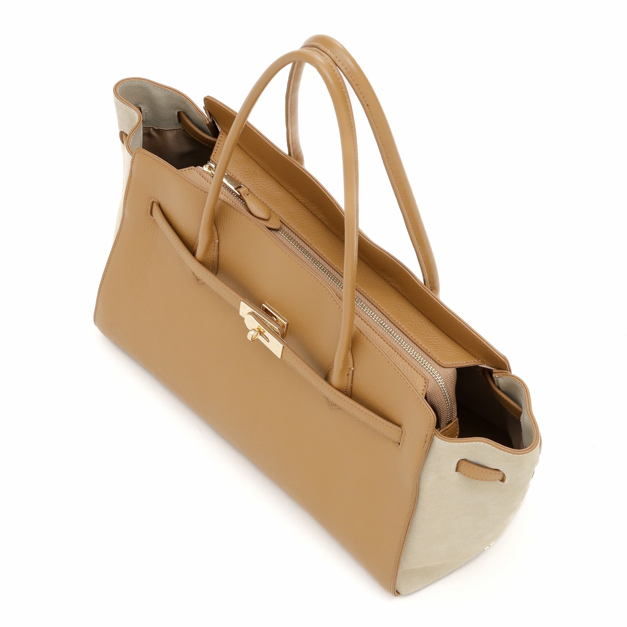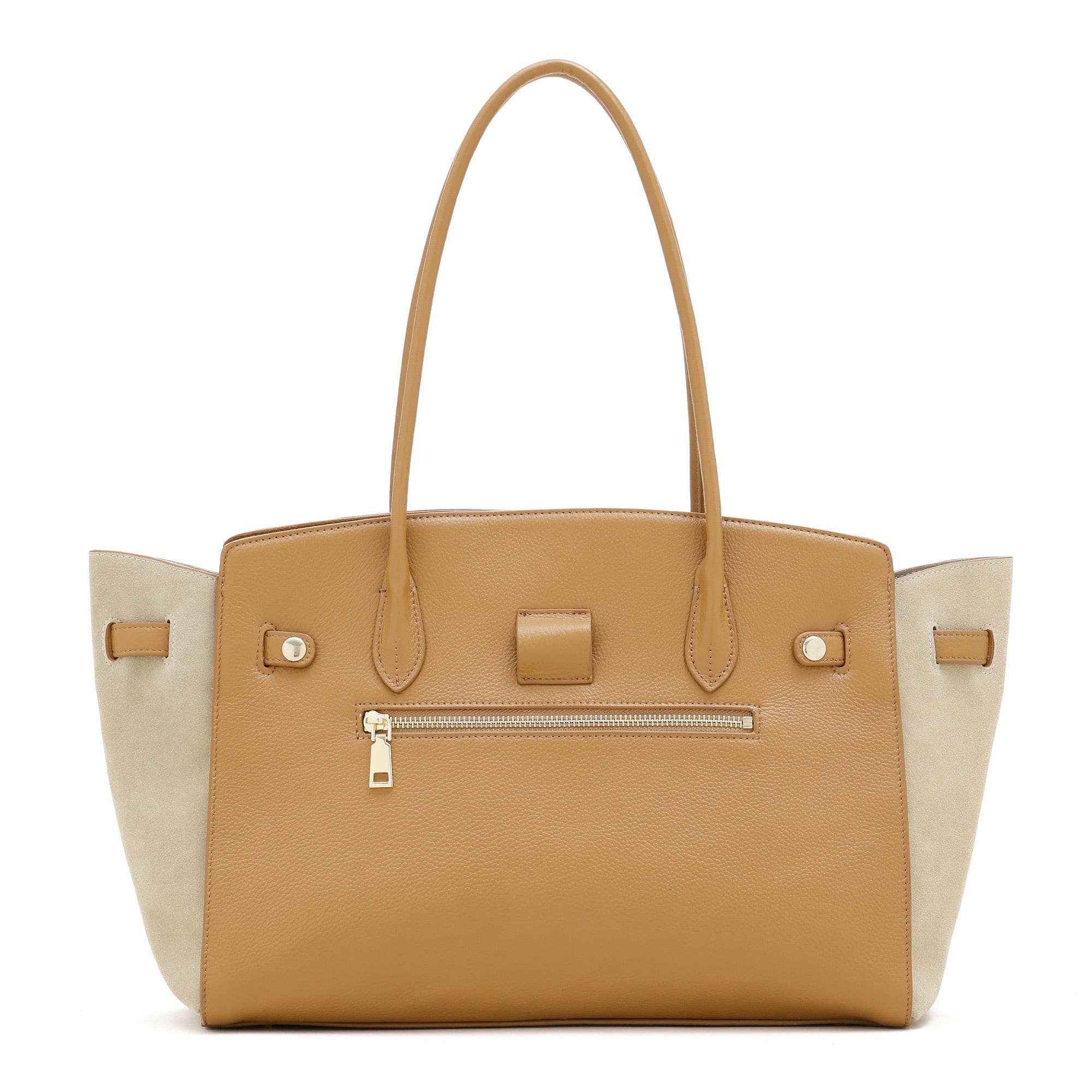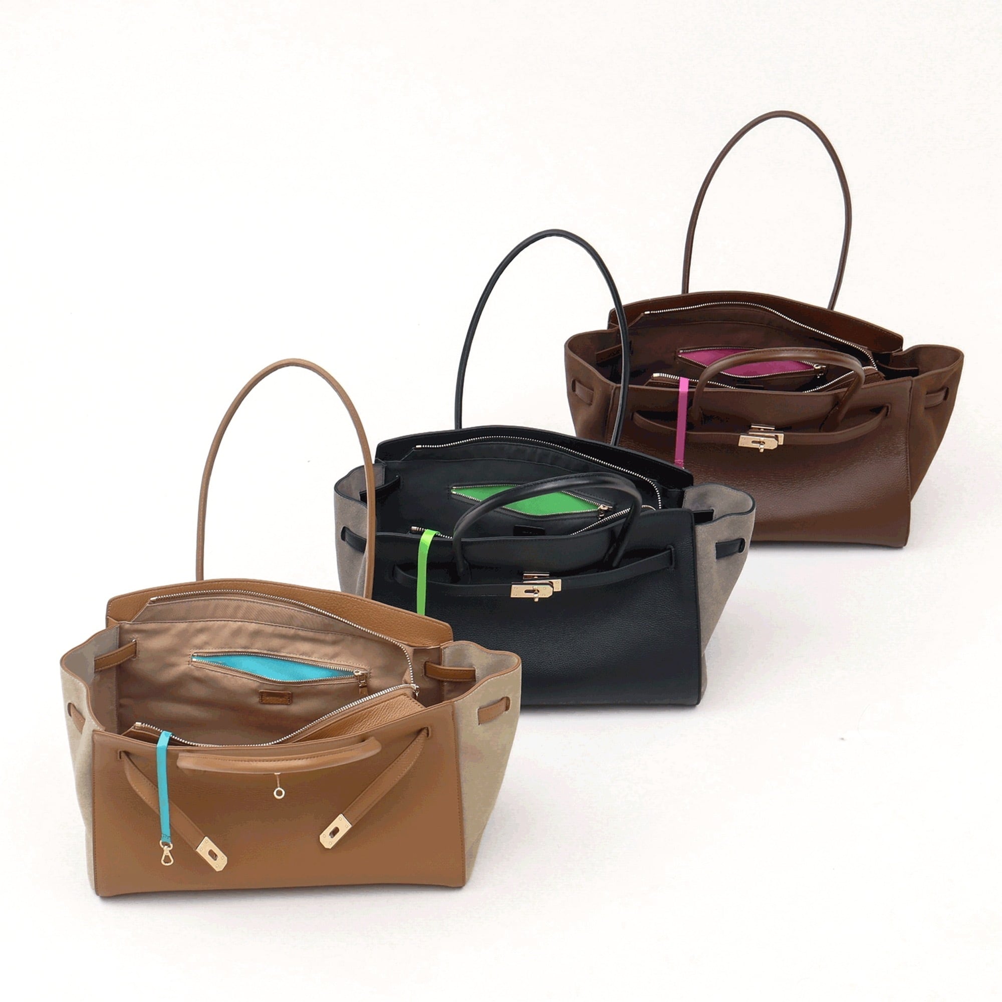 バッグ開口部はファスナー仕様で、安全性とともに見た目にも上品な印象に。