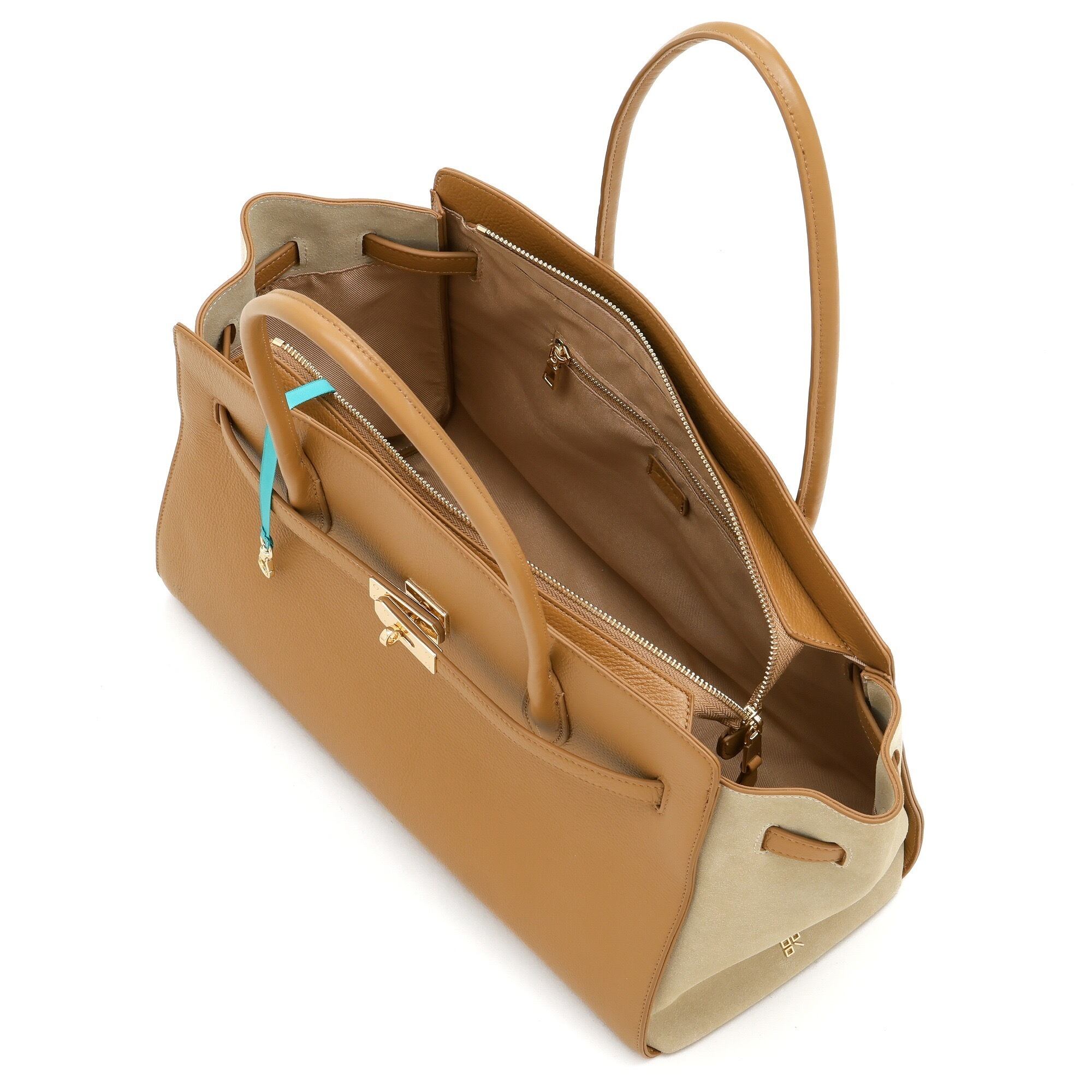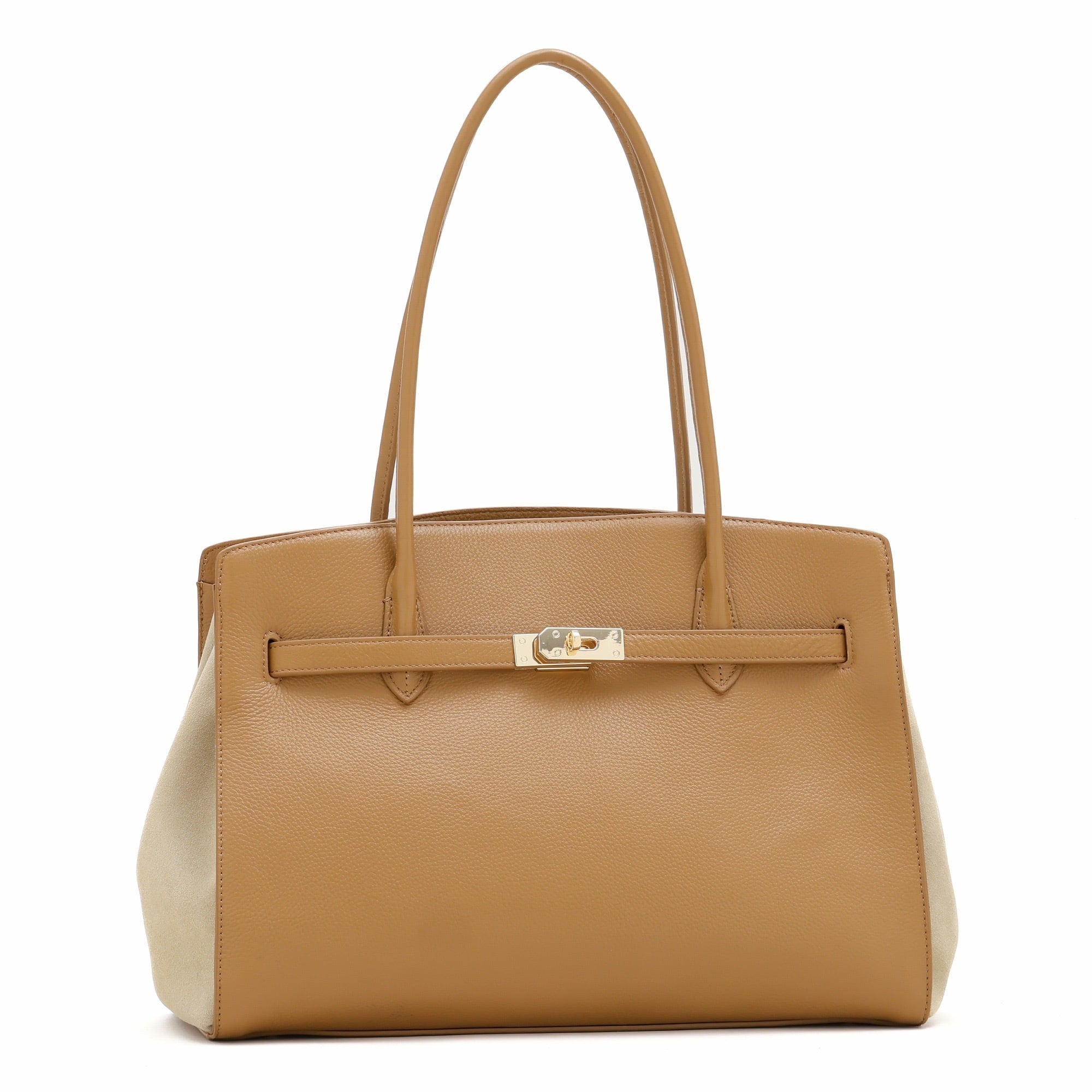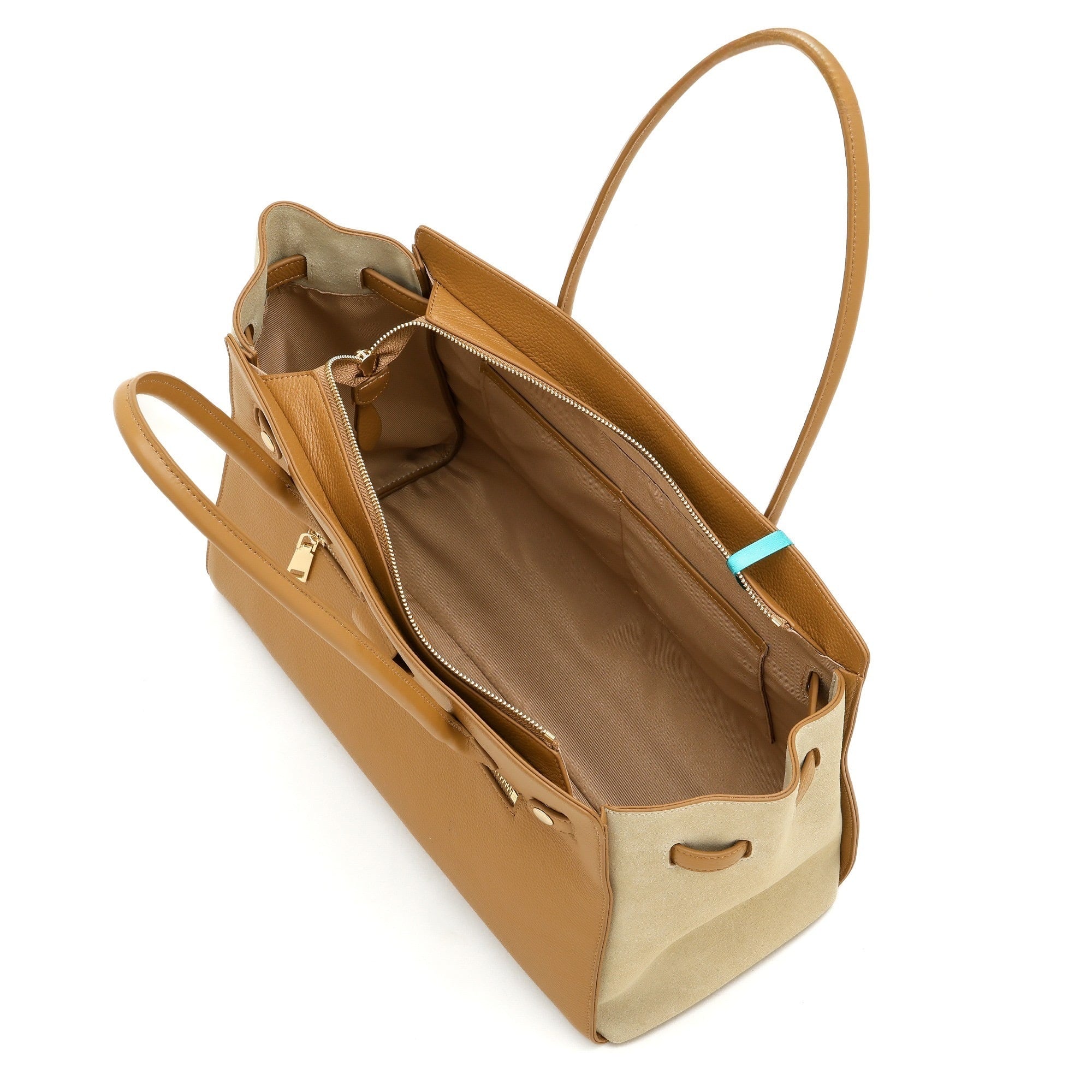 バッグ開口部はファスナー仕様で、安全性とともに見た目にも上品な印象に。