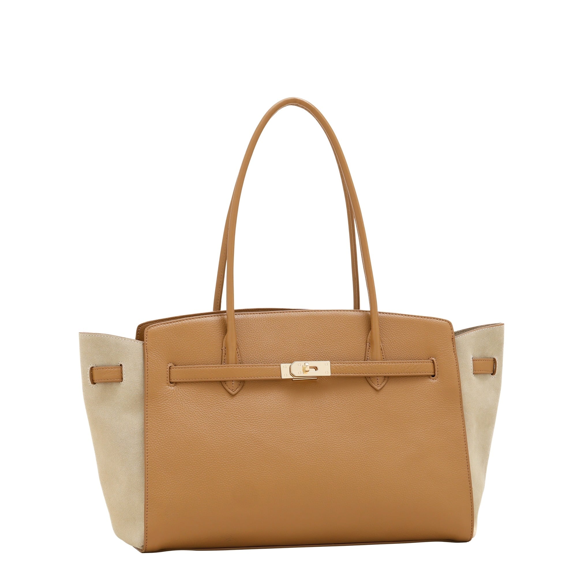 フロントのベルトデザインがポイント。控えめながらも存在感を放ち、大人の女性らしさを引き立てます。