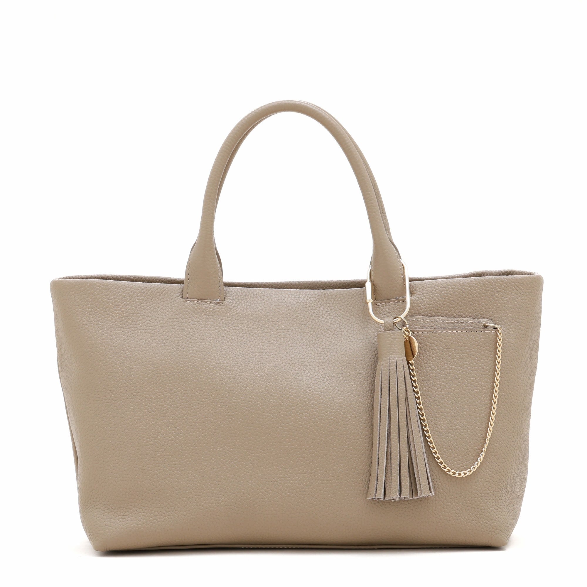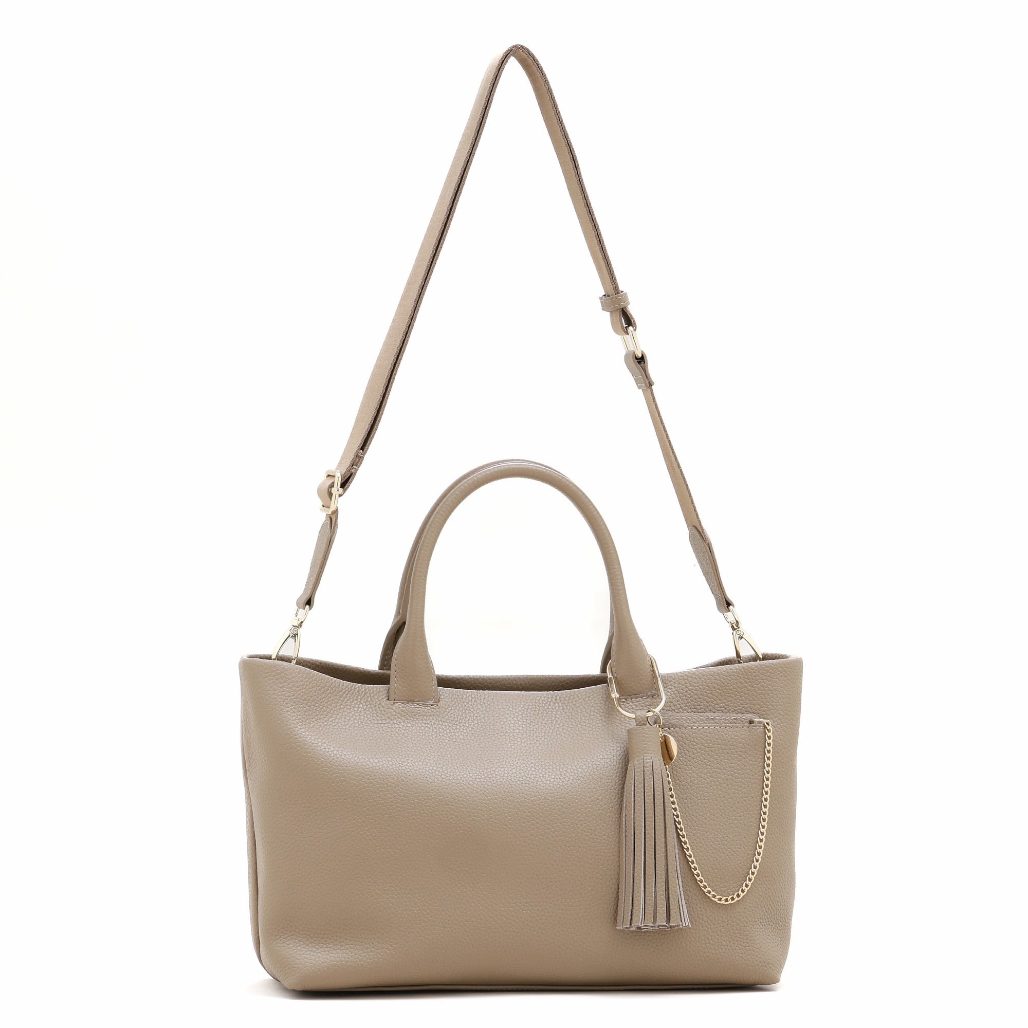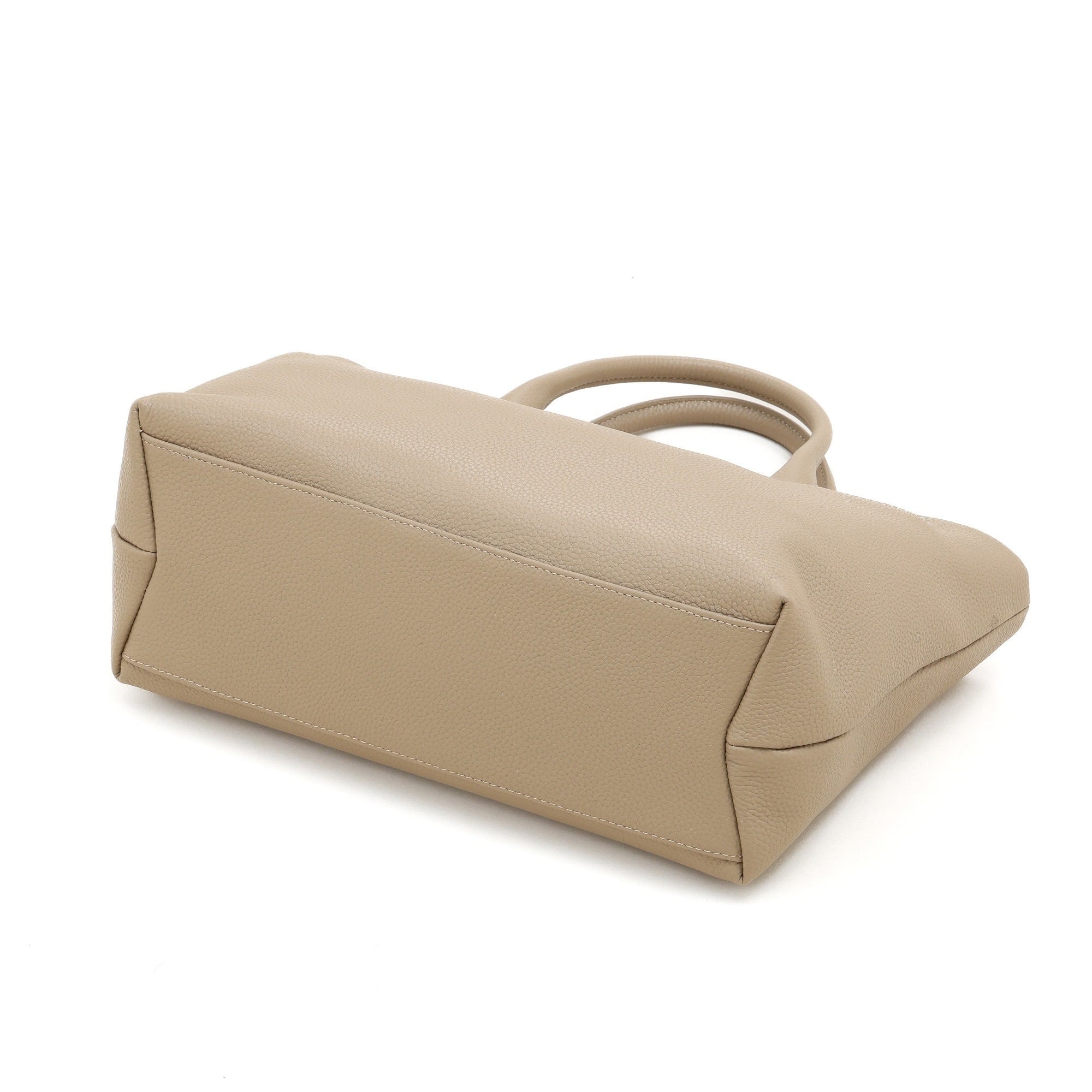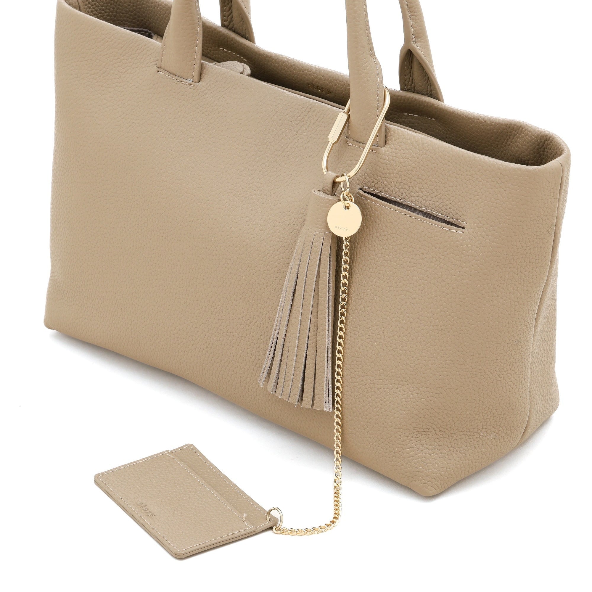 色々なシーンに馴染みやすいように本体は金具レスに仕上げ、ブランドチャームのみアクセントに加えました。