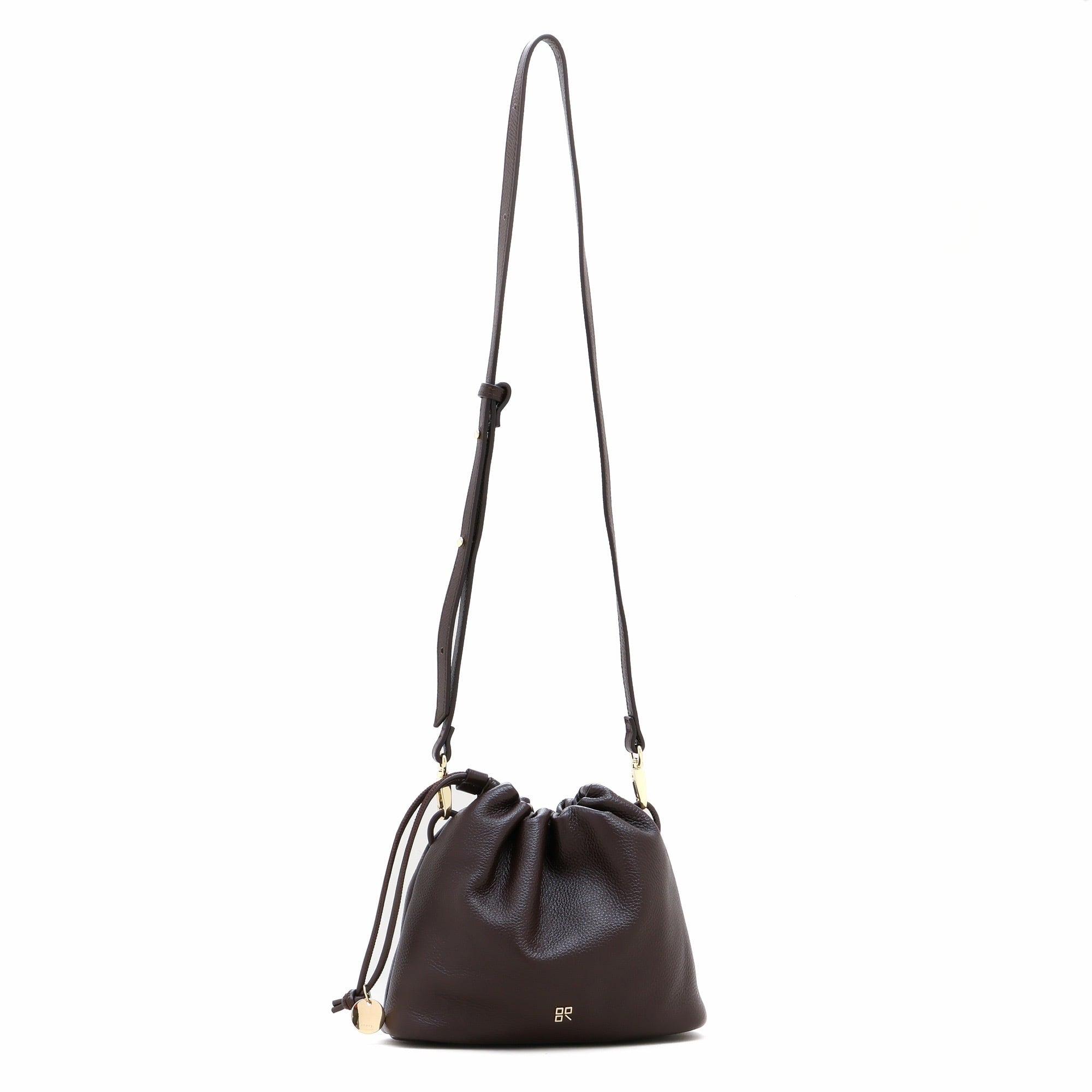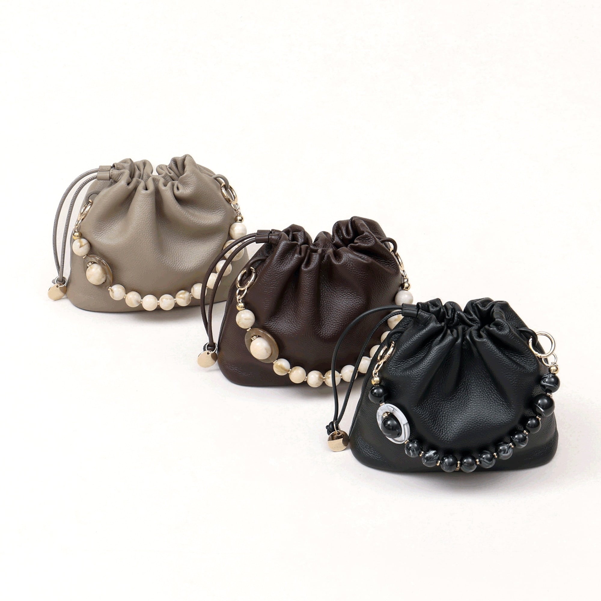 ミニマルながらも多彩なアレンジが楽しめる、巾着仕様のショルダーバッグ。