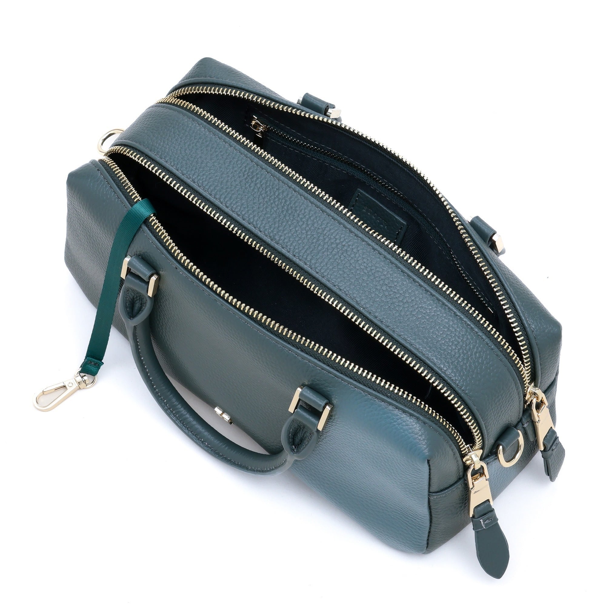 ベーシックなミニボストンながら2つのコンパートメントを備えたユニークなバッグ。