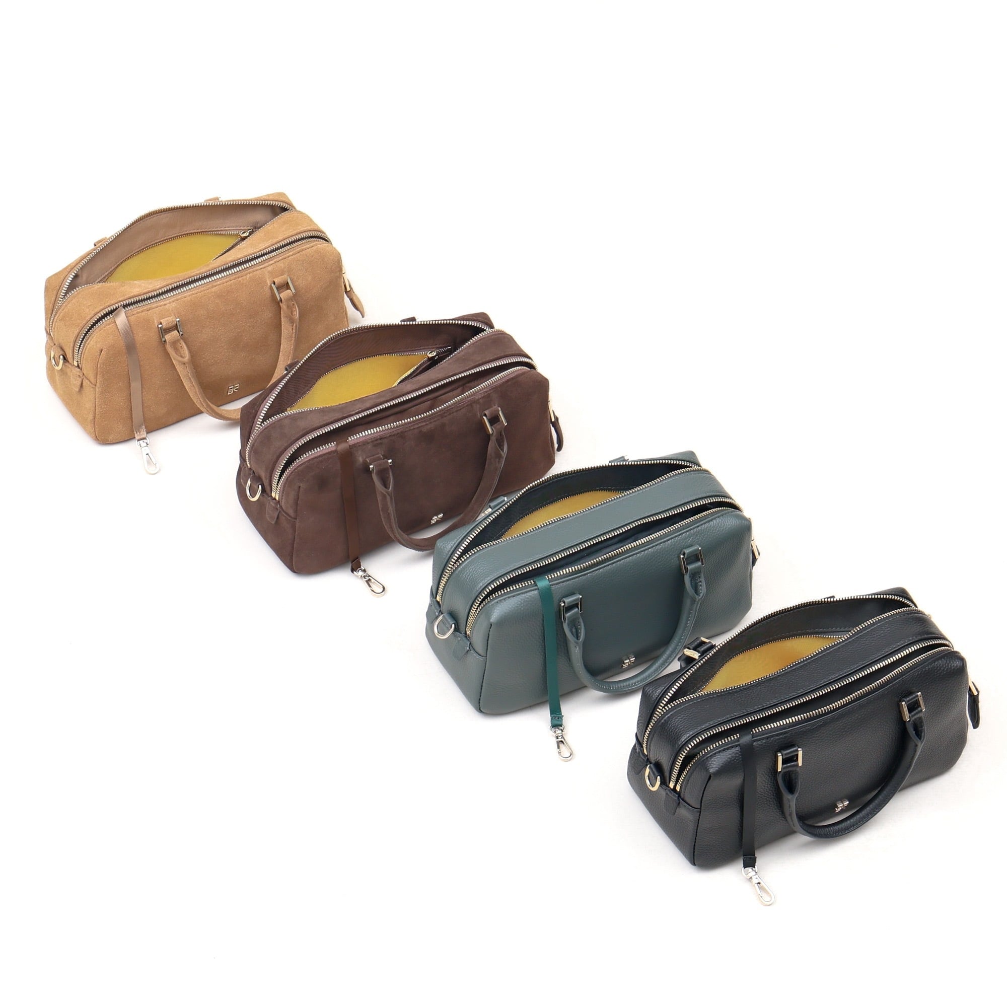 お色によってシュリンクレザーとしなやかなスウェードの2素材。ベーシックな色展開の中にもバリエーションを持たせています。