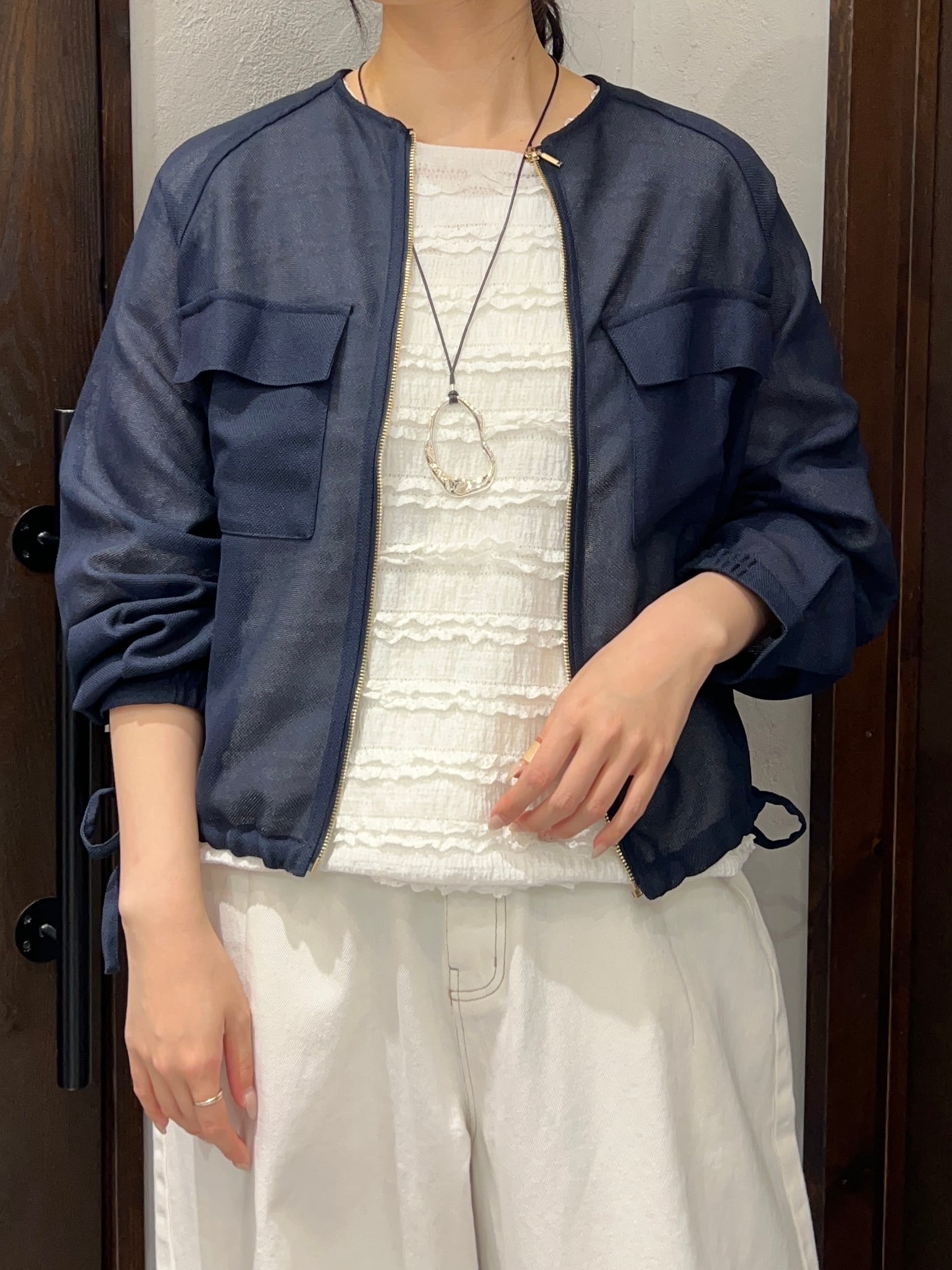 シンプルなTシャツやワンピースに合わせるだけで、洗練されたスタイルに。