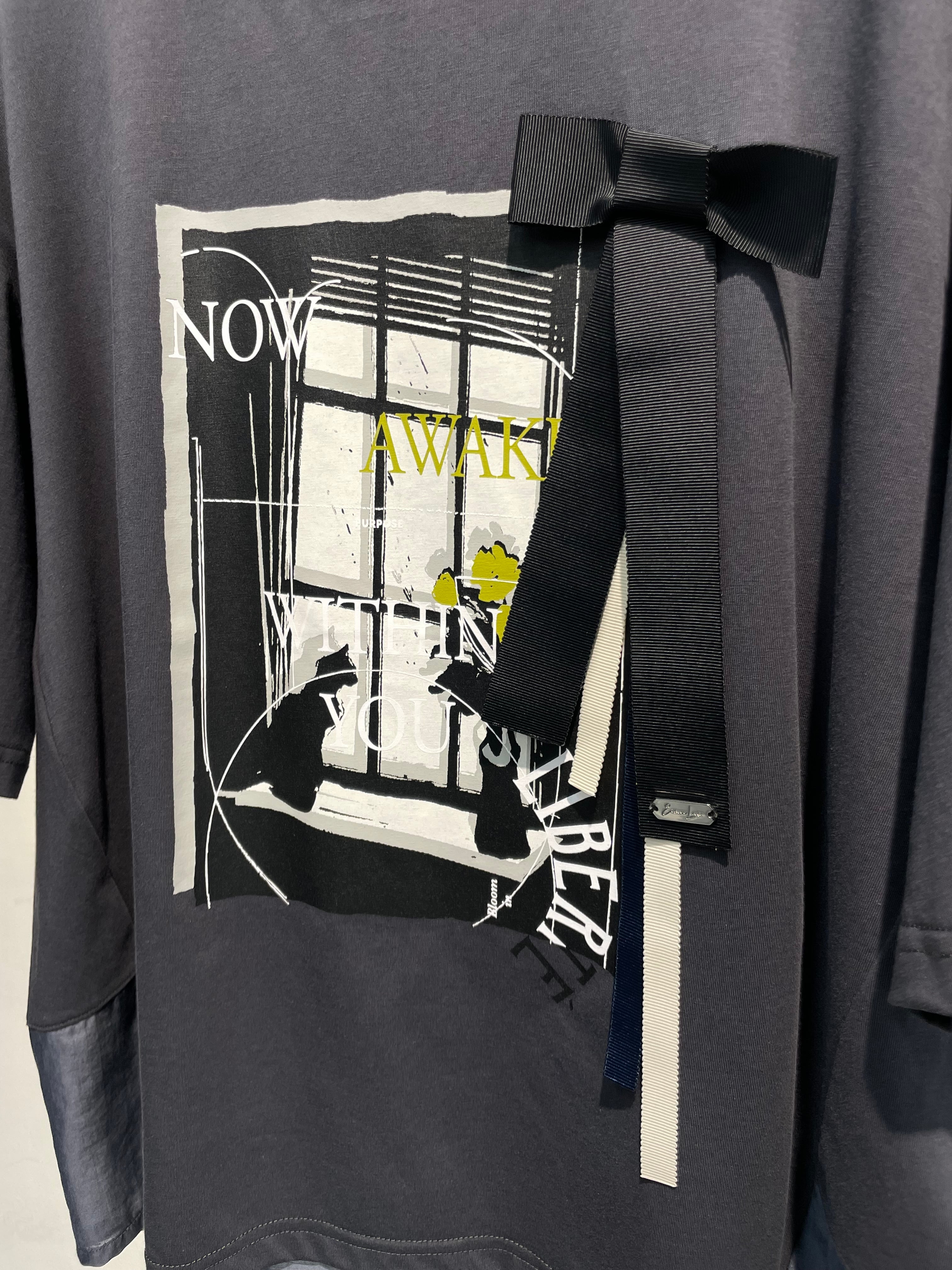 【予約商品】Eimee Law/モノクロアートプリントリボンモチーフTシャツ