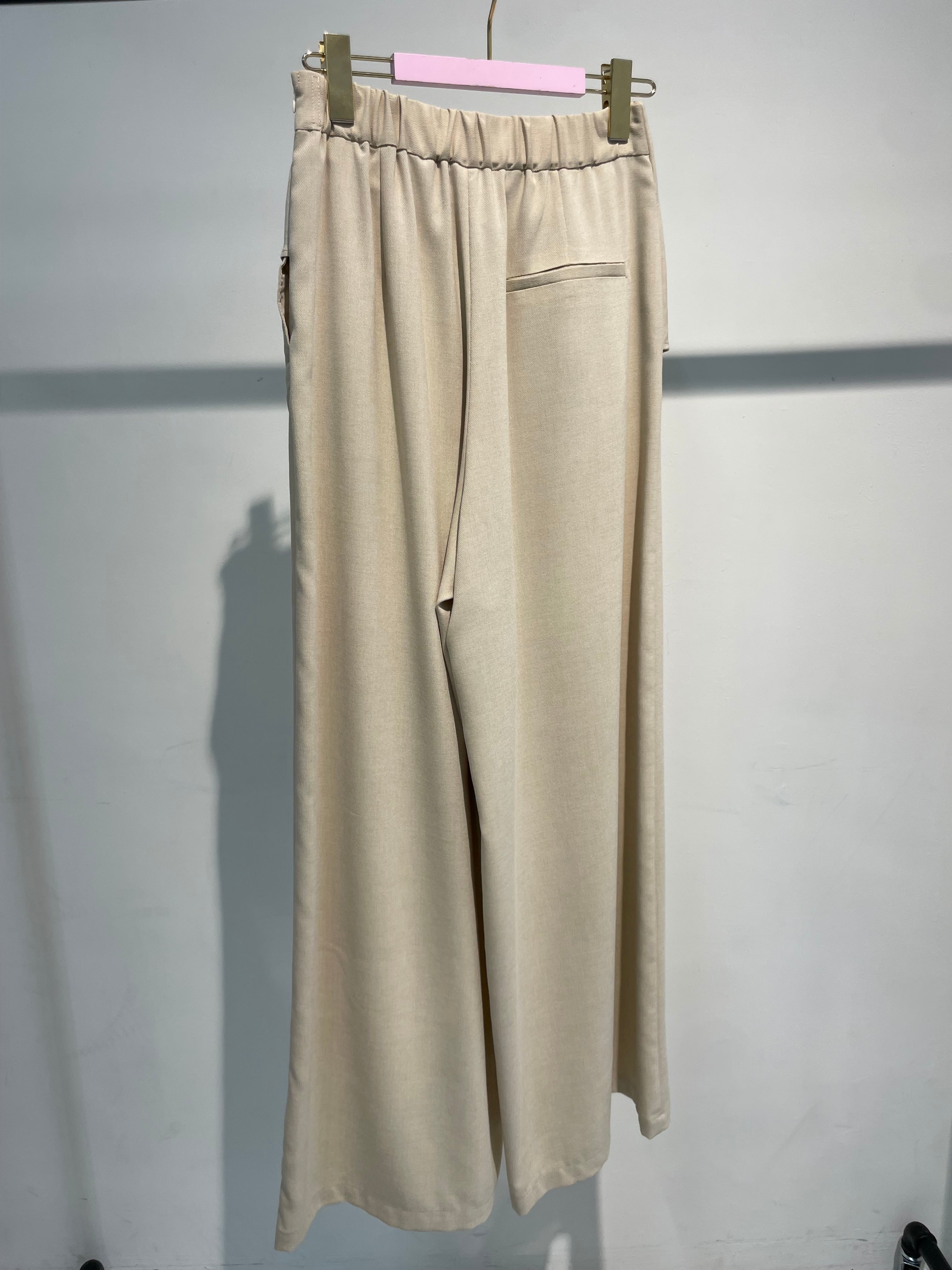 華やかな印象でスタイリングを格上げしてくれるスラックスパンツ。