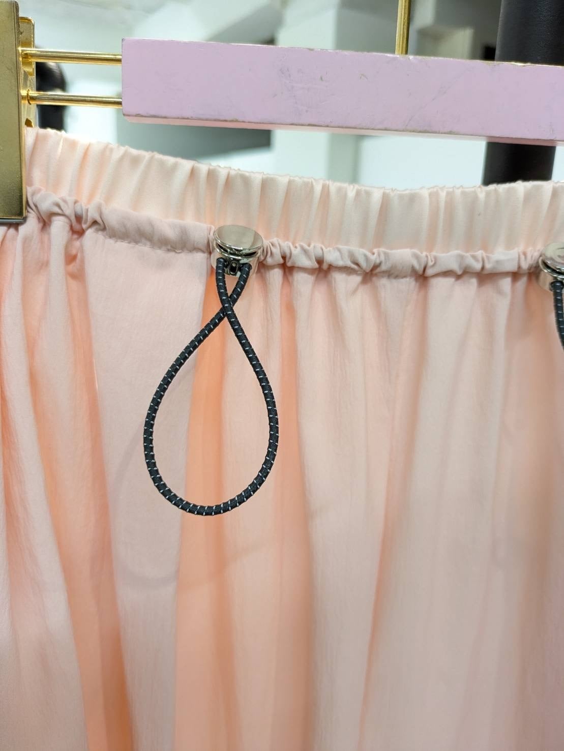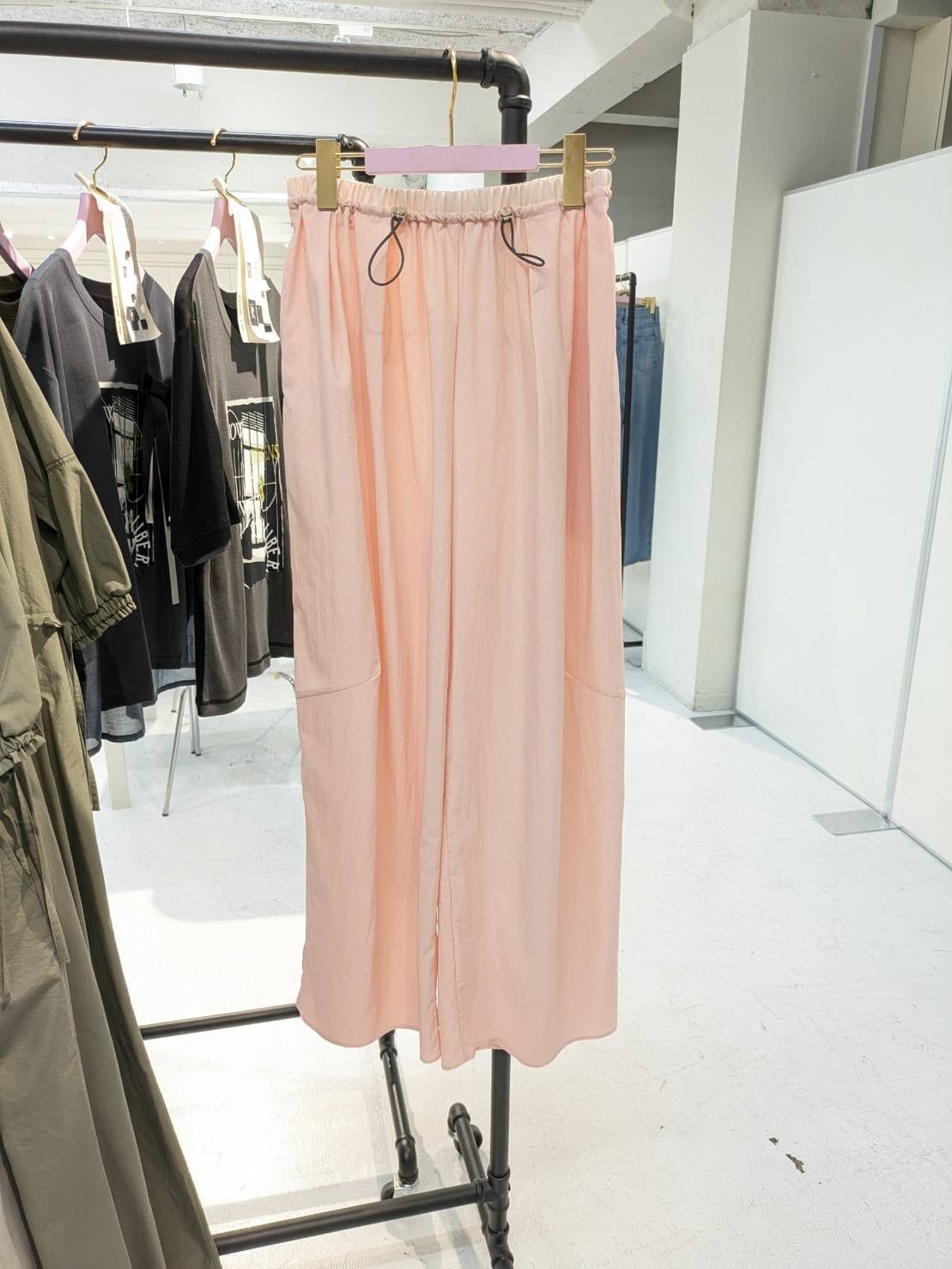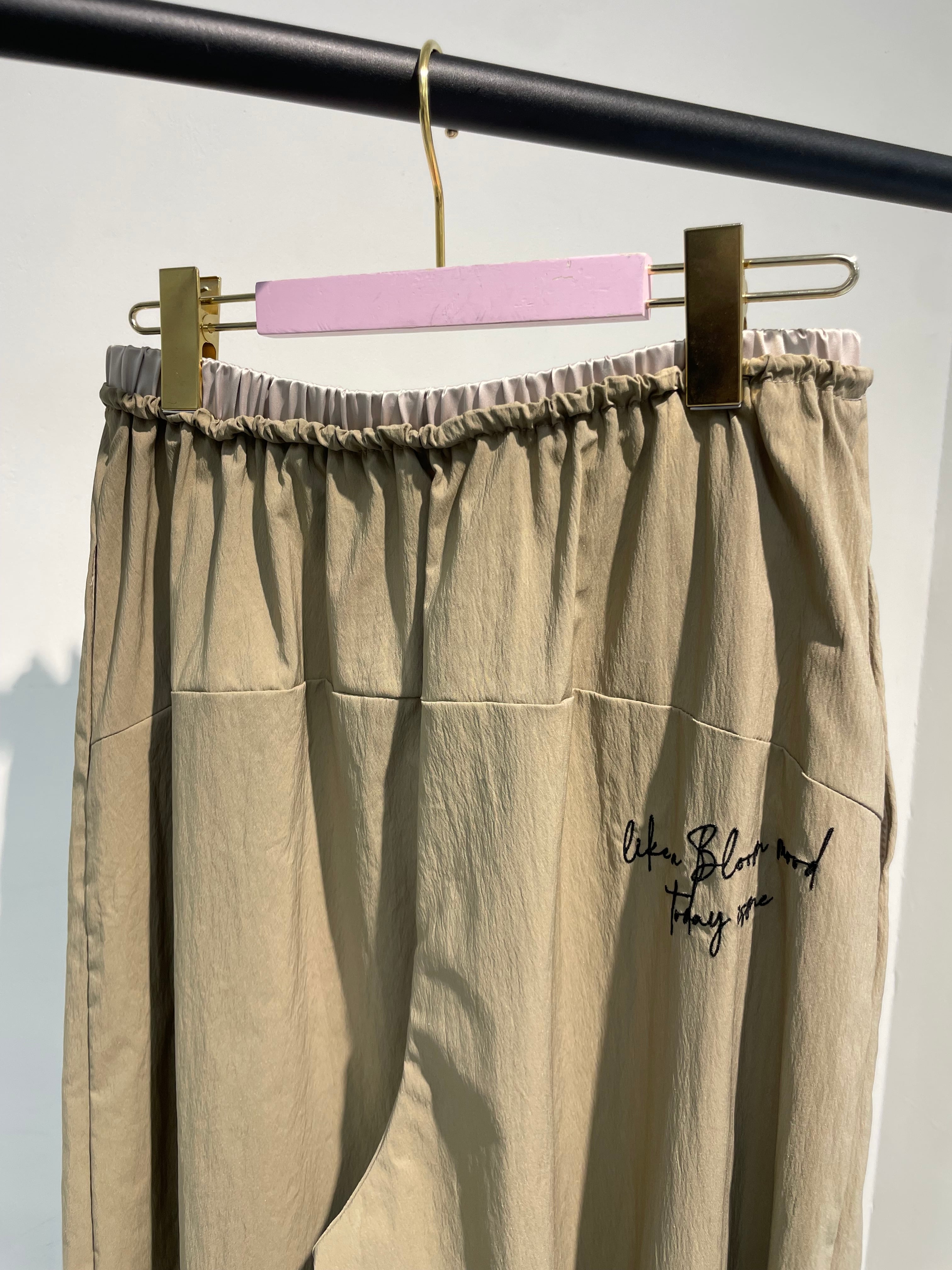 ウエストは総ゴム仕様に加え、ドロストで簡単にサイズ調整が可能。