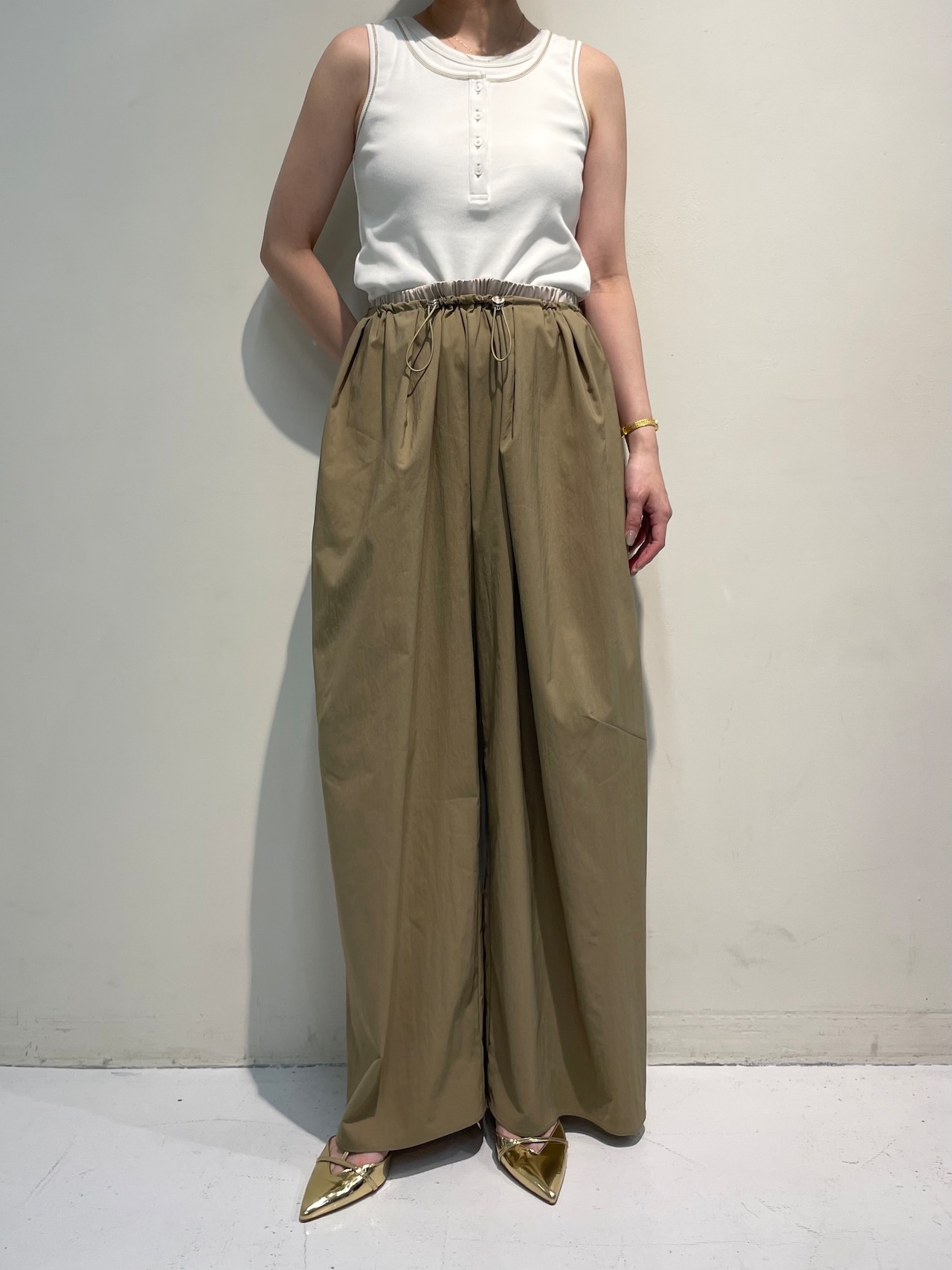 【予約商品】Eimee Law/ナイロンワッシャータックワイドパンツ