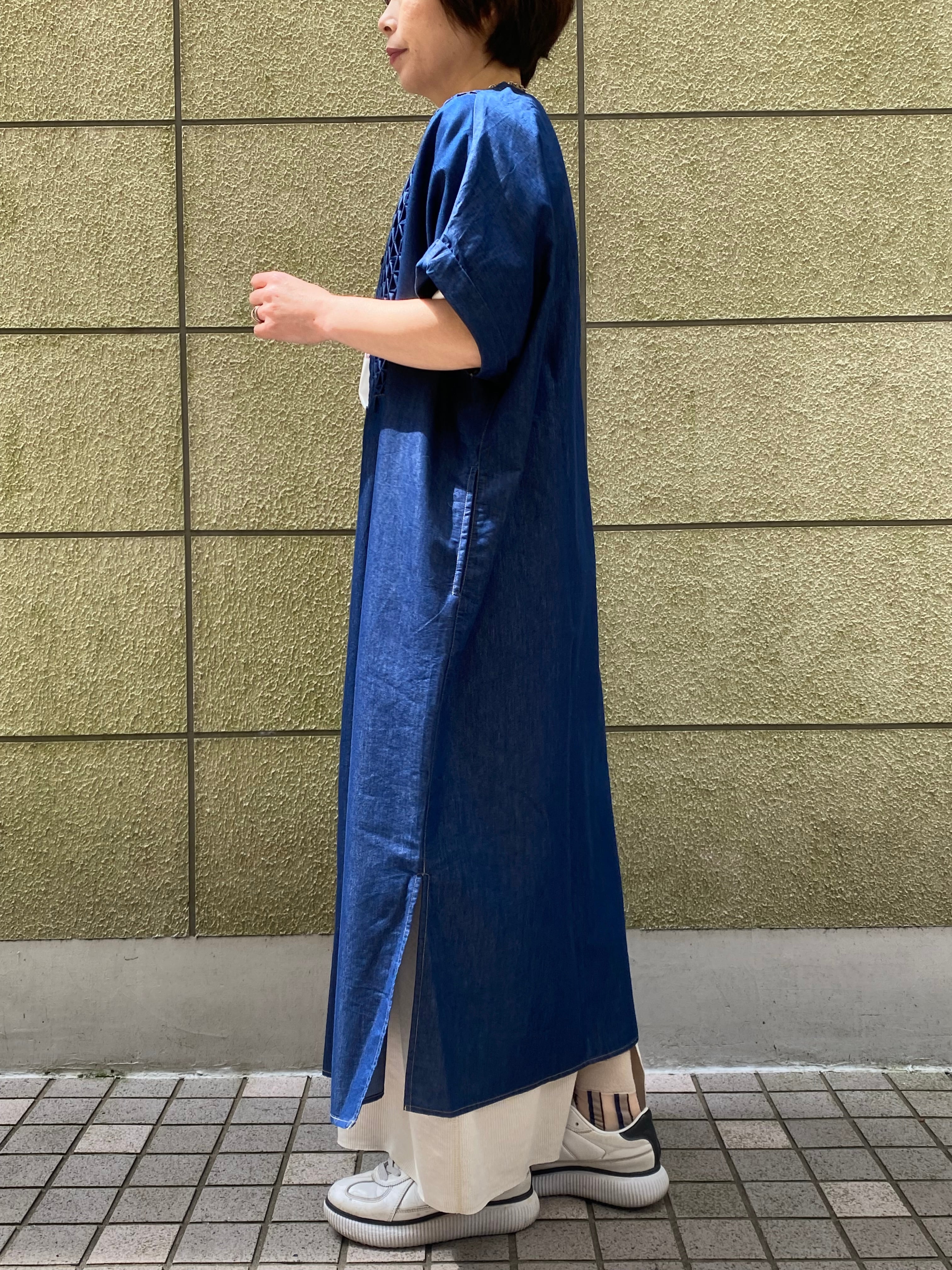 botanical/デニム スモッキング半袖ワンピース