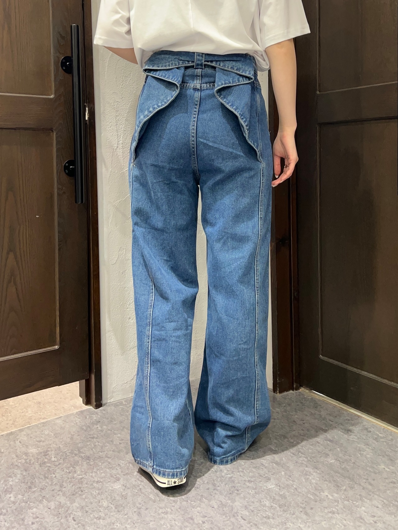 リボンデザインのバックスタイルが可愛いデニムパンツ