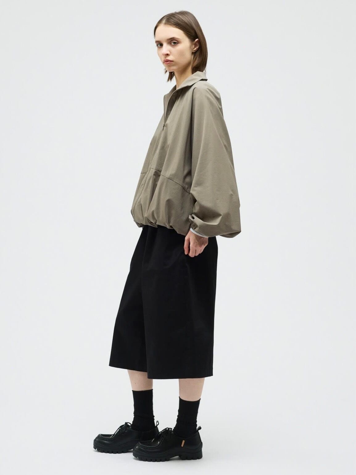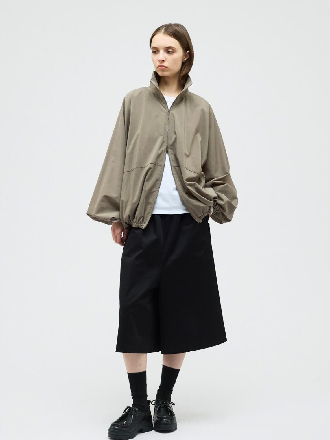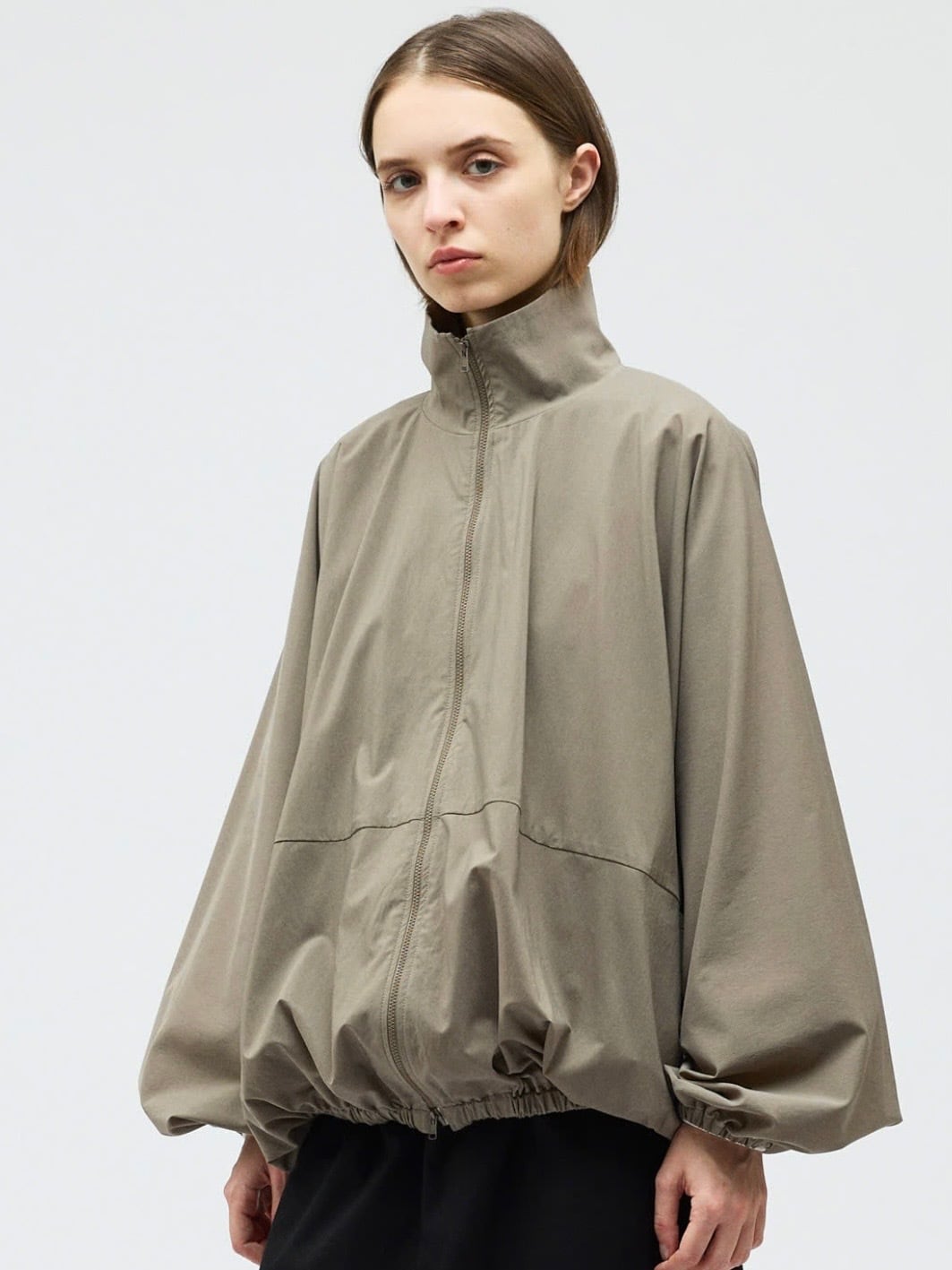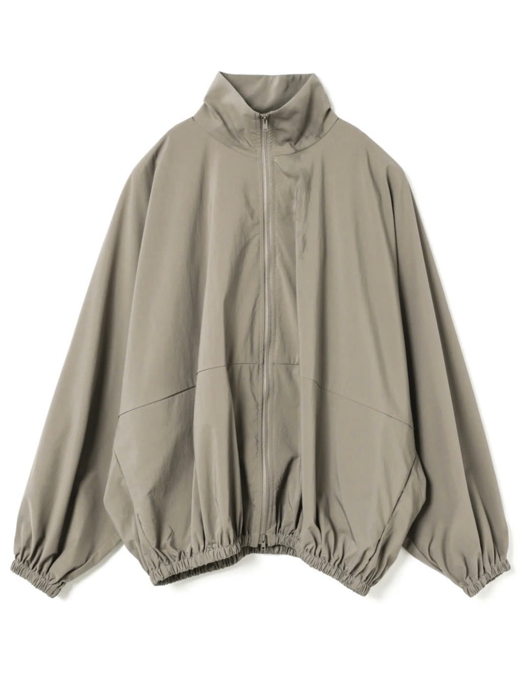 スタンドカラーとドルマンスリーブが印象的なスタンドブルゾン。ゆったりとしたフォルムが生まれるドルマンスリーブに、袖口と裾はゴム仕様で程よく丸みのあるシルエットを演出します。動きやすさがありながら、着るだけでこなれたバランスに仕上がる一着です。素材には撥水性のある生地を使用し、軽い雨や風を防いでくれる機能面も魅力。デザイン性と実用性を兼ね備えた、悪天候時にも活躍するストームジャケットタイプのブルゾンです。フロントはダブルジップ仕様。ファスナーには軽量で滑りの良いビスロンファスナーを採用。金属ファスナーに比べて軽く、サビに強いのが特徴。カジュアルな雰囲気にもマッチし、スポーティーな印象をさりげなくプラスします。デイリーからアクティブなシーンまで対応できる、機能性とデザイン性を兼ね備えた一枚です。