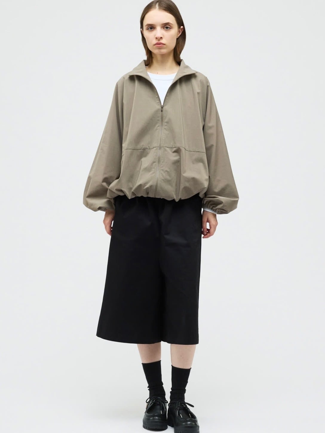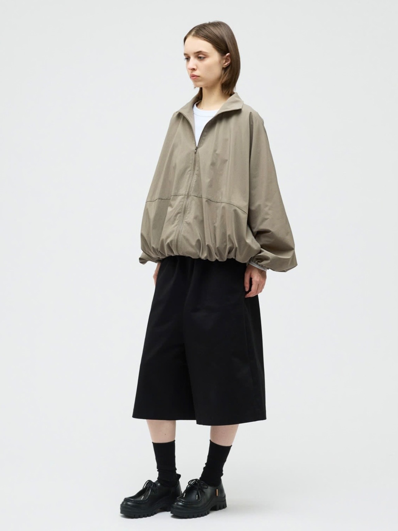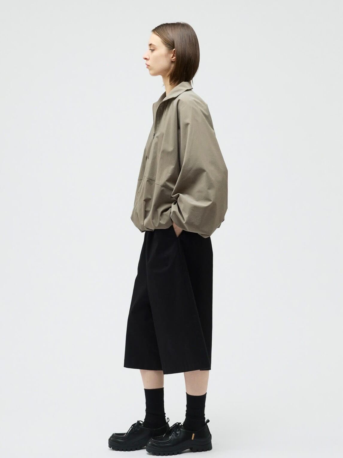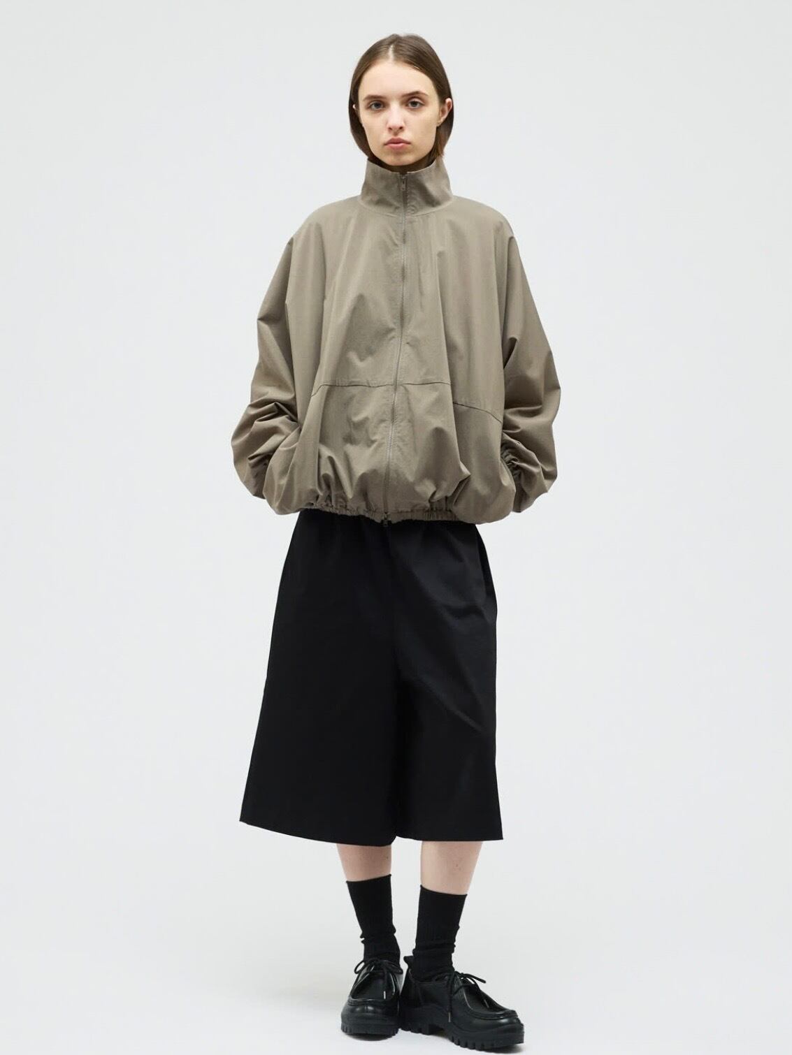スタンドカラーとドルマンスリーブが印象的なスタンドブルゾン。ゆったりとしたフォルムが生まれるドルマンスリーブに、袖口と裾はゴム仕様で程よく丸みのあるシルエットを演出します。動きやすさがありながら、着るだけでこなれたバランスに仕上がる一着です。素材には撥水性のある生地を使用し、軽い雨や風を防いでくれる機能面も魅力。デザイン性と実用性を兼ね備えた、悪天候時にも活躍するストームジャケットタイプのブルゾンです。フロントはダブルジップ仕様。ファスナーには軽量で滑りの良いビスロンファスナーを採用。金属ファスナーに比べて軽く、サビに強いのが特徴。カジュアルな雰囲気にもマッチし、スポーティーな印象をさりげなくプラスします。デイリーからアクティブなシーンまで対応できる、機能性とデザイン性を兼ね備えた一枚です。