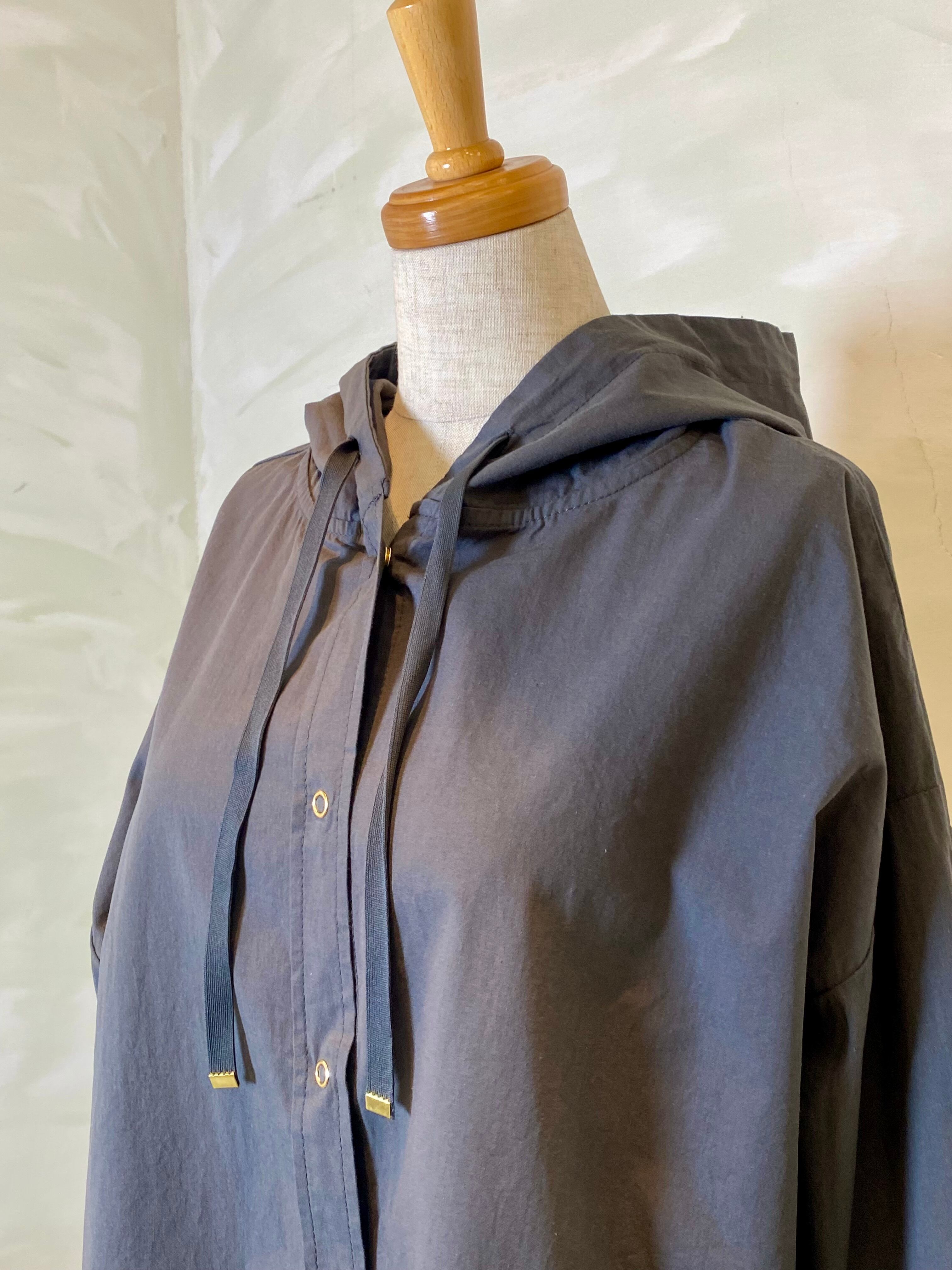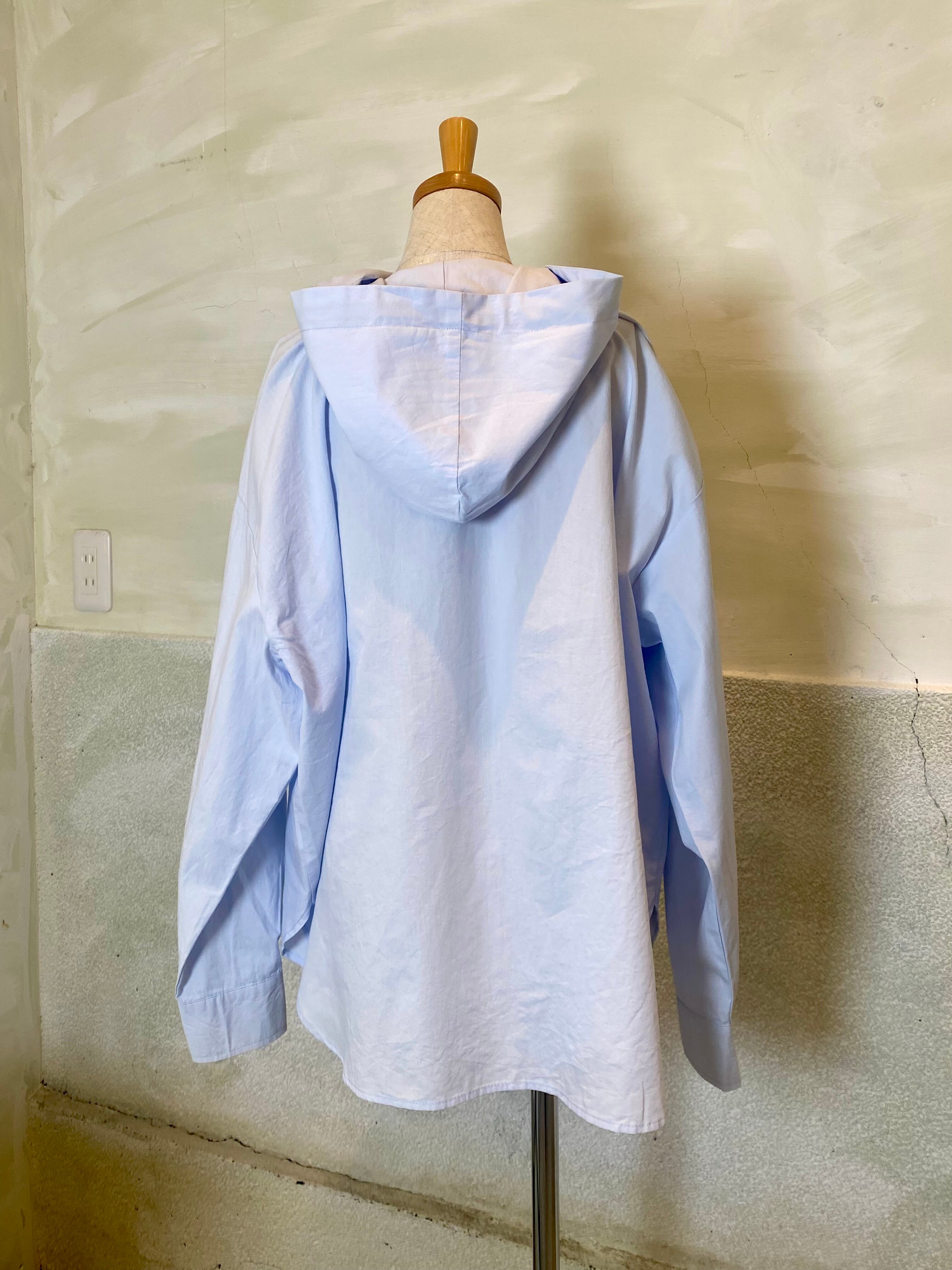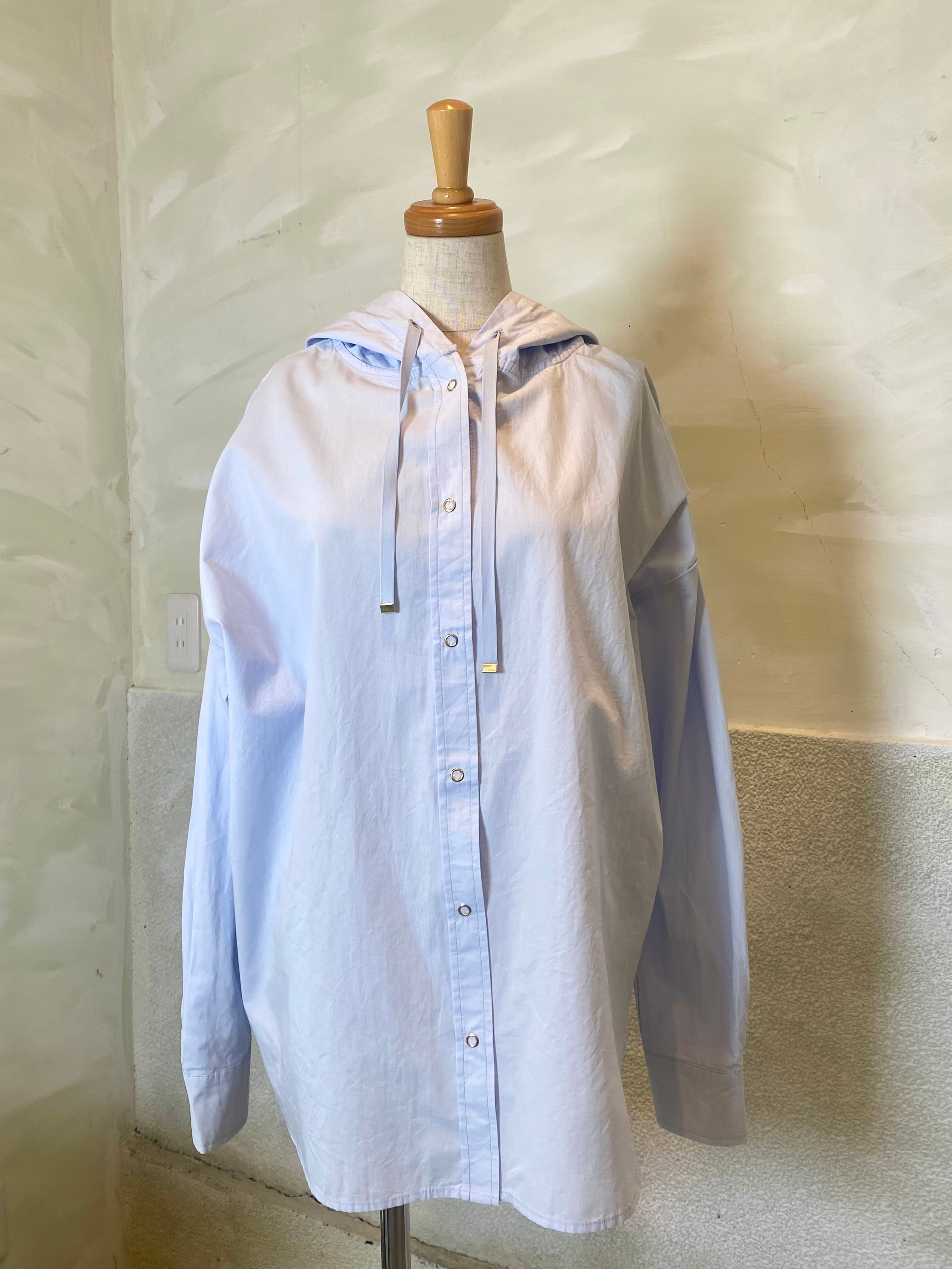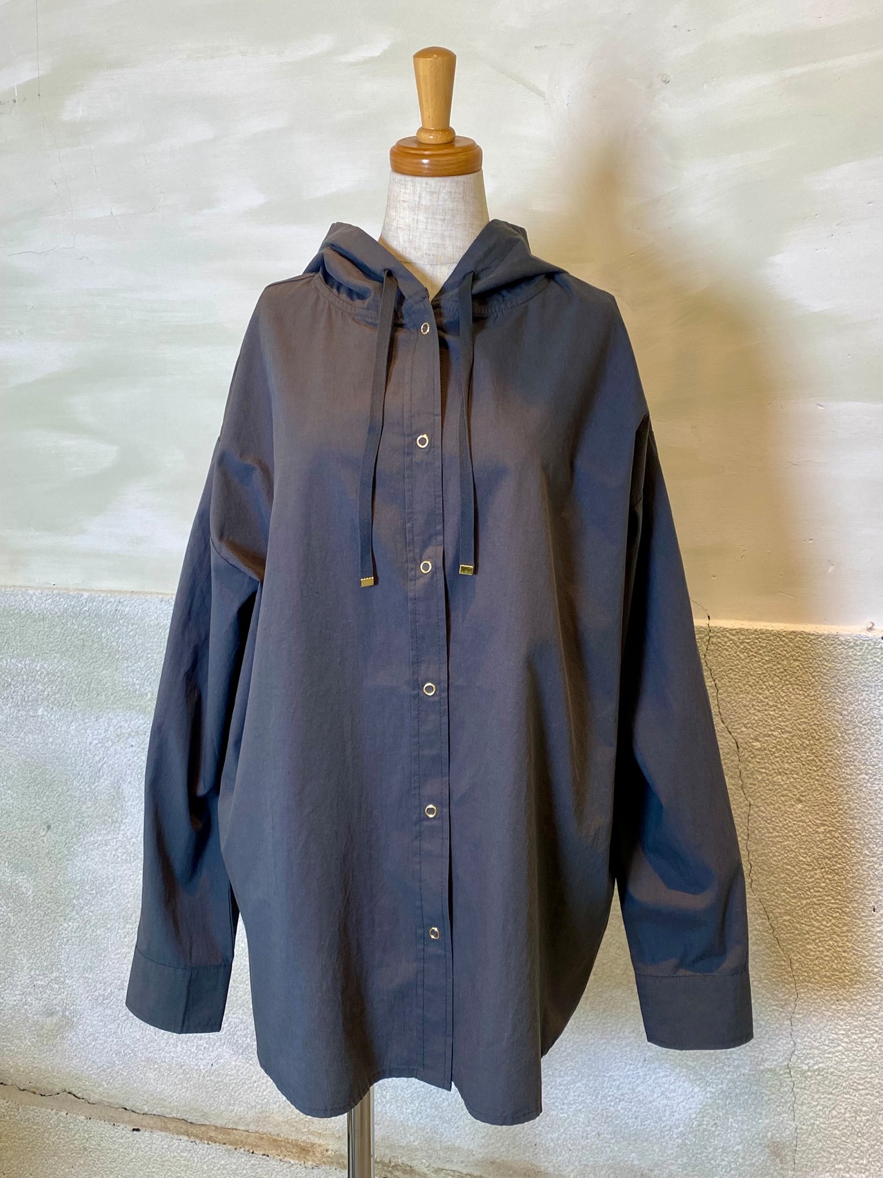 ハリ感のある綿100%ブロード生地を使用した、フード付きシャツ。