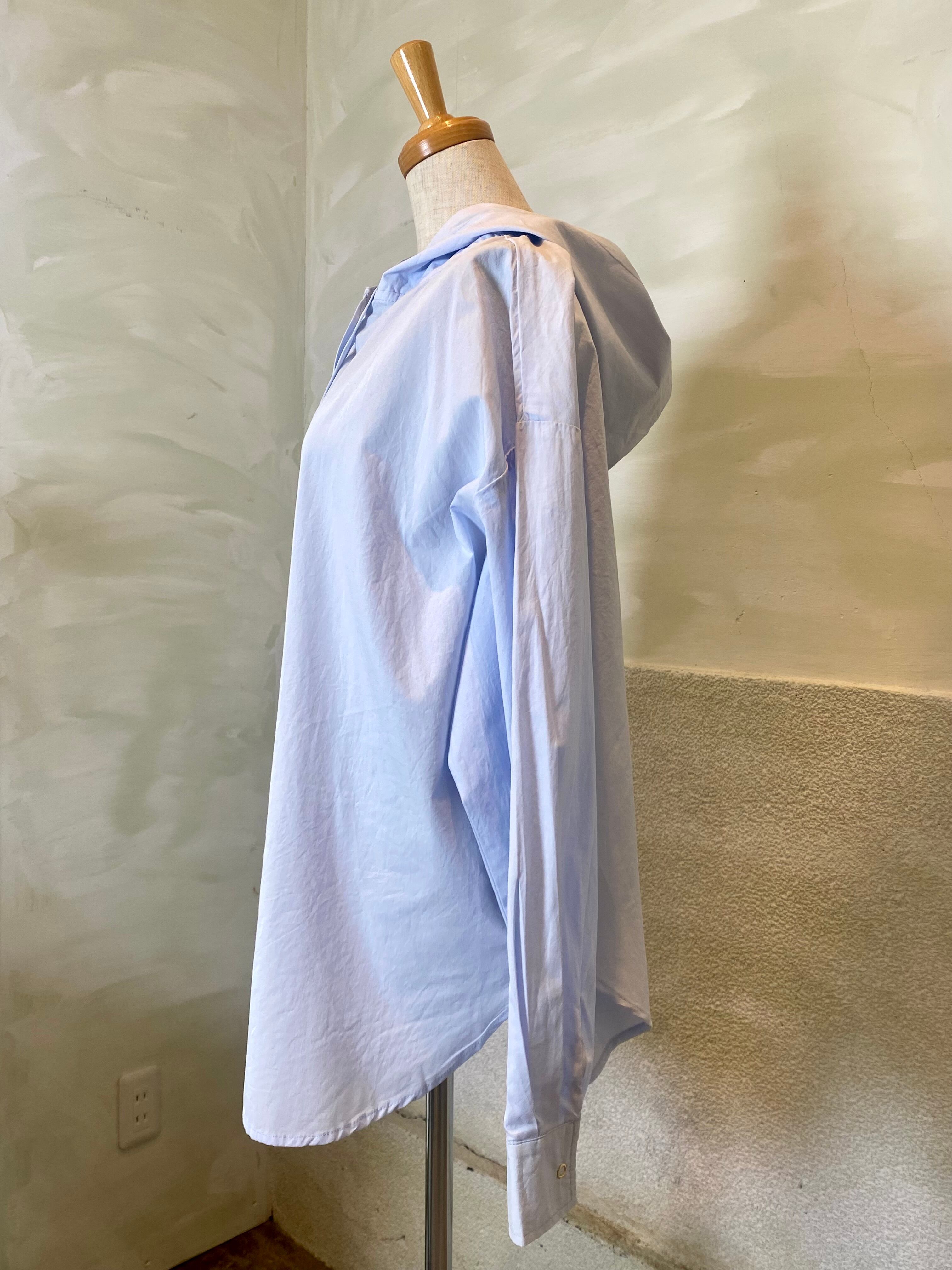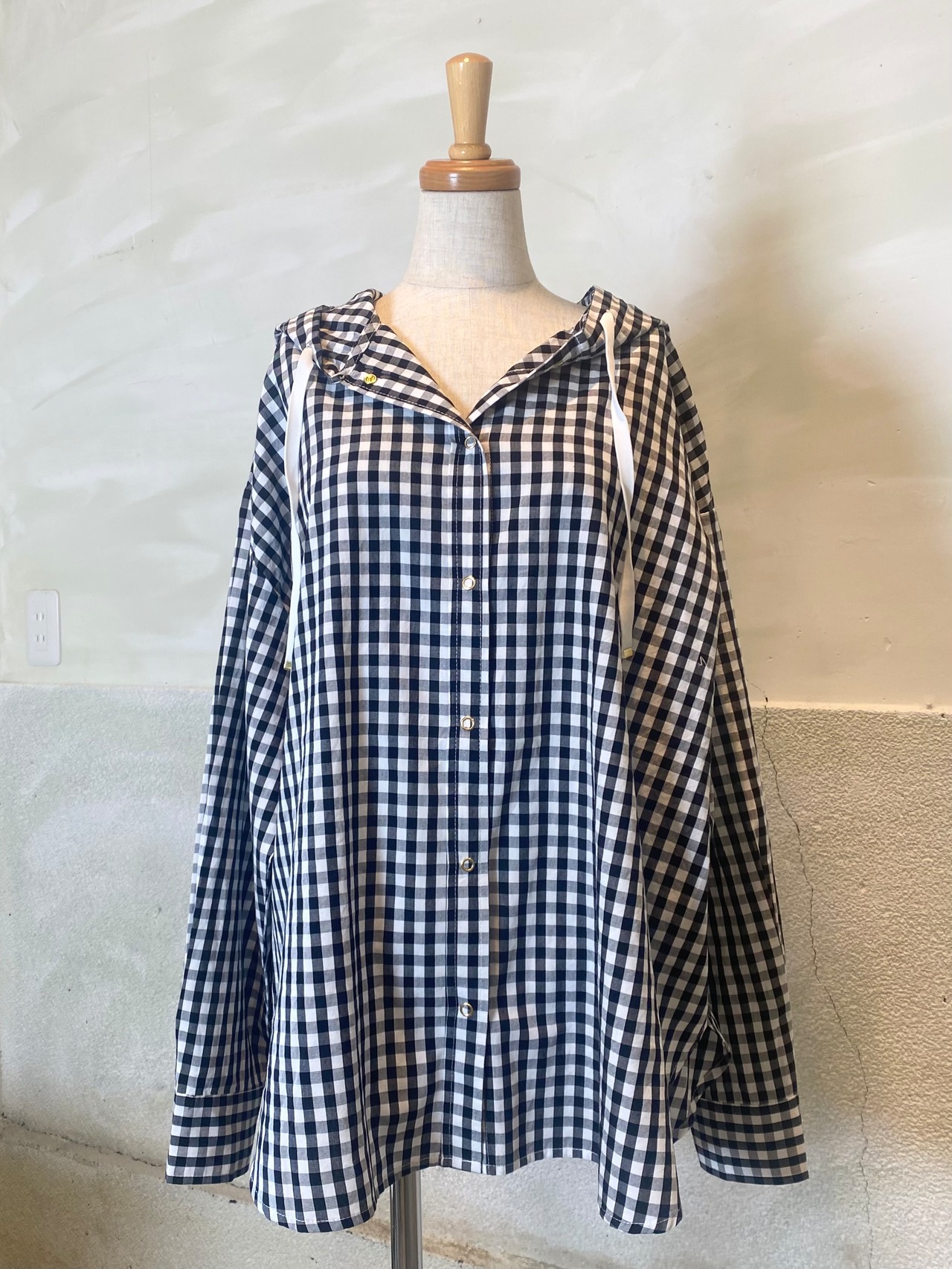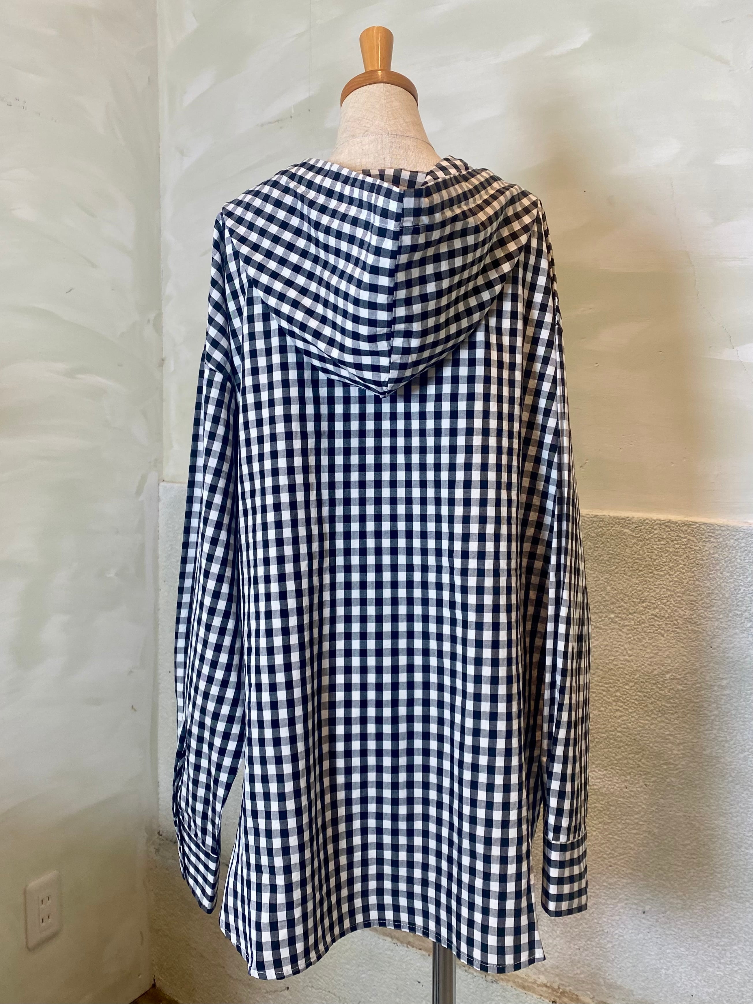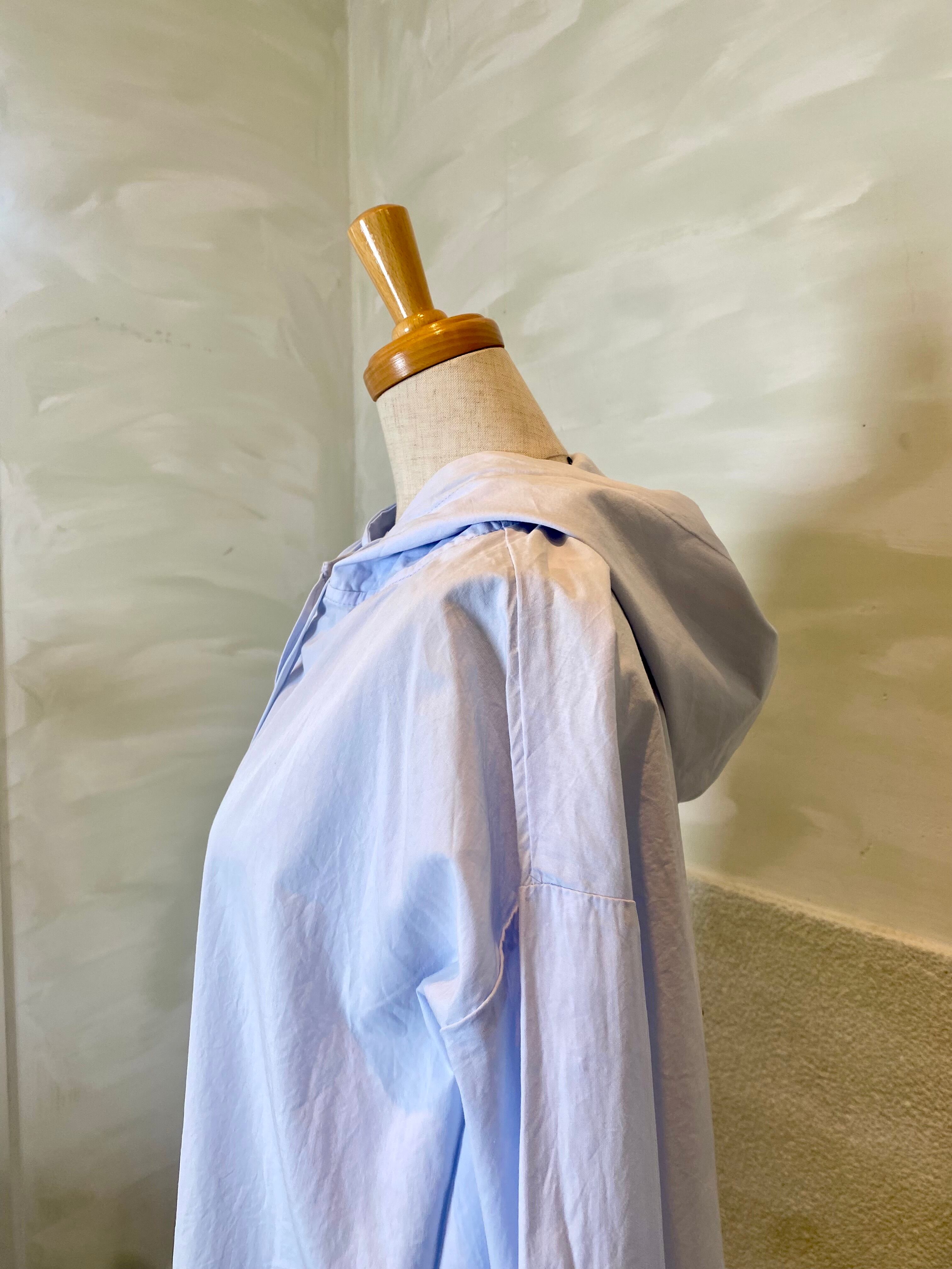 ハリ感のある綿100%ブロード生地を使用した、フード付きシャツ。