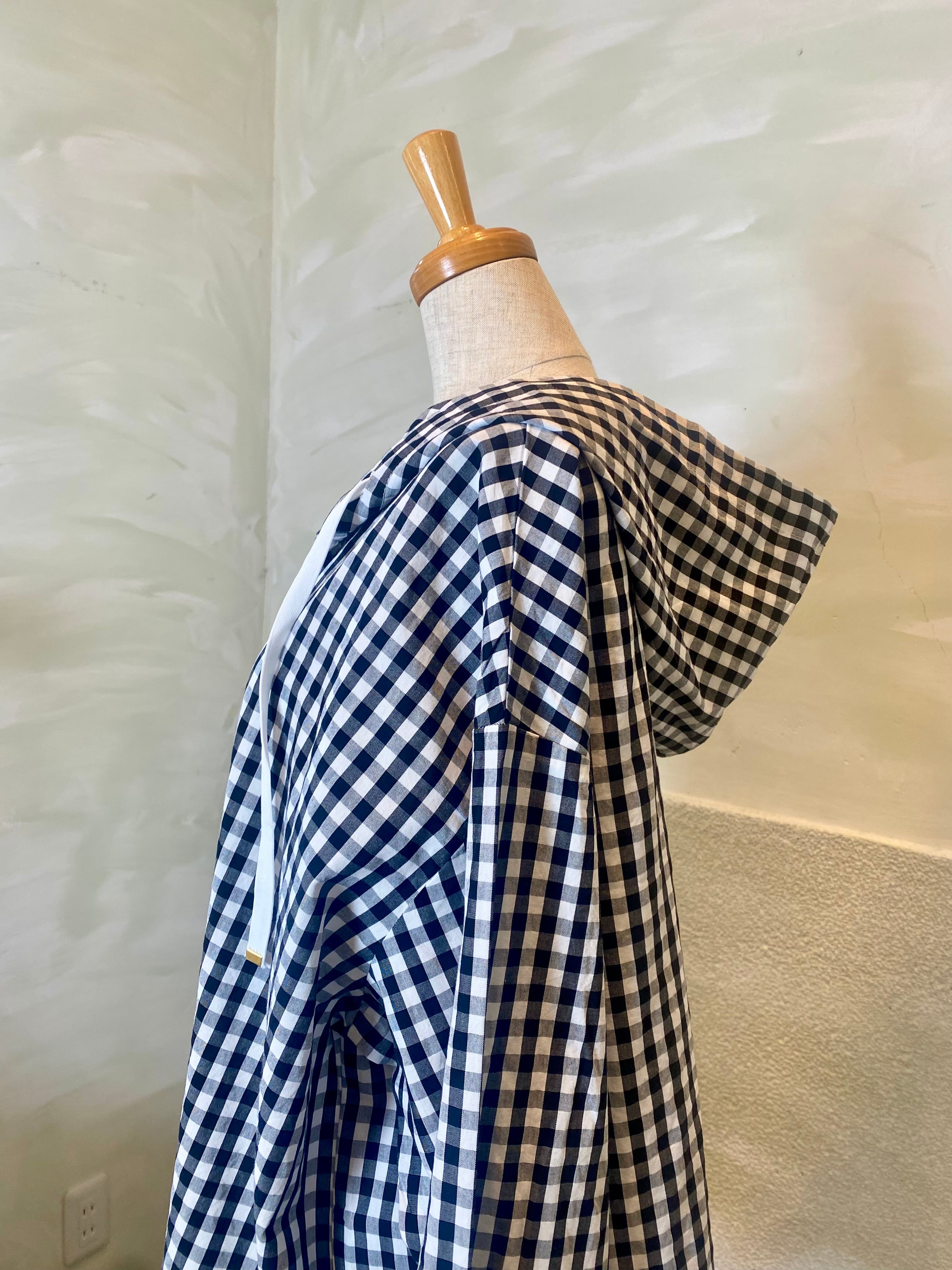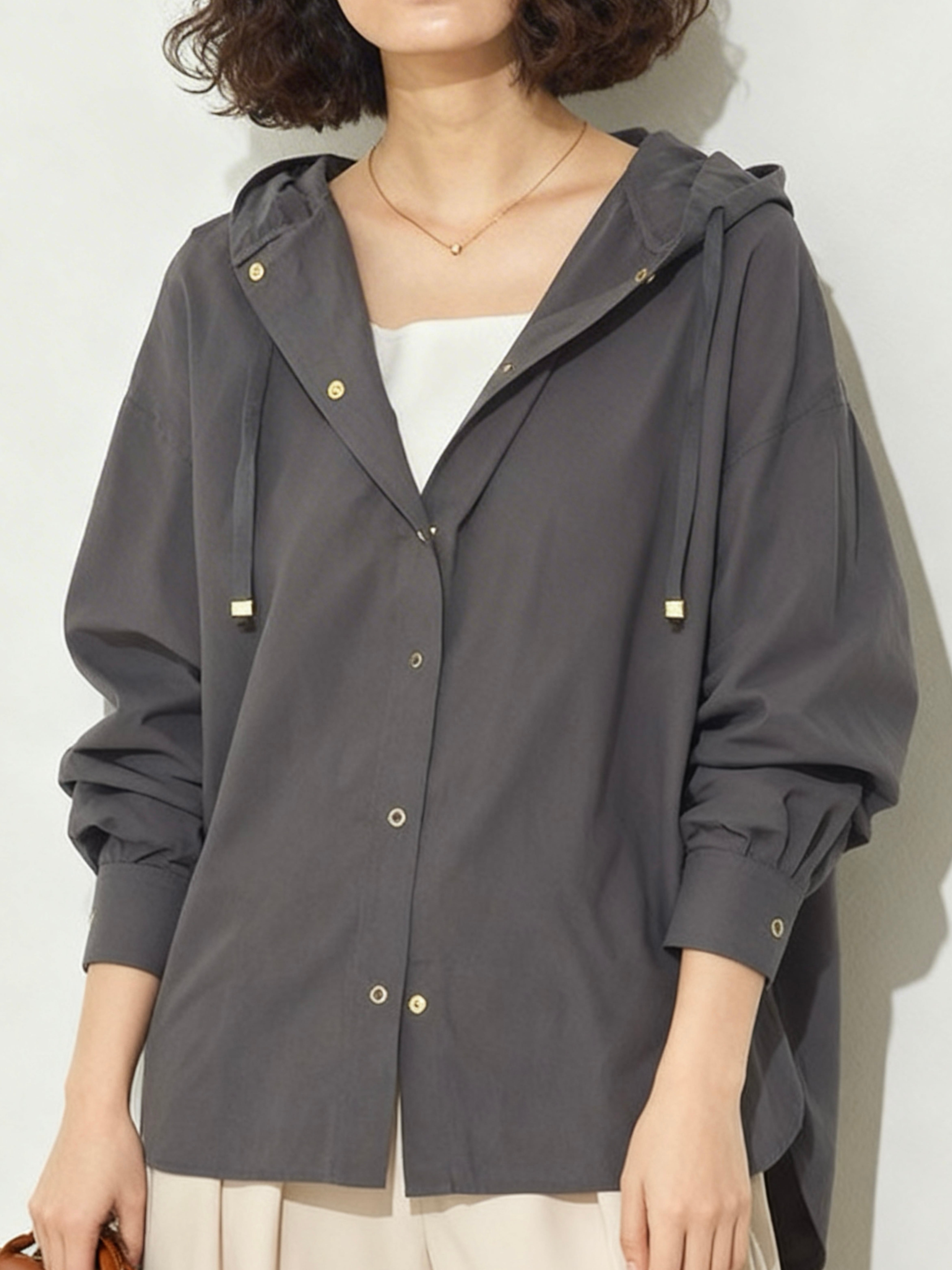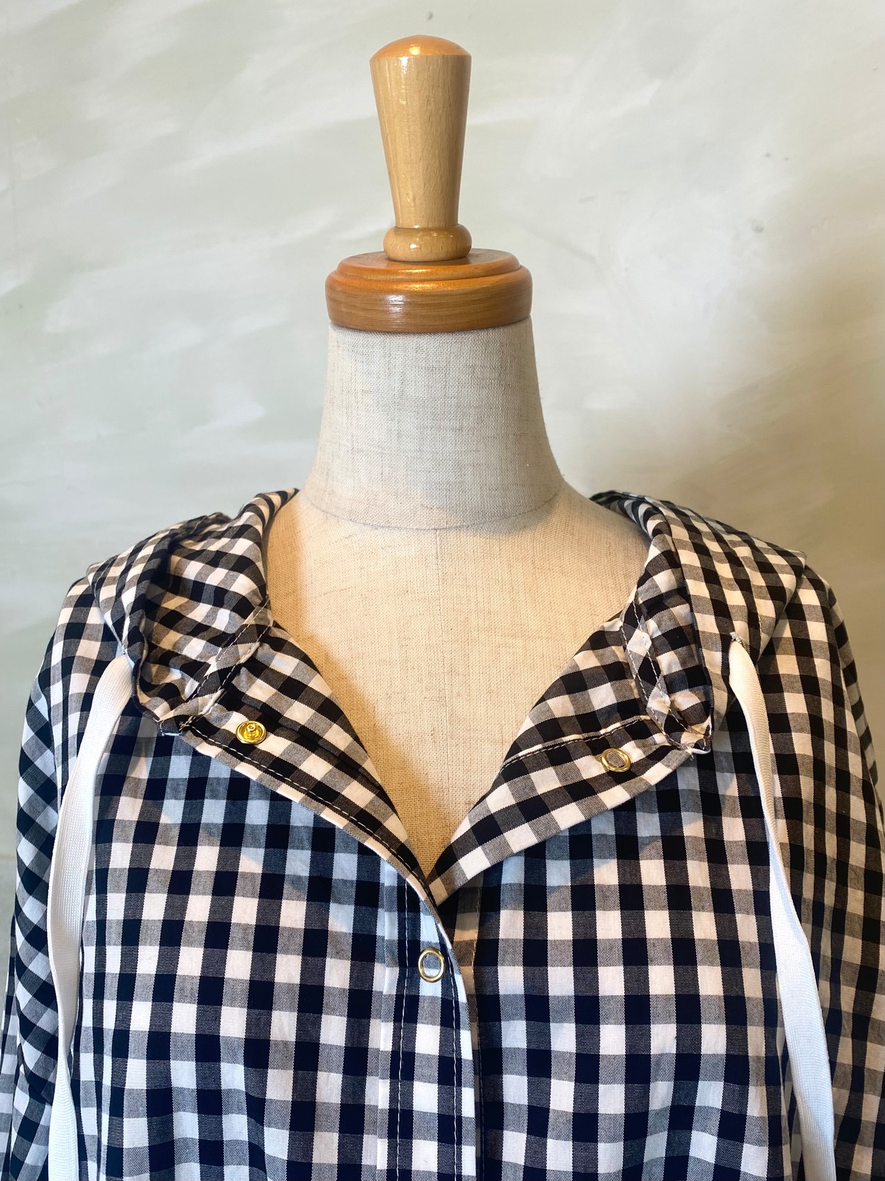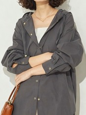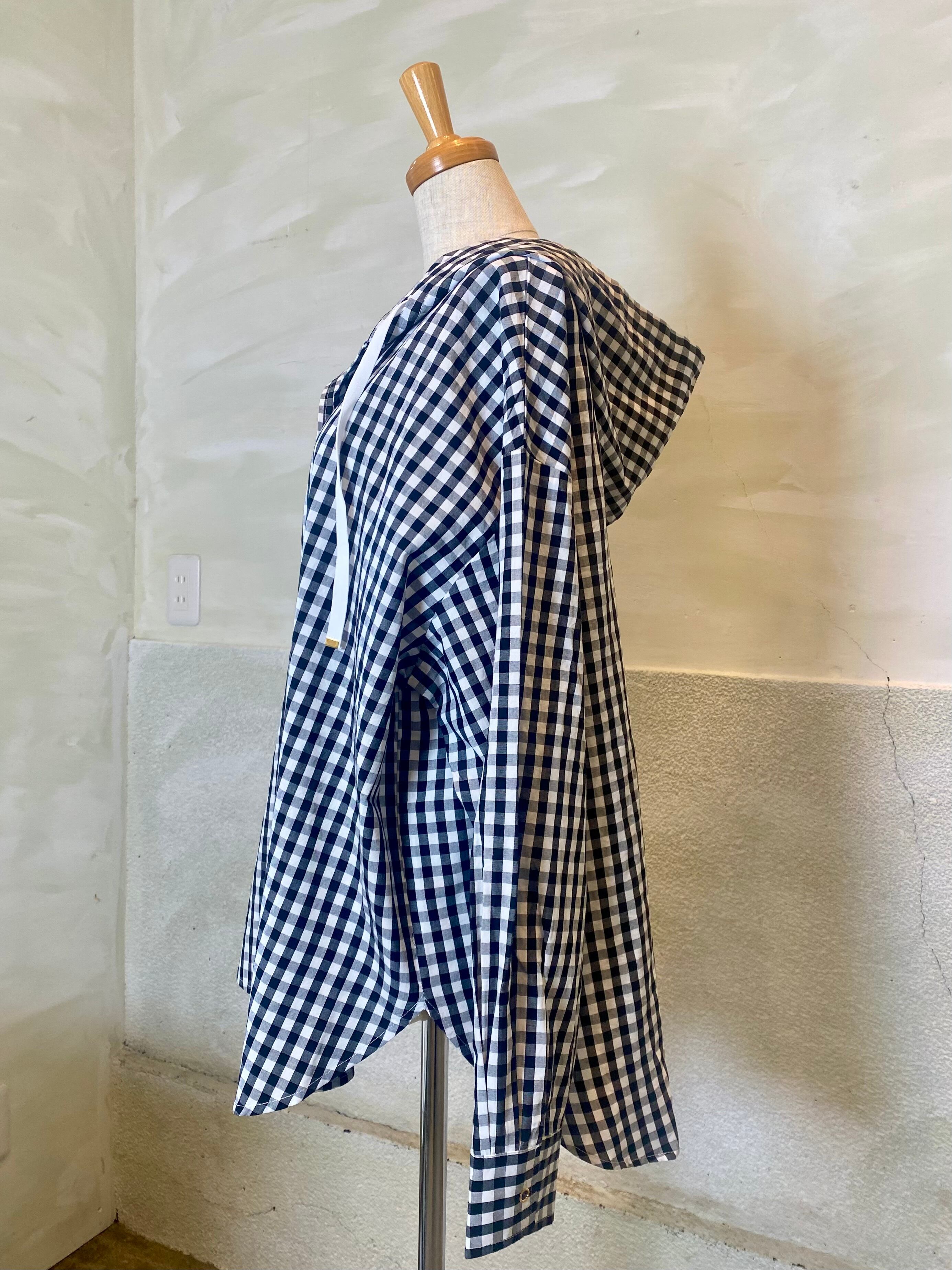 ハリ感のある綿100%ブロード生地を使用した、フード付きシャツ。