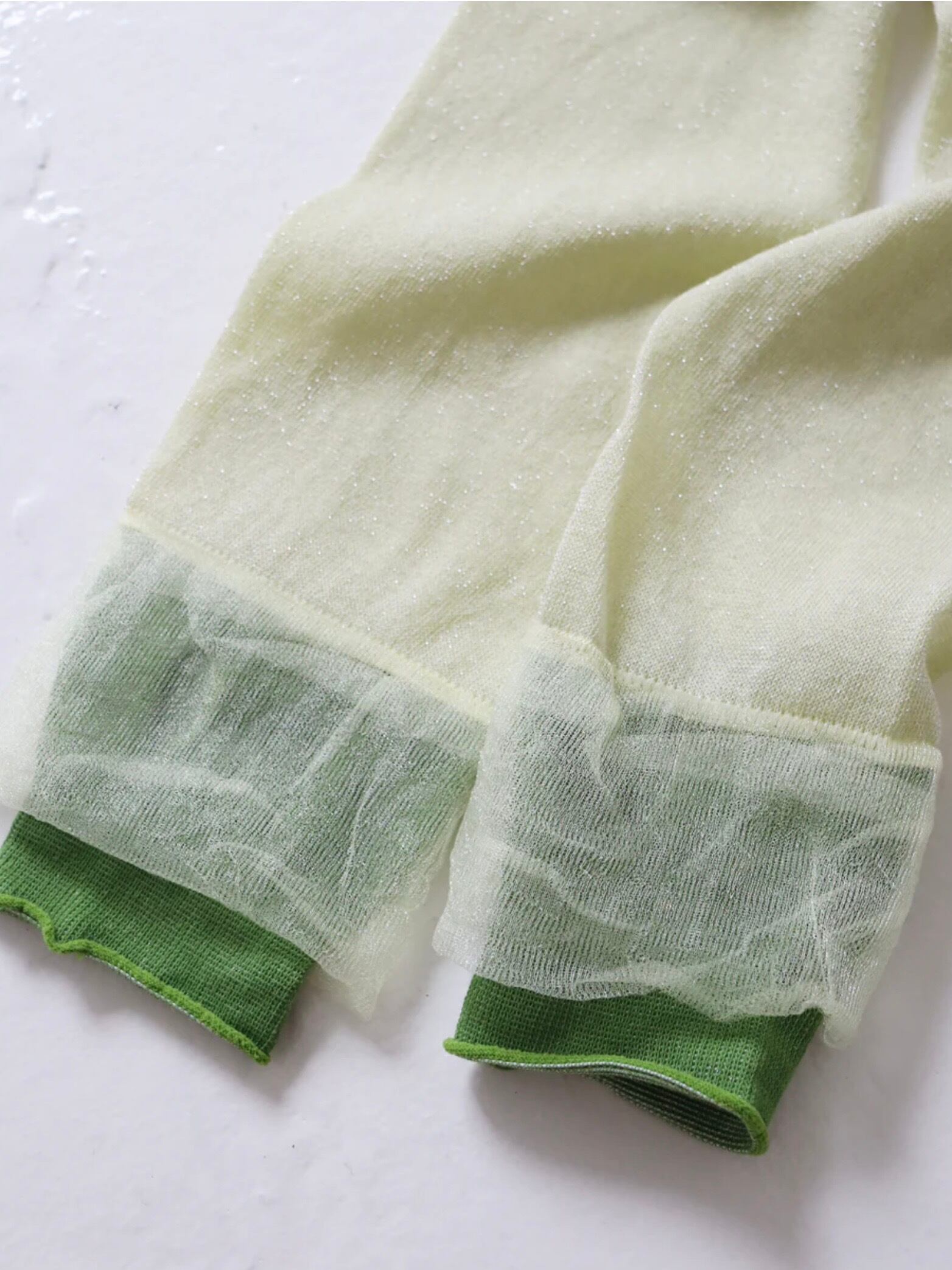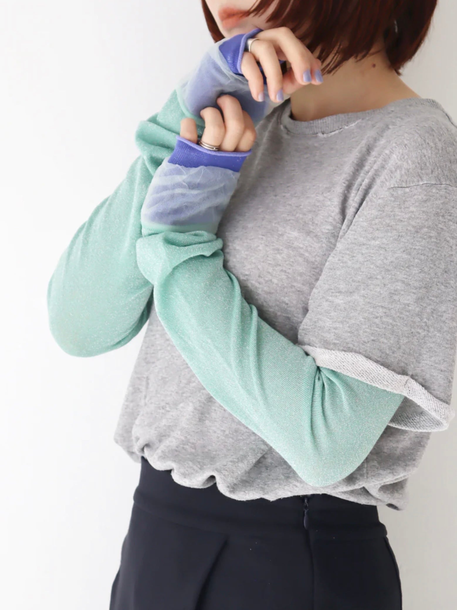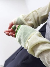 二の腕までしっかりカバーできるので、紫外線対策はもちろん、冷房対策にも頼れる一本です。コーデにさりげなく華やぎをプラスしてくれる、“守るだけじゃない、魅せる”アームカバー。