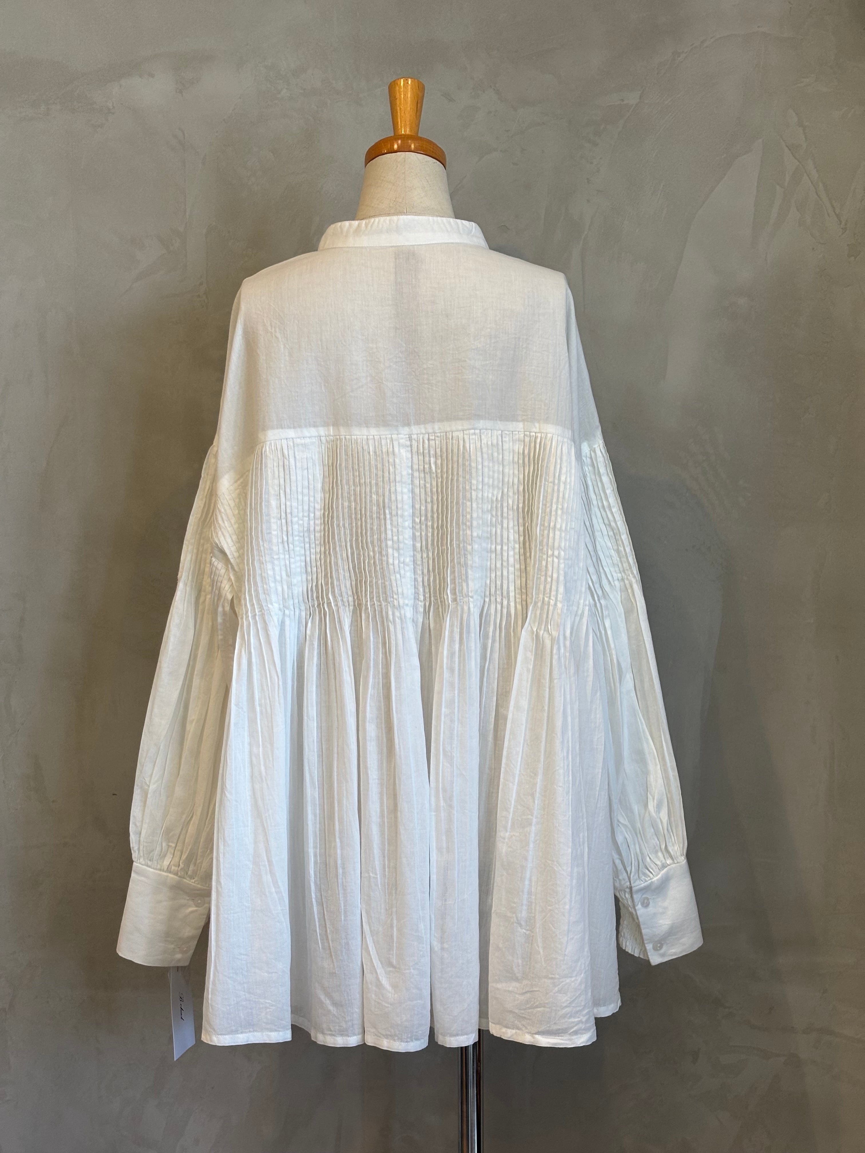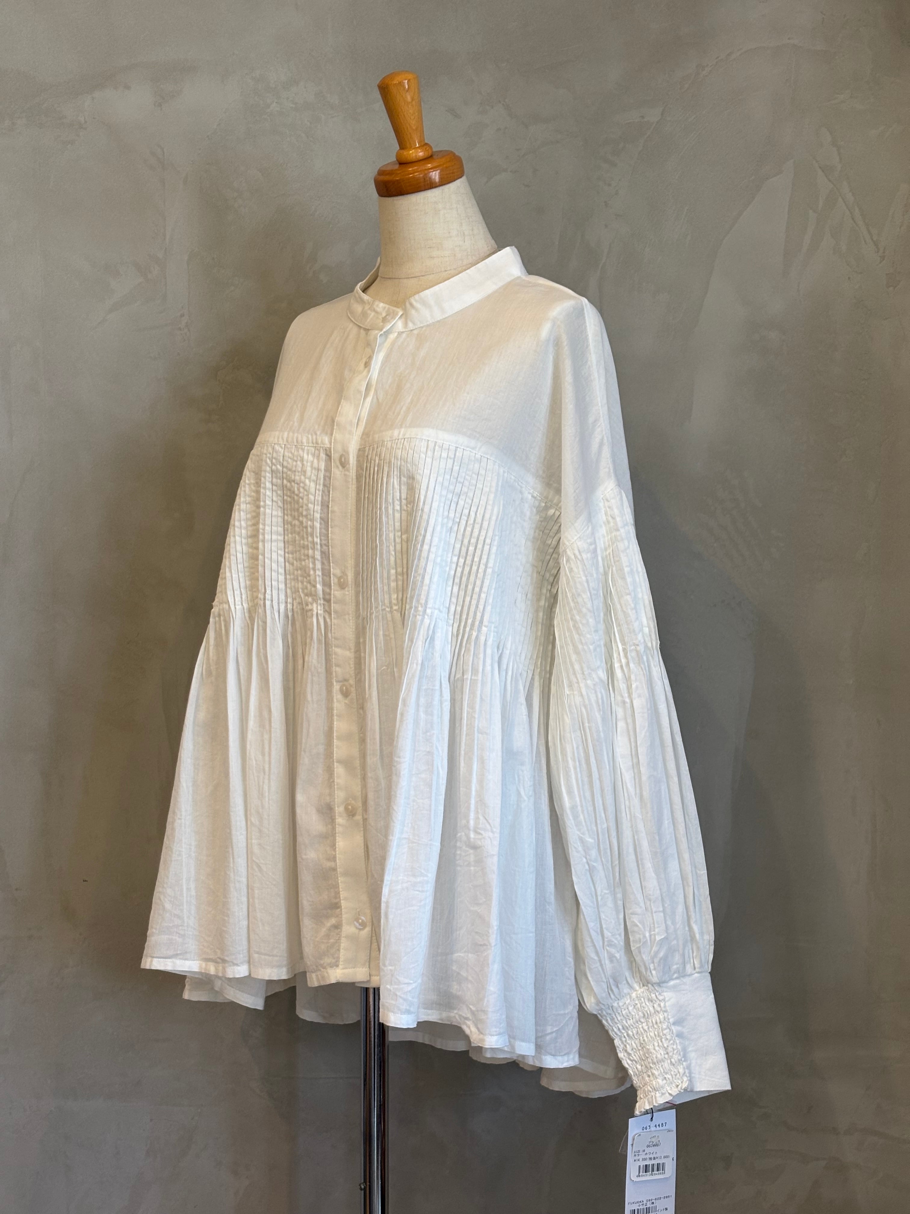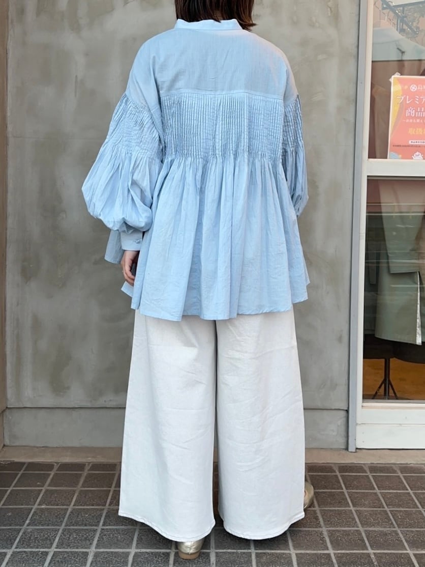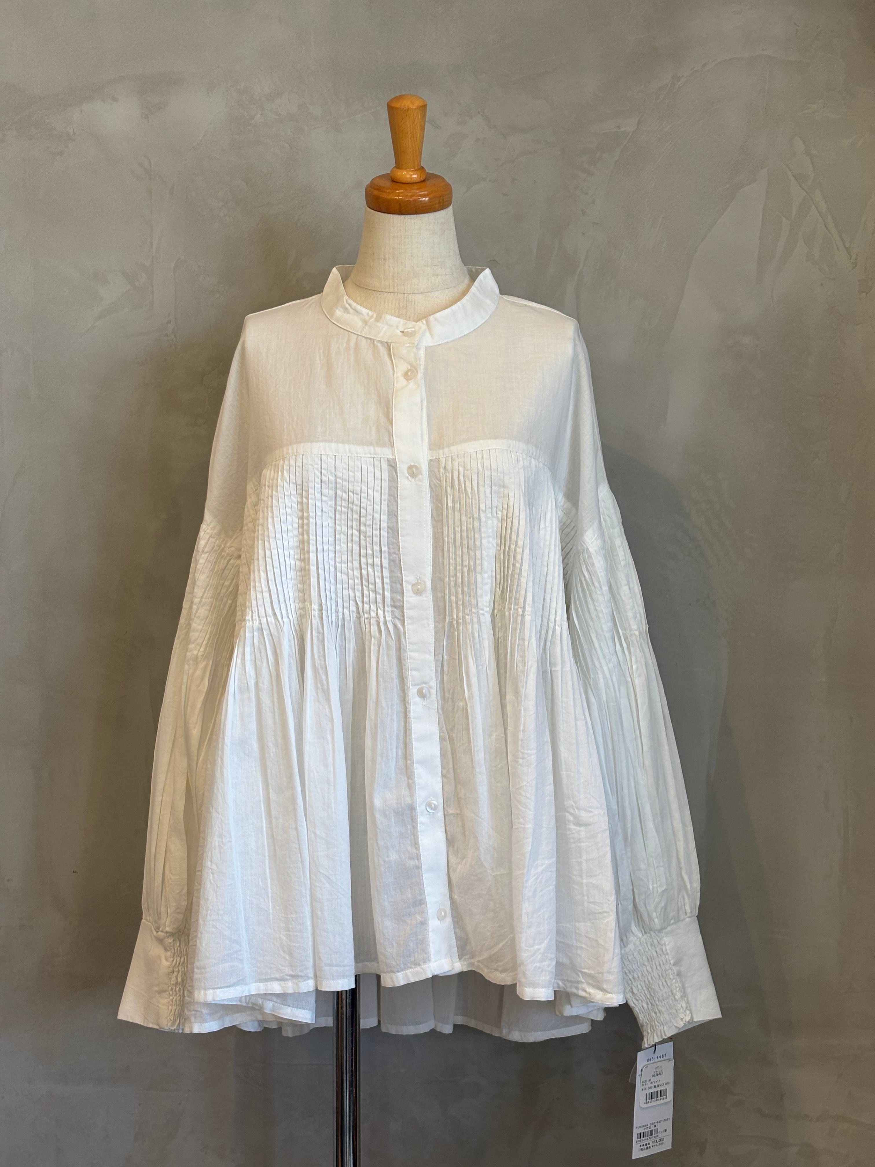 ピンタックをふんだんにナチュラルかつ品のある印象のブラウス