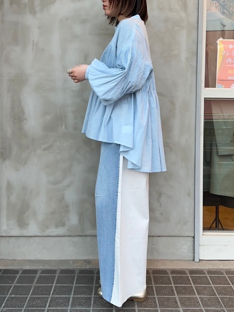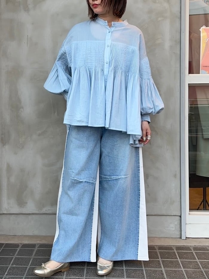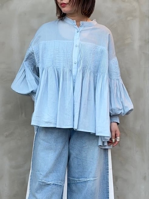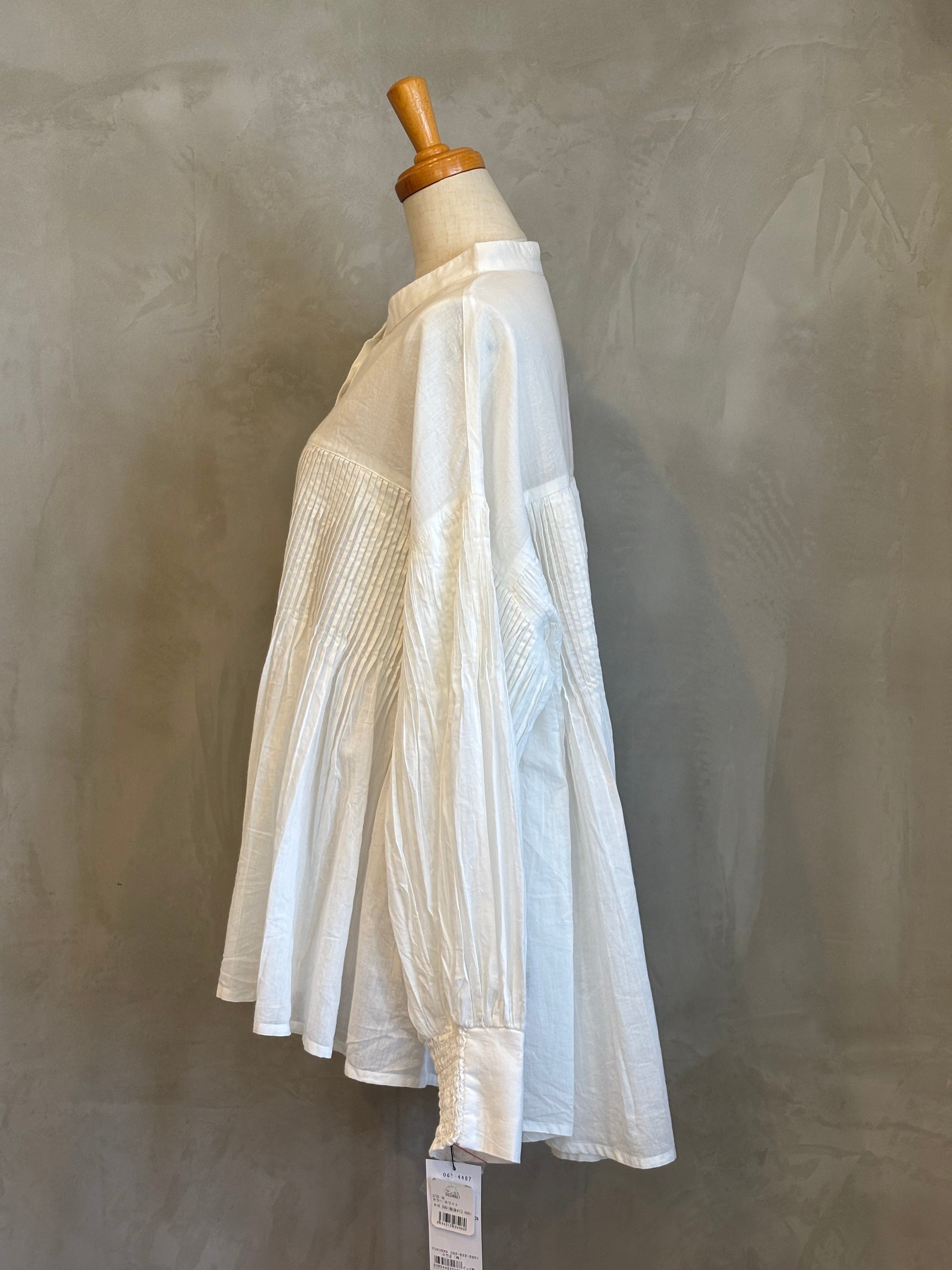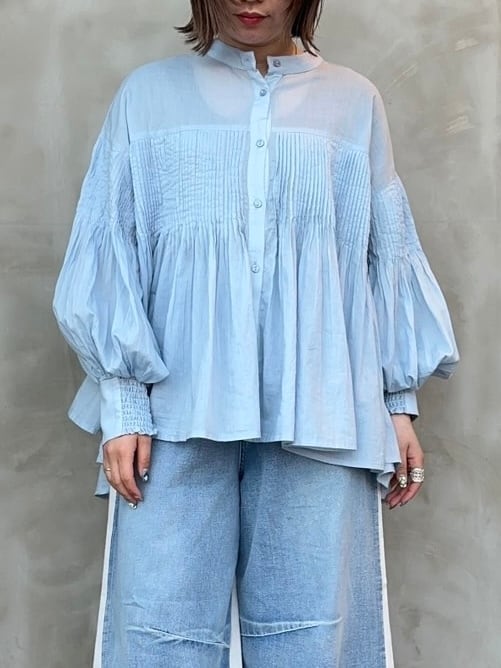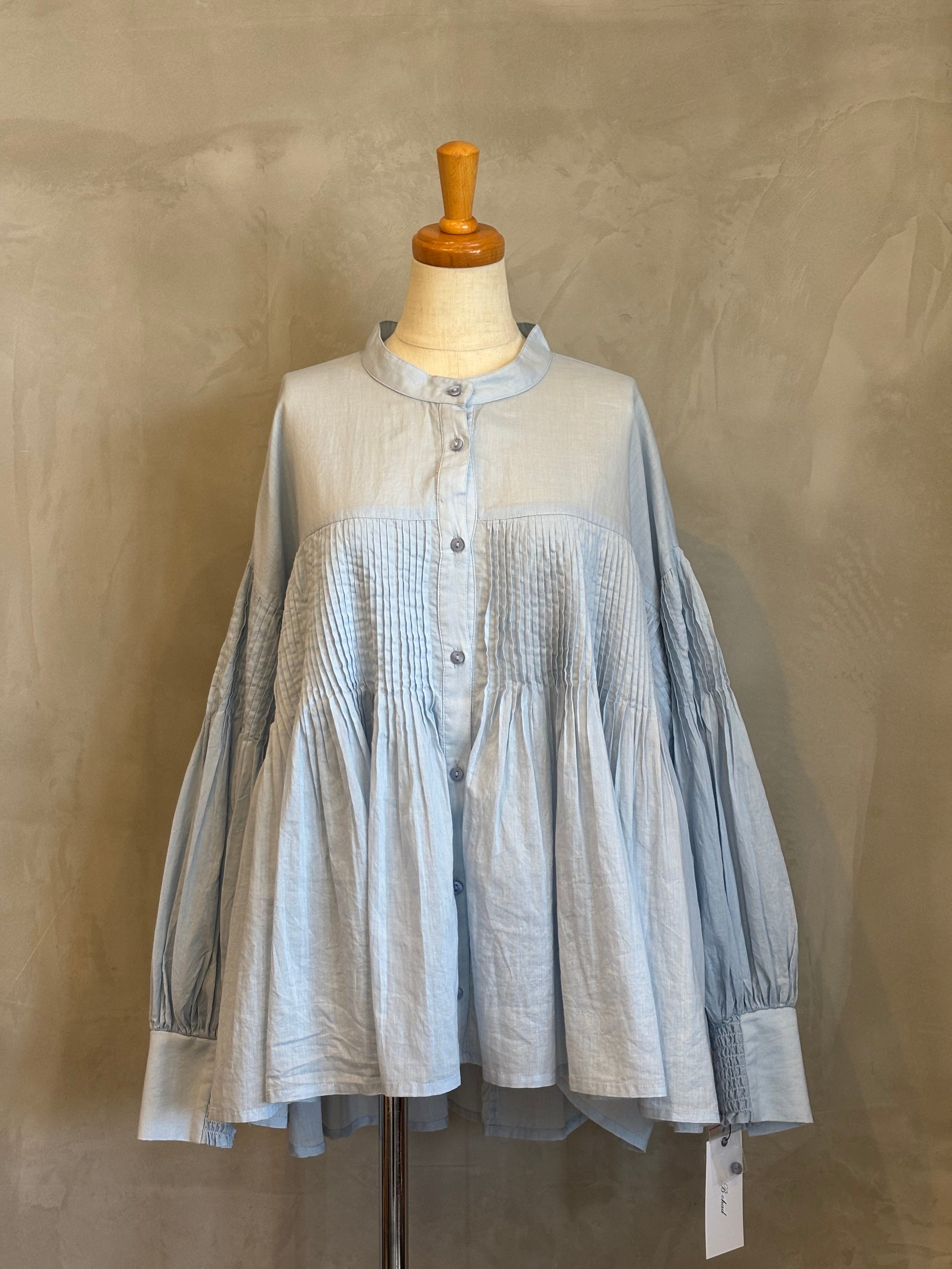 ピンタックをふんだんにナチュラルかつ品のある印象のブラウス