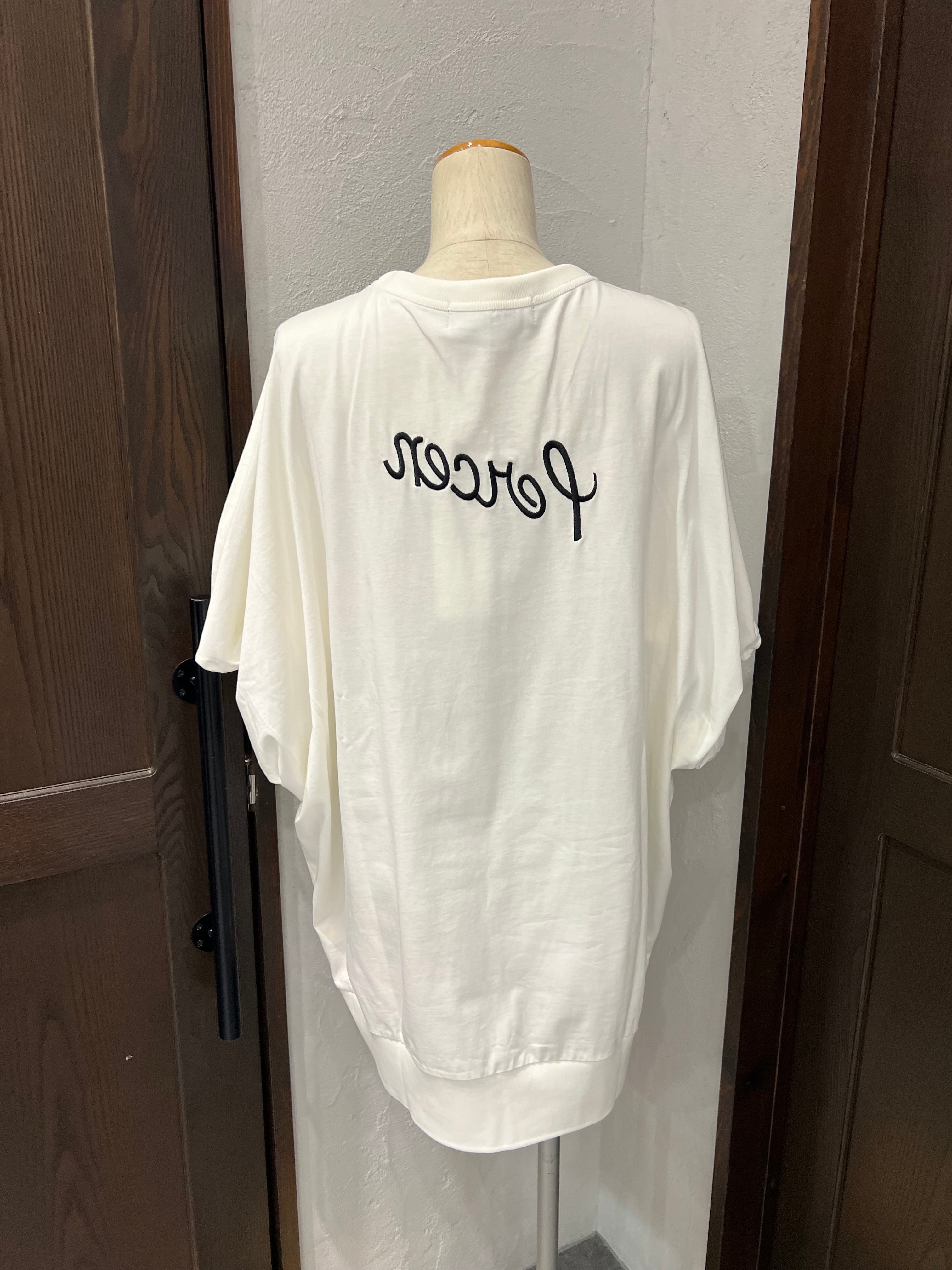 ゆったりとしたシルエットで体のラインを拾わず、ストレスフリーな着心地。胸元のロゴがシンプルながらアクセントになり、1枚でサマになるデザインです。
