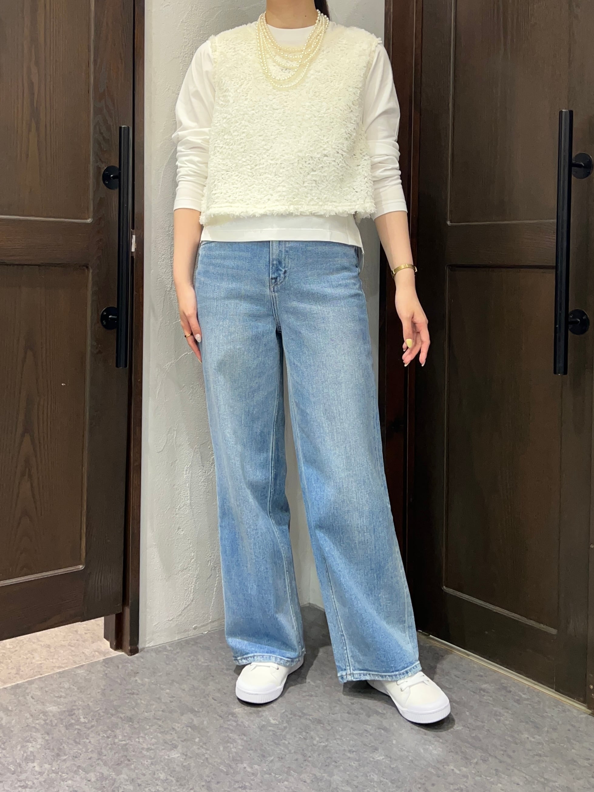 デニムでカジュアルに、スカート合わせでフェミニンにも◎