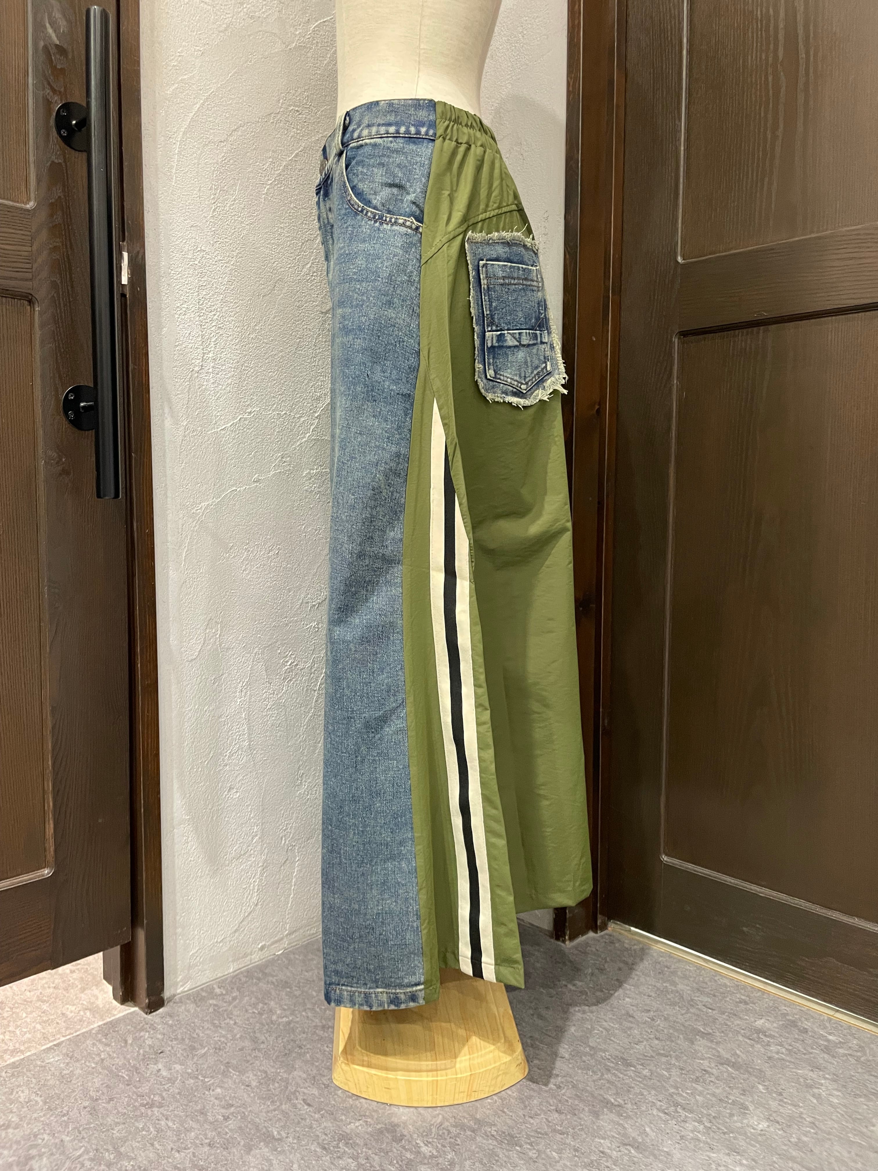 【4/6発送】botanical/サイドラインデニムドッキングスカート