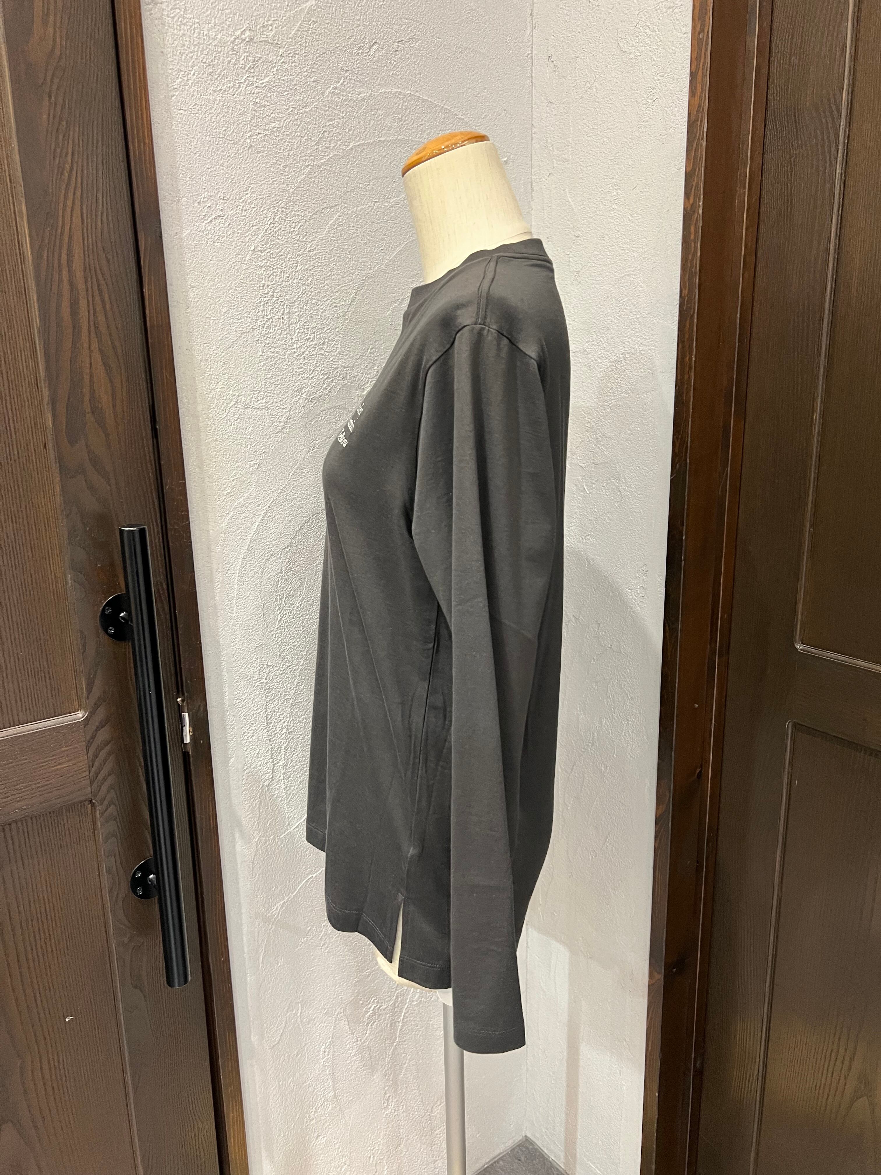 胸元のさりげないロゴがワンポイントになっていて、カジュアルすぎず大人っぽい印象に仕上がります。程よくゆとりのあるシルエットで、1枚でもインナー使いでも活躍◎
