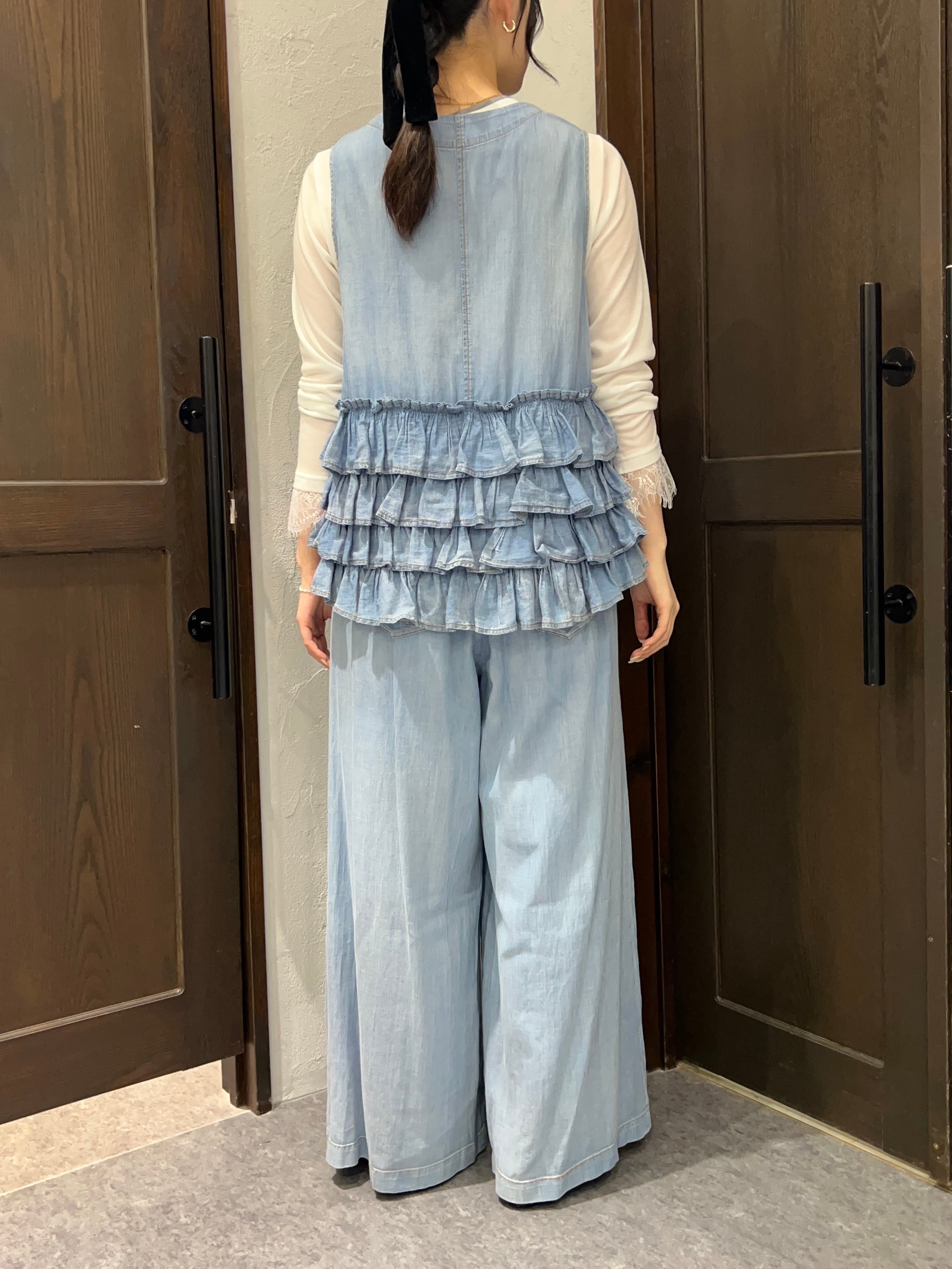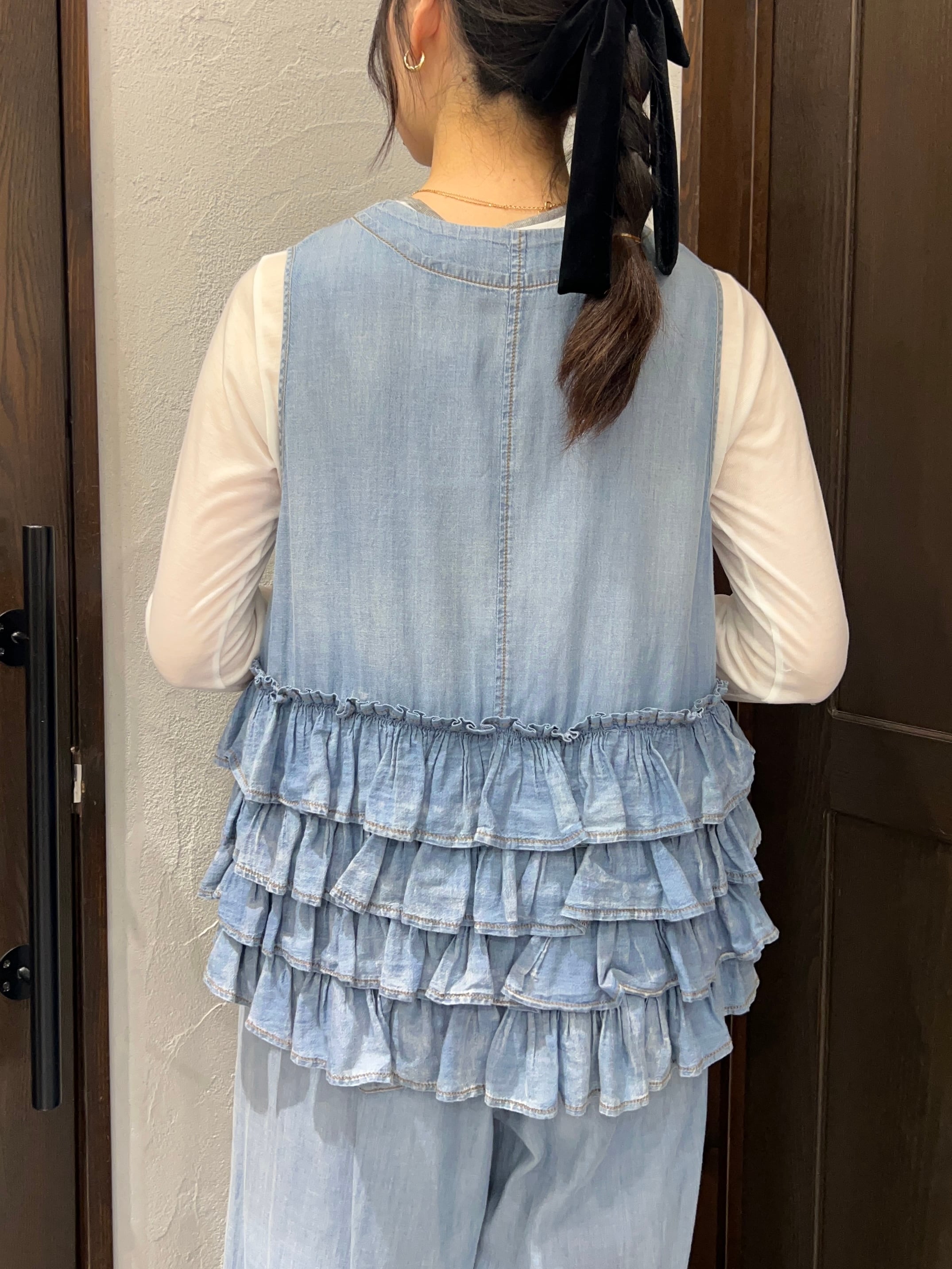 【セットアップ可能★】ayane/シアーデニムフリルベスト