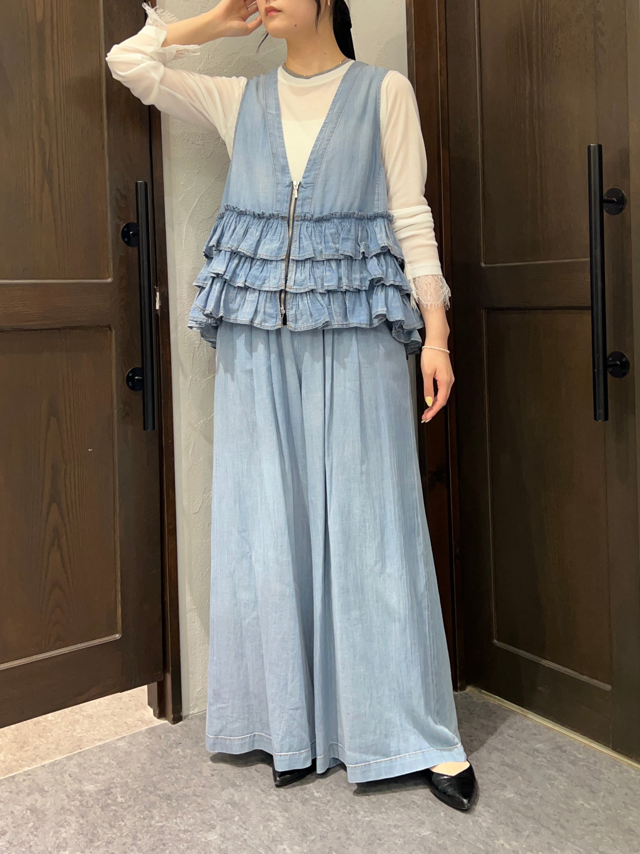 【セットアップ可能★】ayane/シアーデニムタックワイドパンツ