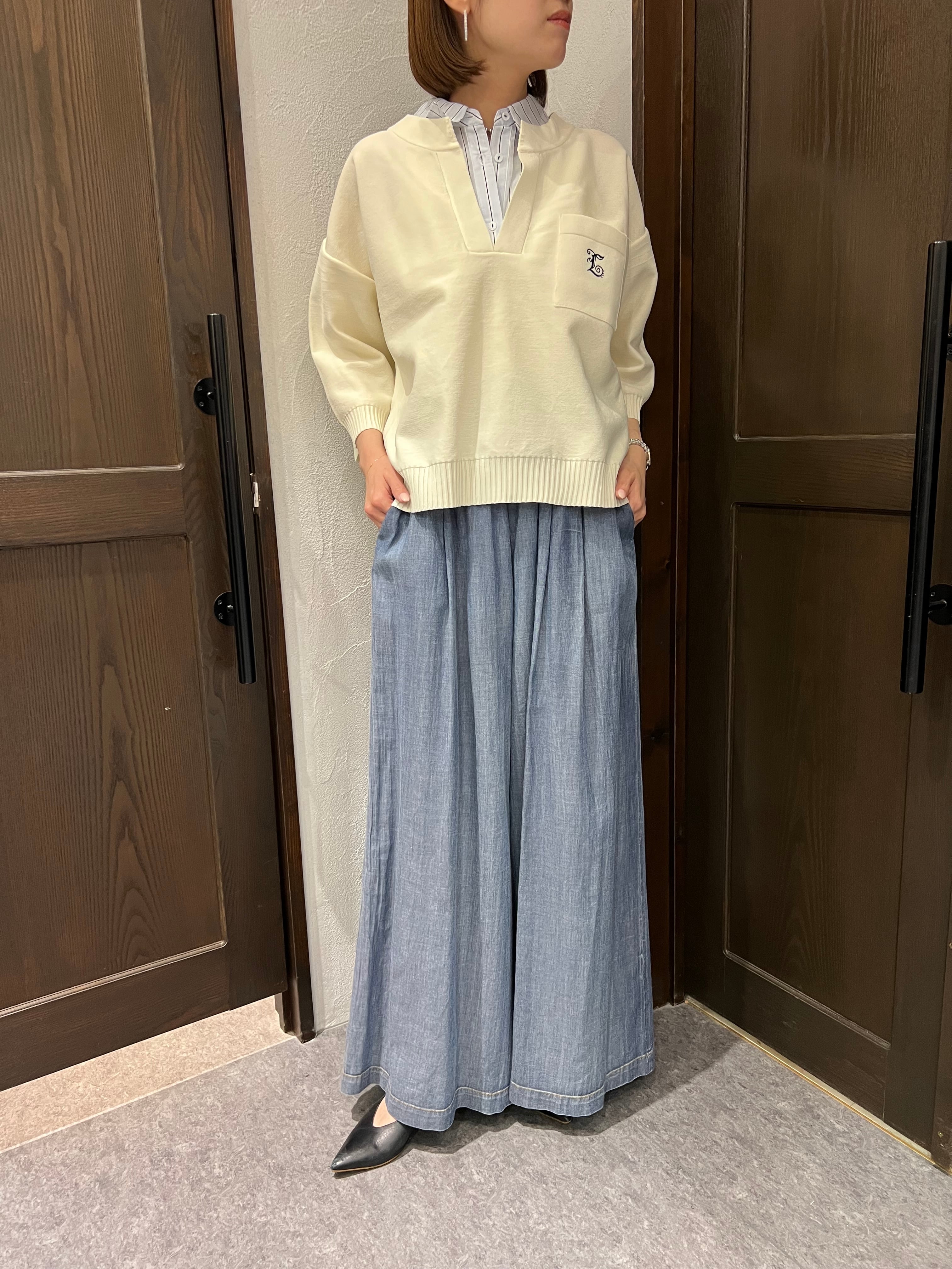 ニットはさらっとした微光沢感のある軽やかな薄手素材。