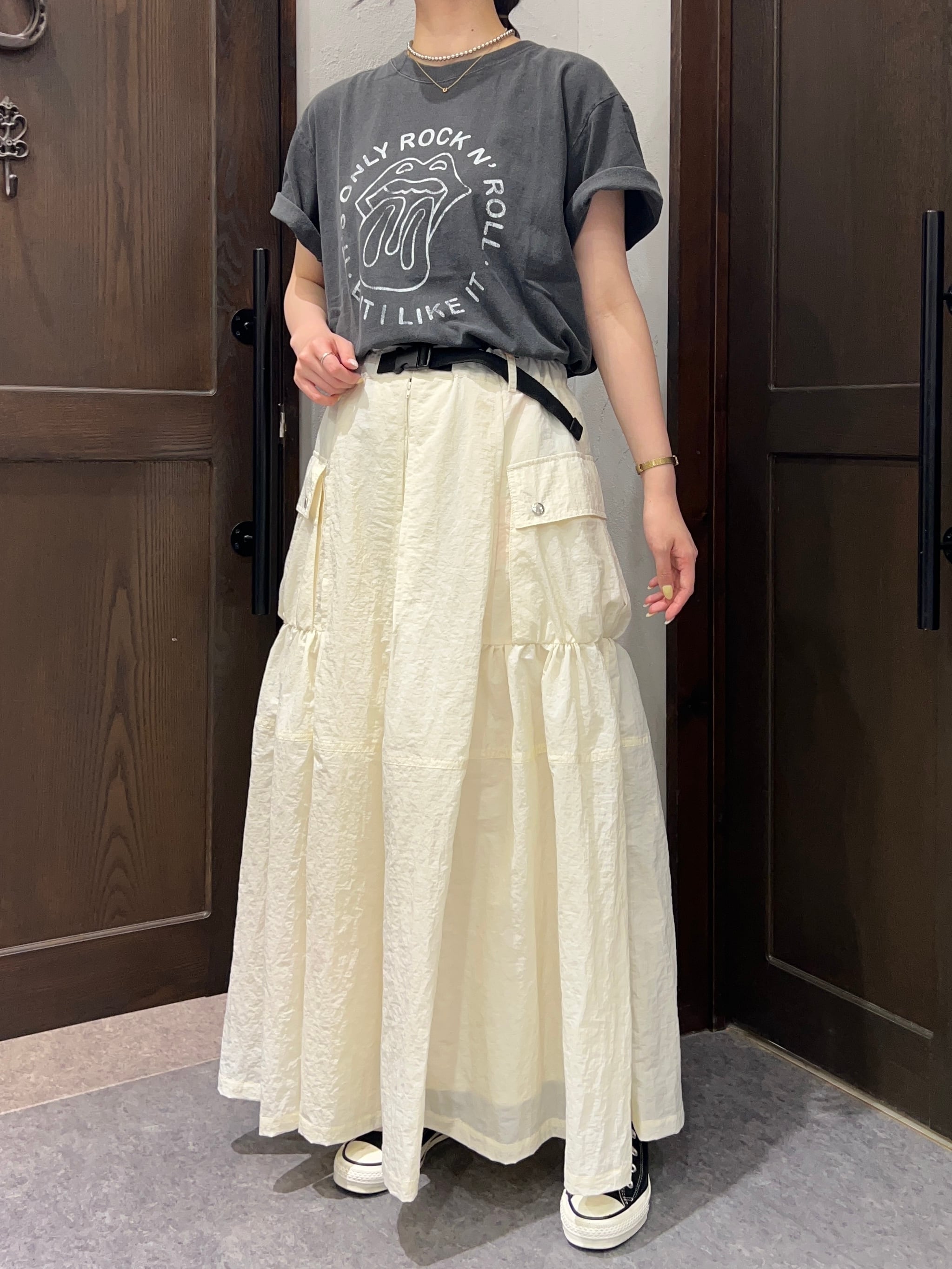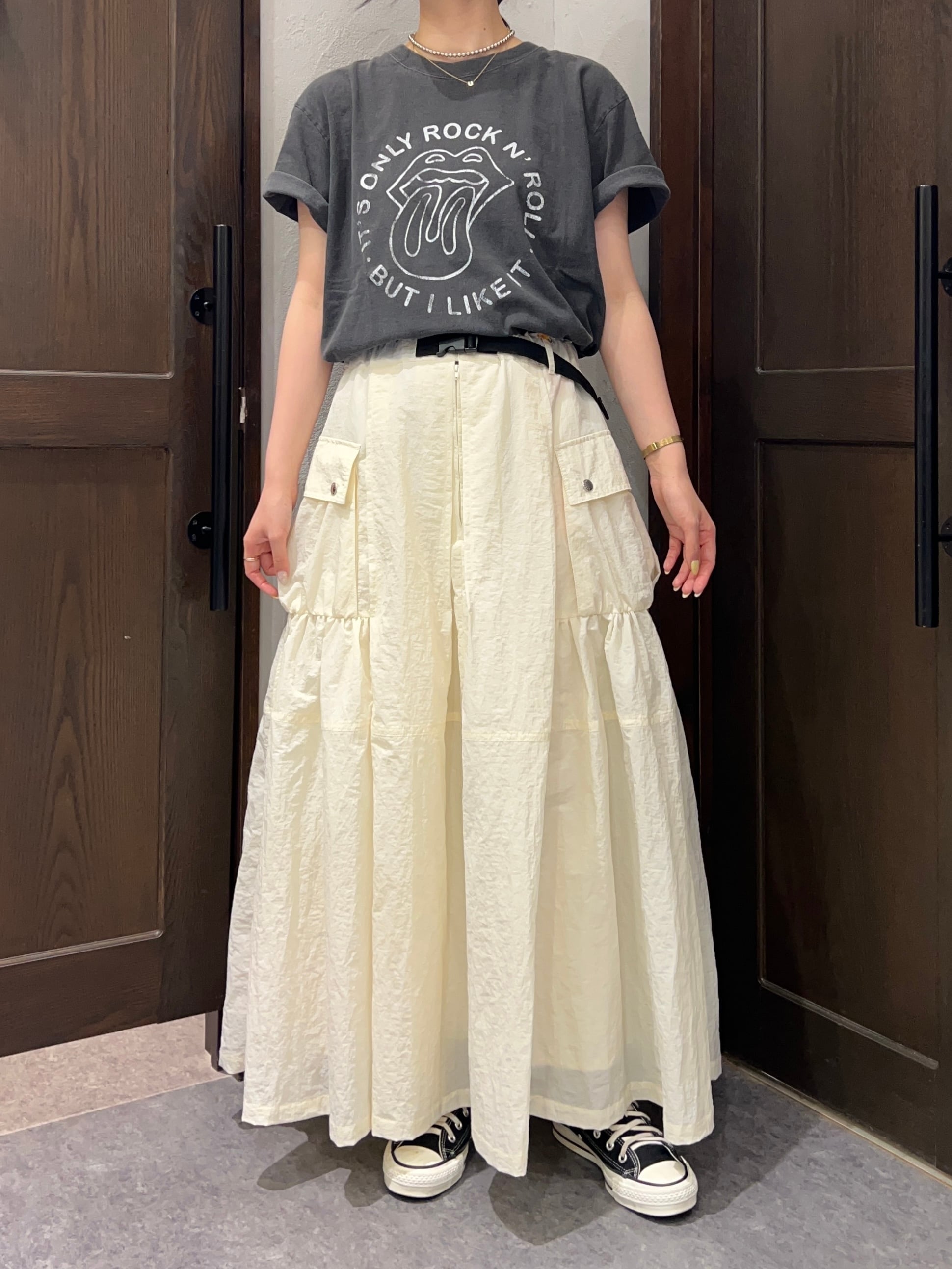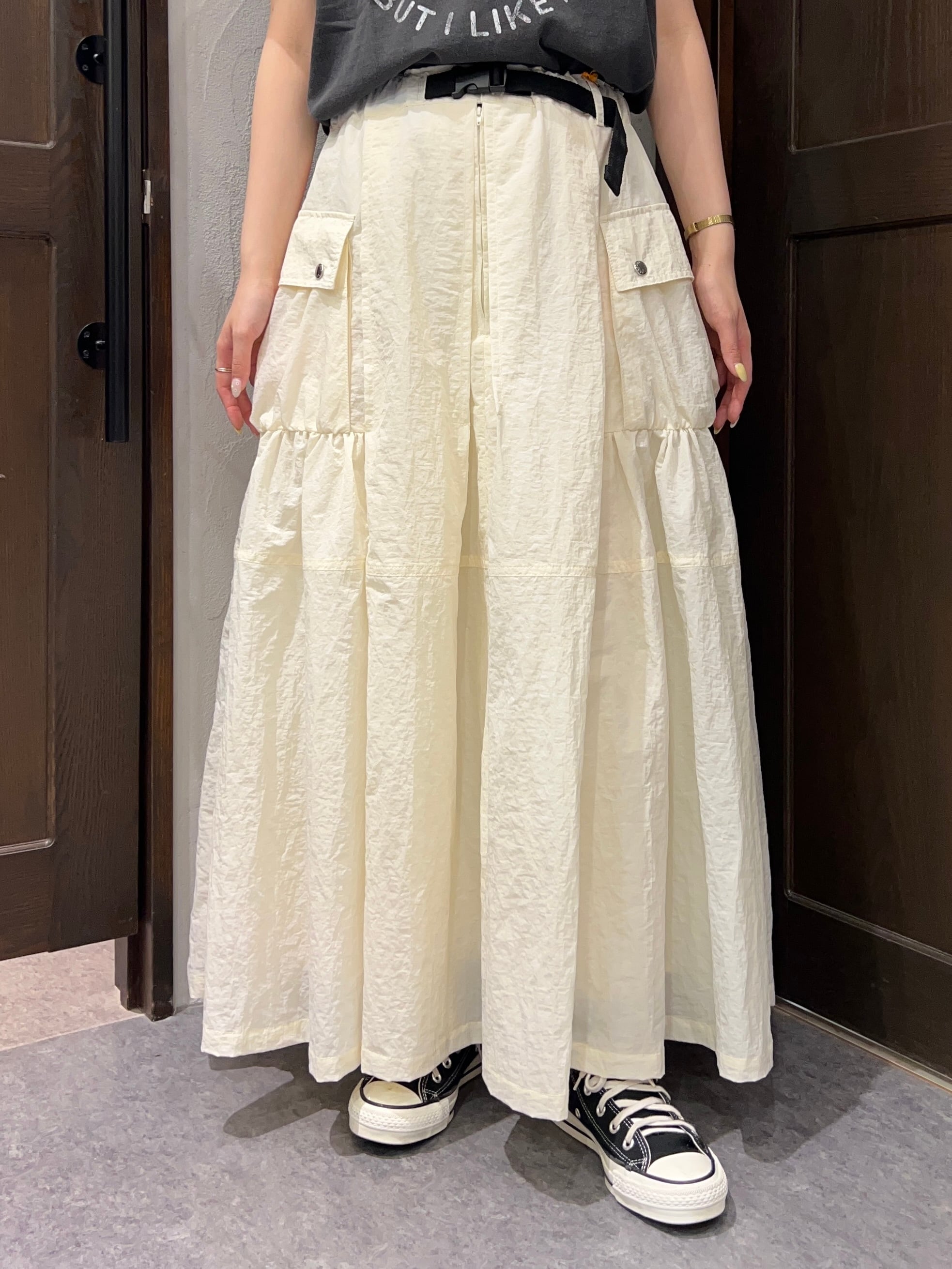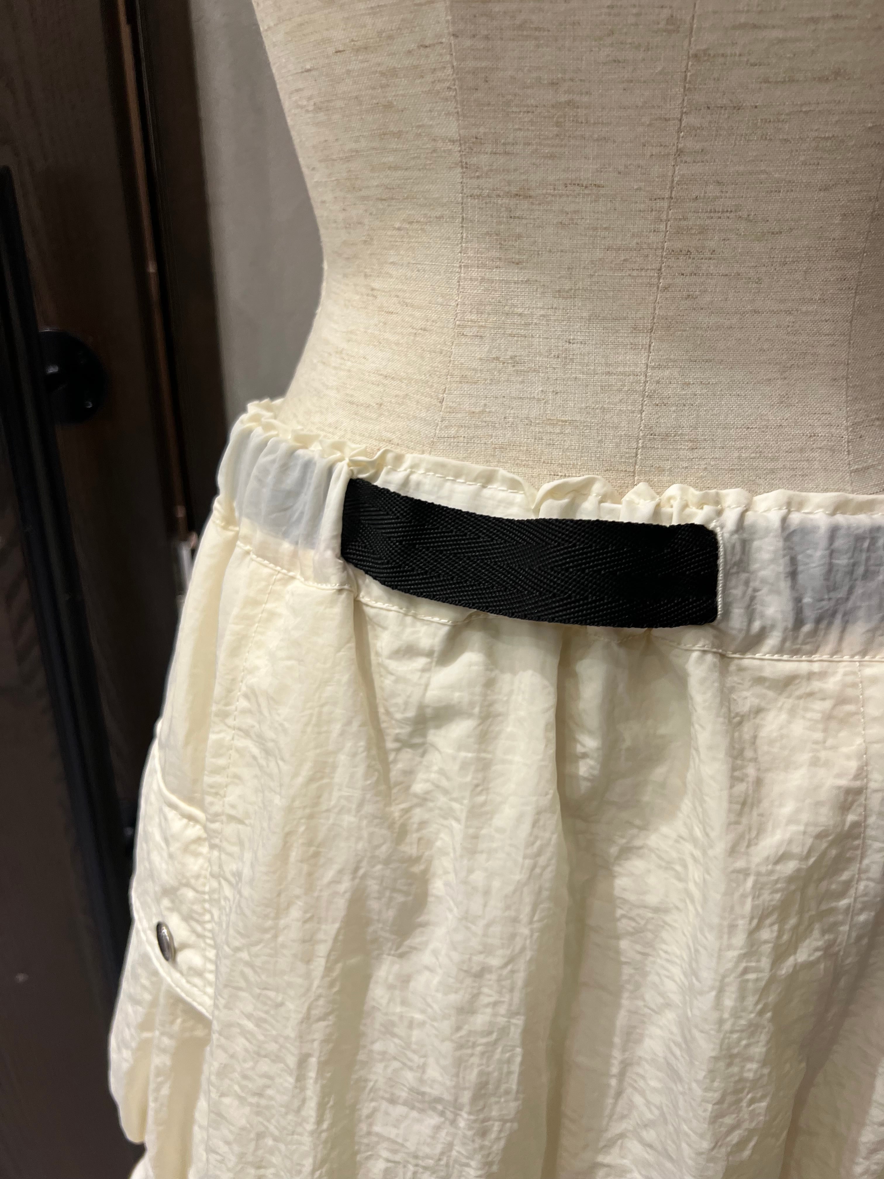 サイドには立体感のある大きめポケットを施し、下にはギャザーを寄せており、シンプルながらも程よいアクセントに。裾にかけてふんわり広がるシルエットで、動くたびにやわらかな揺れ感が楽しめます。