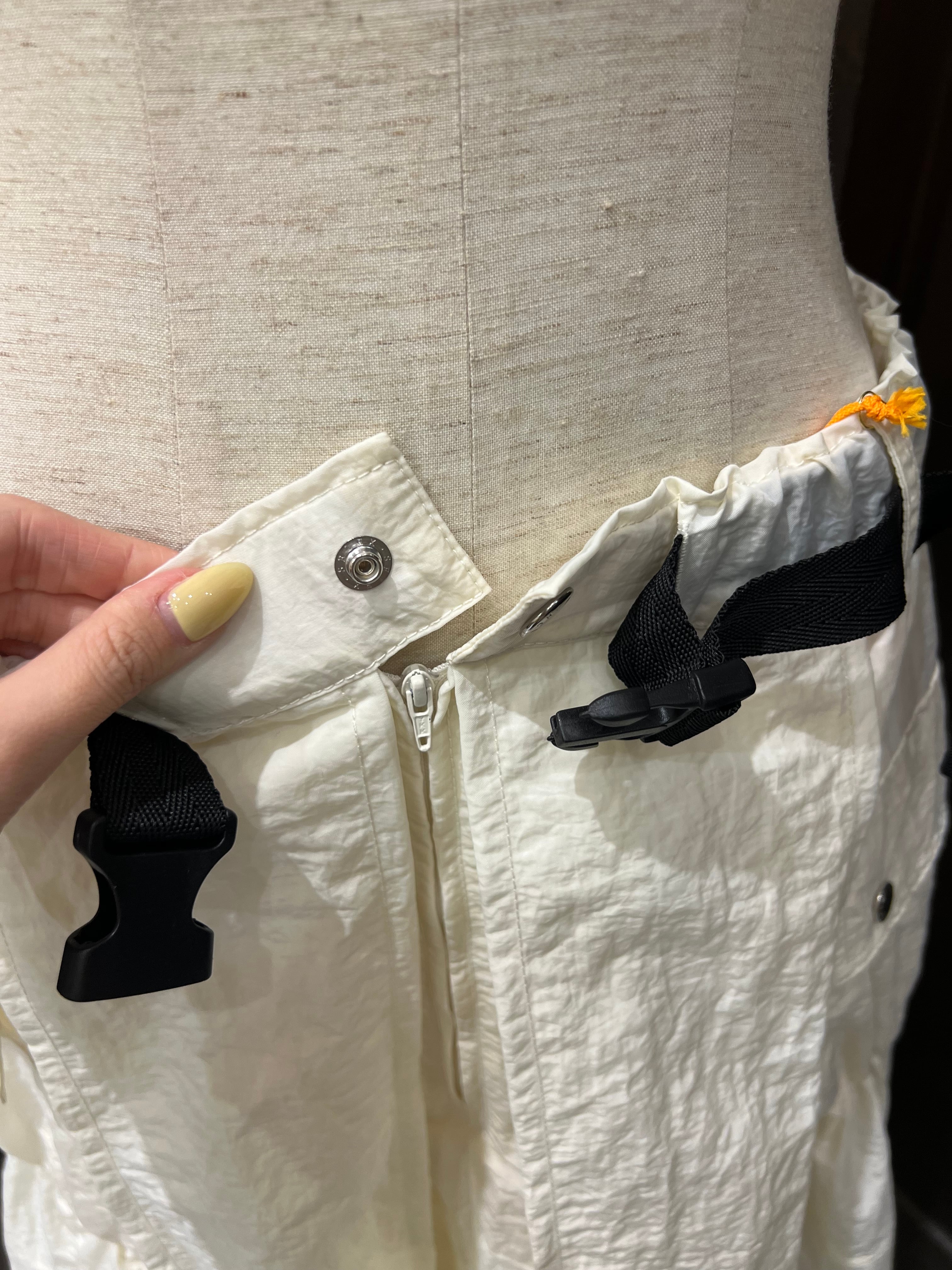 ウエストはベルト付きで、S〜Lまでサイズ調節が可能◎ 自分にぴったりのフィット感で着用できるのも嬉しいポイントです。