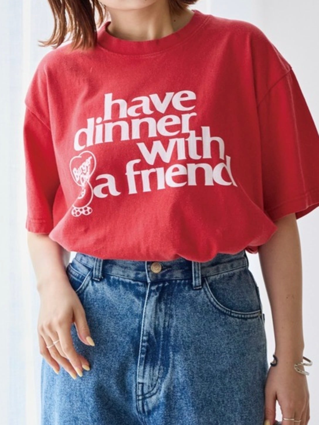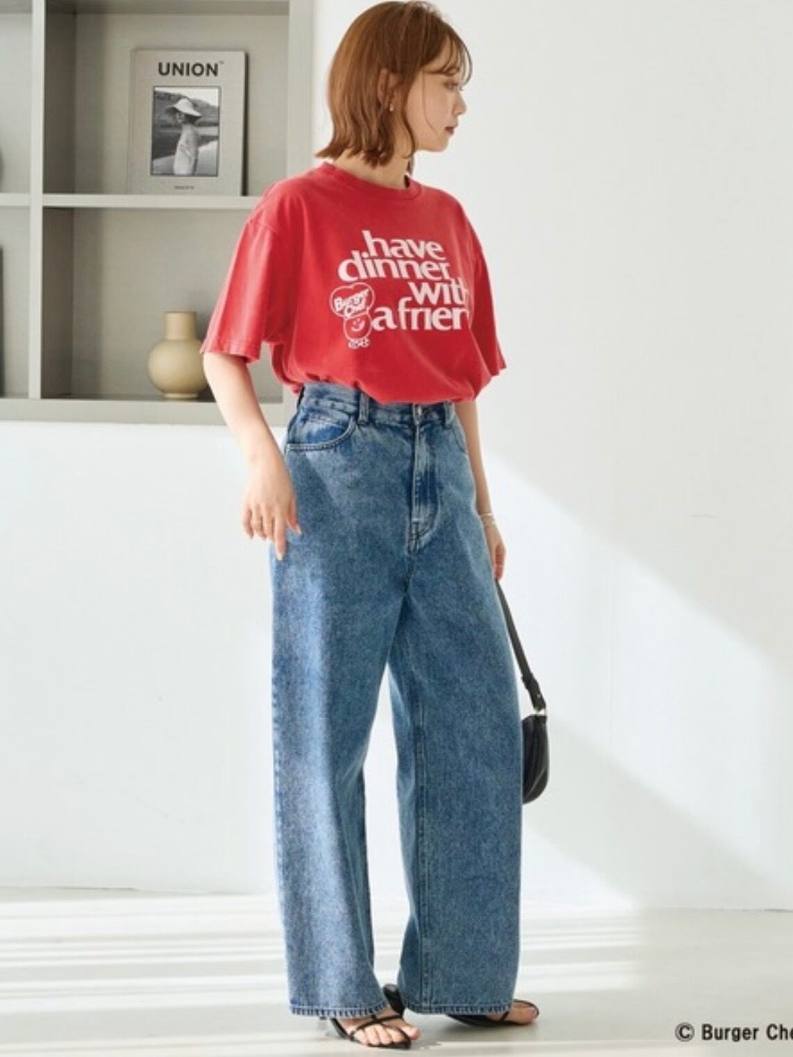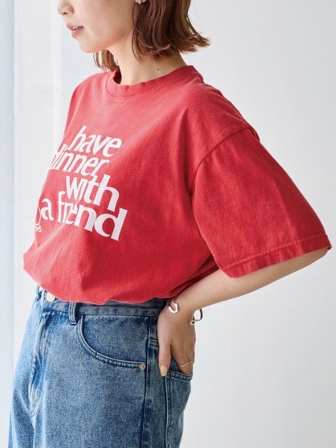 プリントはあえてラフな表情に仕上げることで、古着Tシャツのようなこなれた雰囲気を演出。スタイリングの主役になるカラーとグラフィックで、