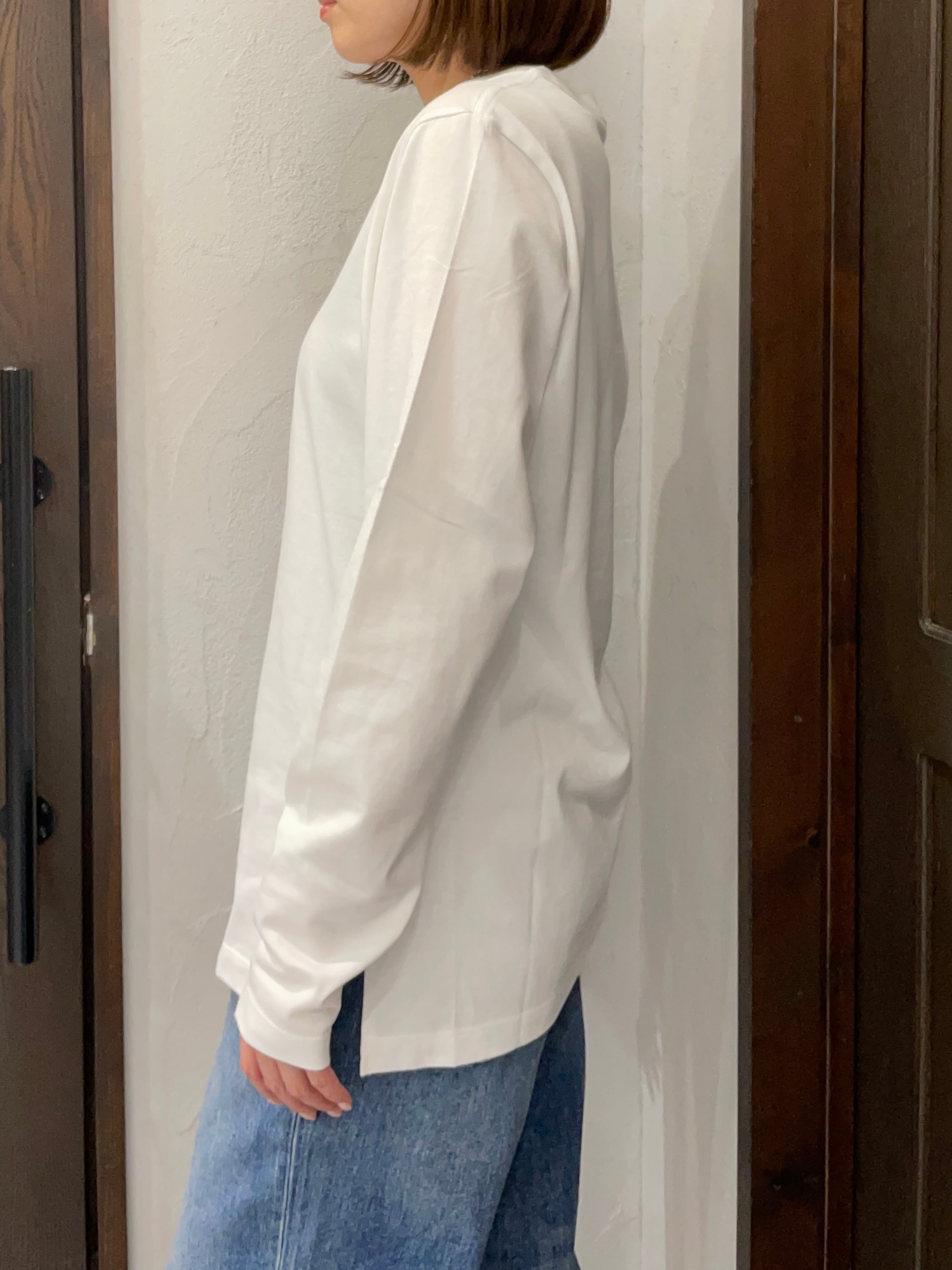シンプルなシルエットで1枚着でもインナーにも使いやすいananaの定番アイテムです。
